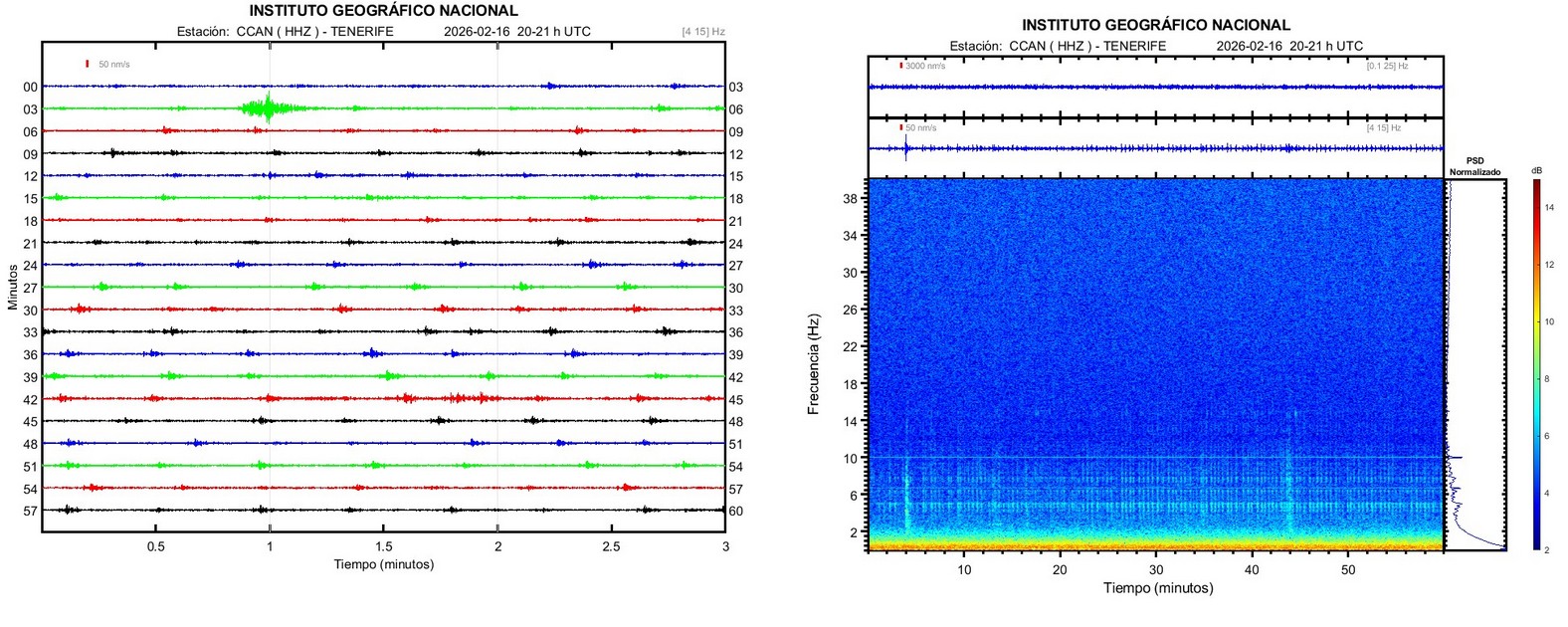 Desde las 18:00 de ayer 16 de febrero, ha continuado la actividad sismovolcánica en la isla de Tenerife que se está produciendo en los últimos días.