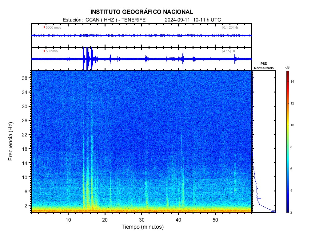A las 10:13 (UTC) del día de hoy 11 de Septiembre de 2024 ha comenzado una serie de terremotos con epicentro en el mar, entre las islas de Gran Canaria y Tenerife y profundidades superiores a 25 km. Hasta el momento se han registrado al menos 7 terremotos de magnitudes superiores a 2.0 (mbLg). La magnitud máxima registrada es de 2.6 (mbLg).
