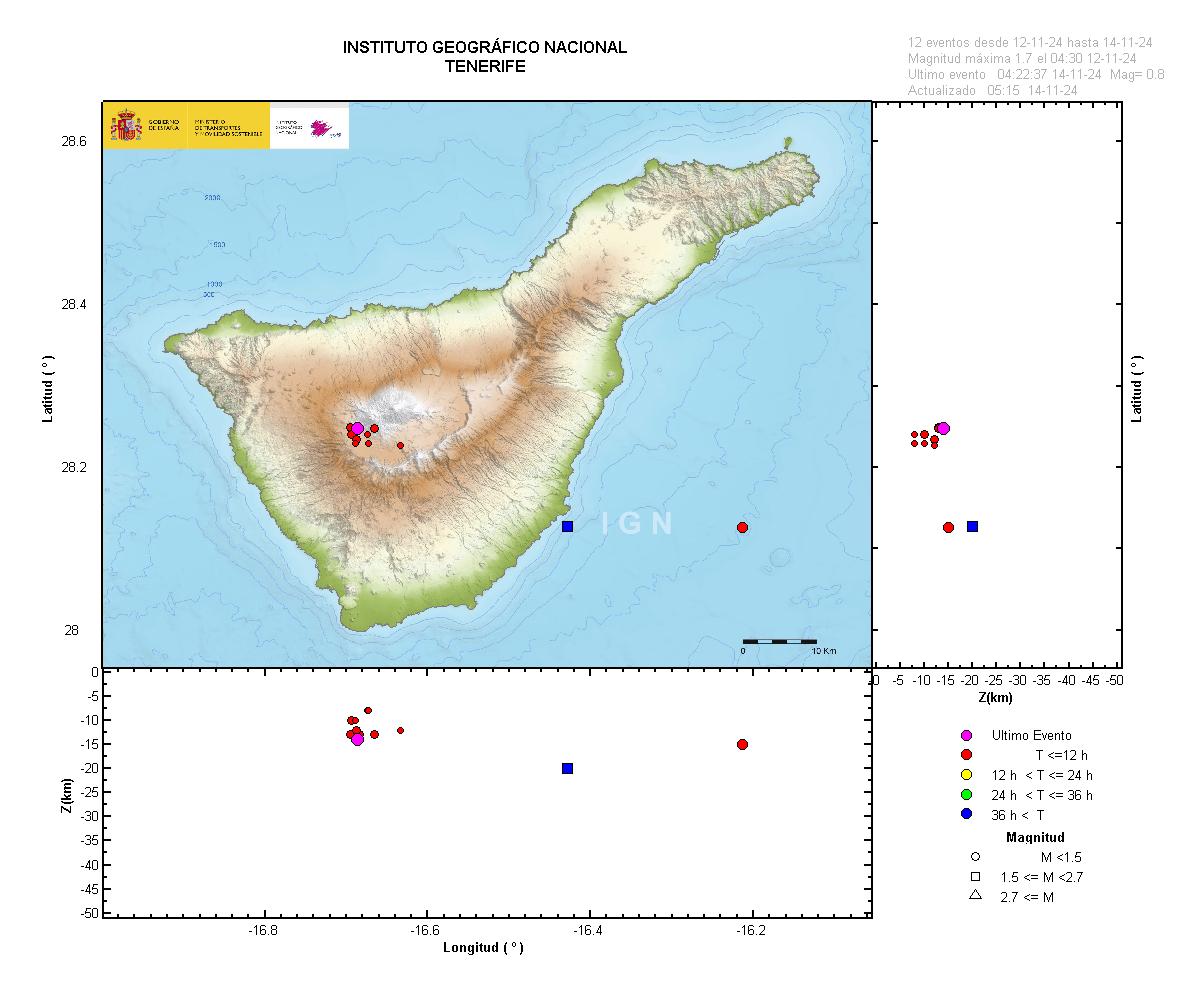 Entre las 04:00 y las 07:20 (UTC) de esta madrugada se ha producido una actividad microsísmica anómala localizada en las Cañadas del Teide, al suroeste de Pico Viejo, con al menos 500 terremotos detectados en la misma zona en la que se ha venido registrando en los últimos años (Octubre 2016, Junio 2019 y Junio y Julio de 2022).