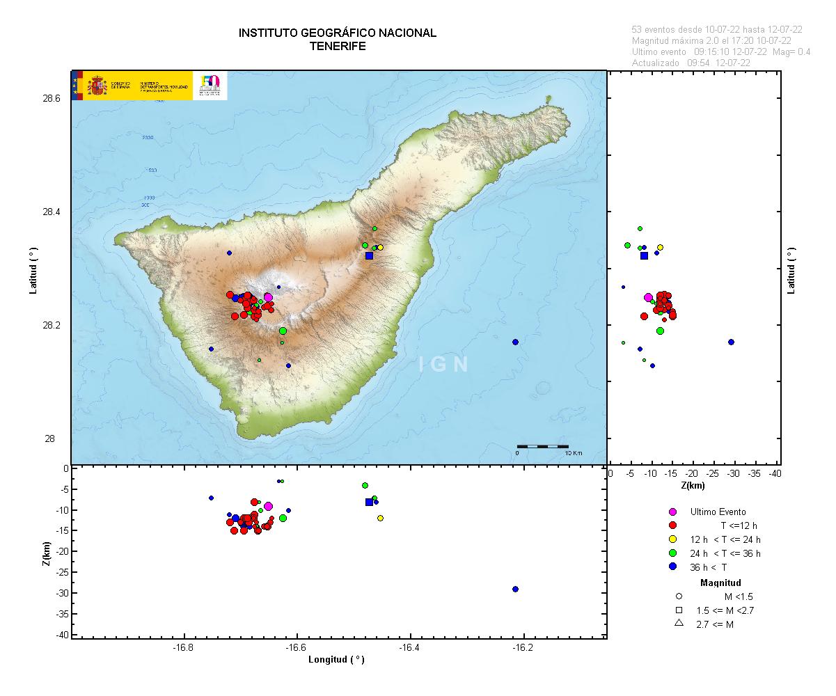 12-07-2022 10:15 UTCActividad microsísmica en Las Cañadas del Teide - TenerifeA las 01:39 (UTC) de esta madrugada se ha iniciado una actividad microsísmica localizada en las Cañadas del Teide, al suroeste de Pico Viejo, en la misma zona en la que se ha venido registrando en los últimos años. La última vez, en un episodio similar ocurrido el 17 de junio pasado. Series de este tipo han sido registradas en numerosas ocasiones en la zona, siendo el primer antecedente las señales registradas en el año 1980 en la campaña de microsisimicidad realizada en Las Cañadas y que demostraron que este tipo de actividad podría ser recurrente. La alta detectabilidad de la Red Sísmica de Canarias del IGN permite en estos momentos detectar y localizar esta actividad, relacionada sin duda, con procesos en el interior del complejo Teide-Pico Viejo. La actividad analizada indica un reajuste de presiones en la parte inferior de la corteza, debido a la naturaleza volcánica del edificio insular y a los procesos magmáticos en profundidad. Este tipo de actividad es esperable en islas volcánicas activas, y puede quedar a esa profundidad o puede dar lugar a una actividad sísmica más somera en el futuro, sin que esto apunte a un proceso eruptivo en un futuro cercano.