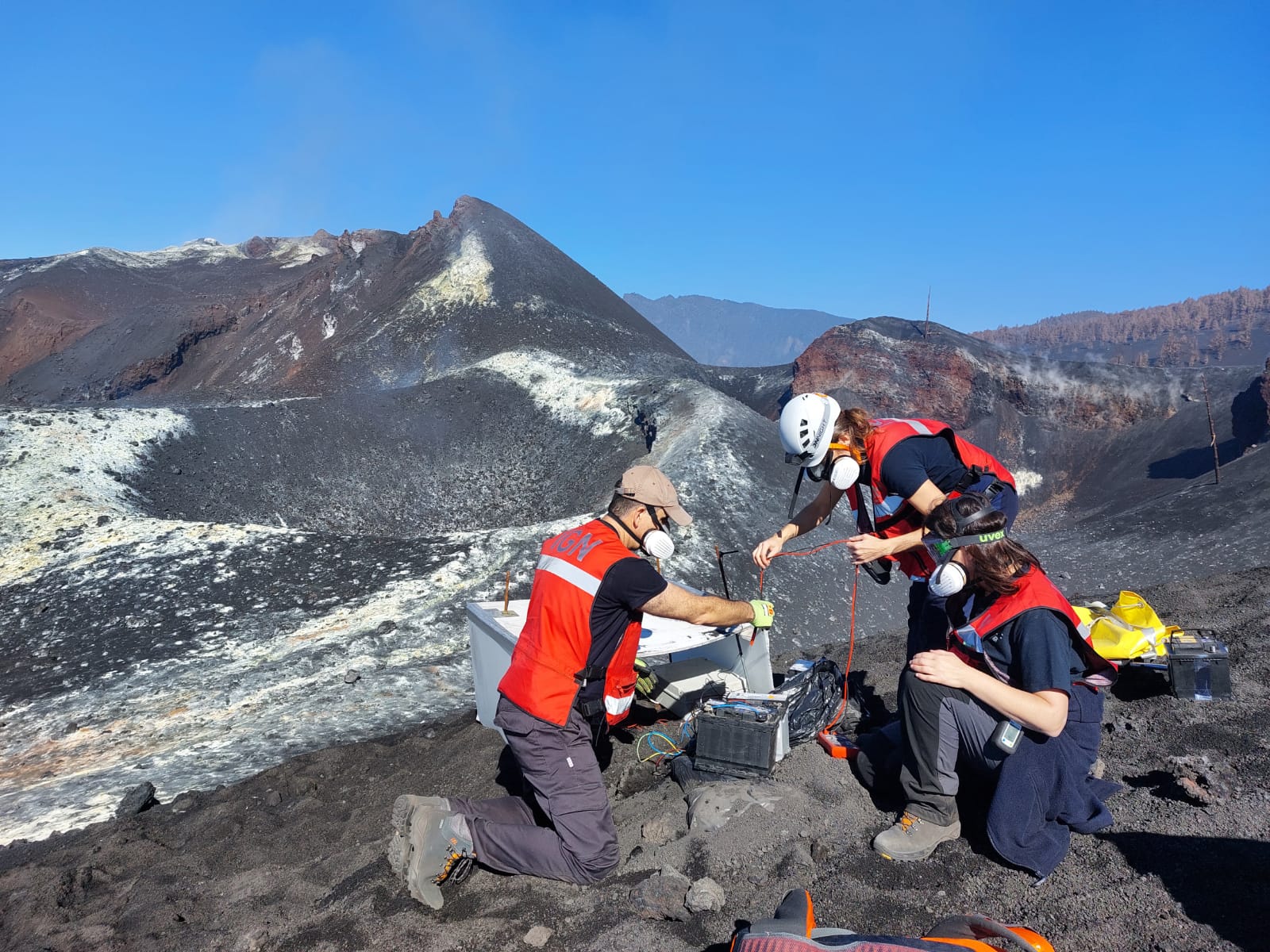 Se continua con la toma de muestras de gases fumarólicos en el cráter del edificio principal así como con el mantenimiento de la instrumentación geoquímica desplegada en las inmediaciones de este para seguir en detalle la etapa posteruptiva.