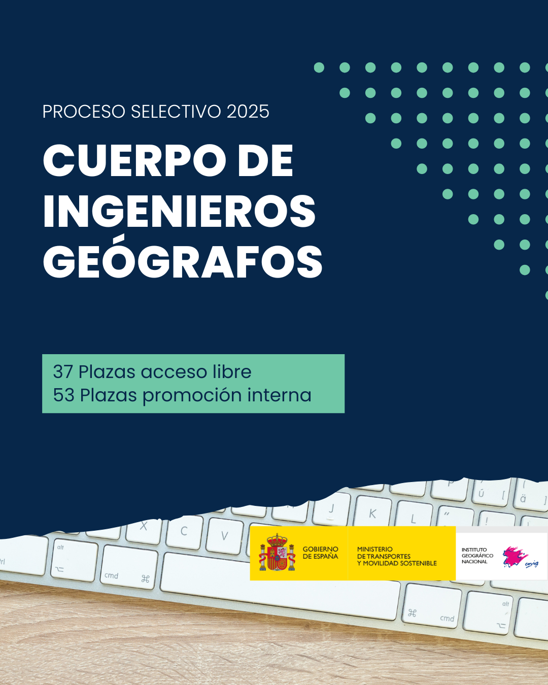 11/11/2025Proceso selectivo para ingreso en el Cuerpo de Ingenieros Geógrafos![]() Se ha convocado proceso selectivo para el ingreso, por el sistema general de acceso libre y promoción interna, en el Cuerpo de Ingenieros Geógrafos. El proceso selectivo se realizará mediante el sistema de oposición para las personas aspirantes que se presenten por el turno de acceso libre y mediante el sistema de concurso–oposición para aquellas que lo hagan por el turno de acceso por promoción interna. Por acceso libre cubre 37 plazas y por promoción interna cubre 53 plazas. El plazo de solicitud es de 20 días hábiles contados a partir del día siguiente al de la fecha de publicación de la convocatoria en el «Boletín Oficial del Estado». Puedes consultar esta convocatoria en su publicación en el BOE. |