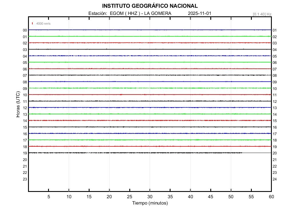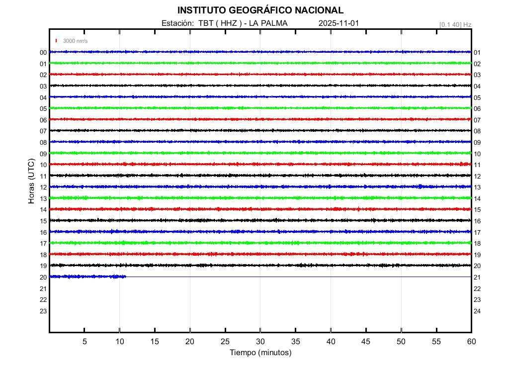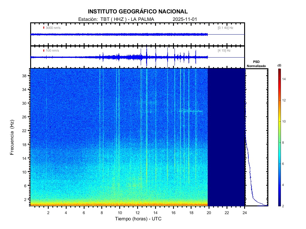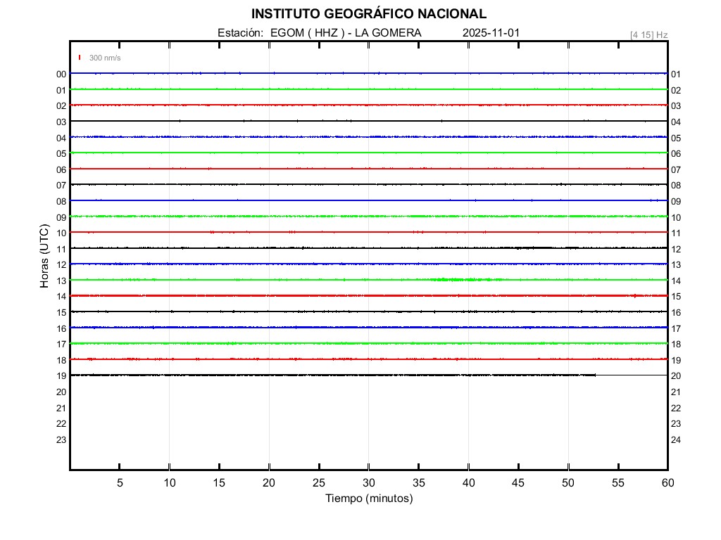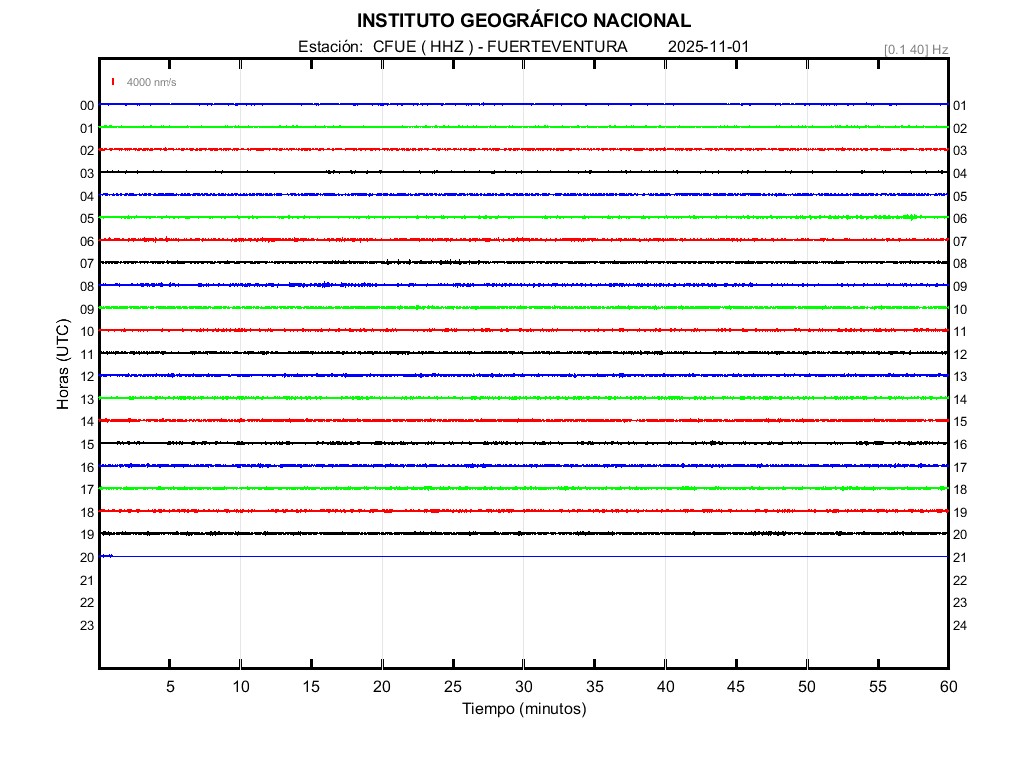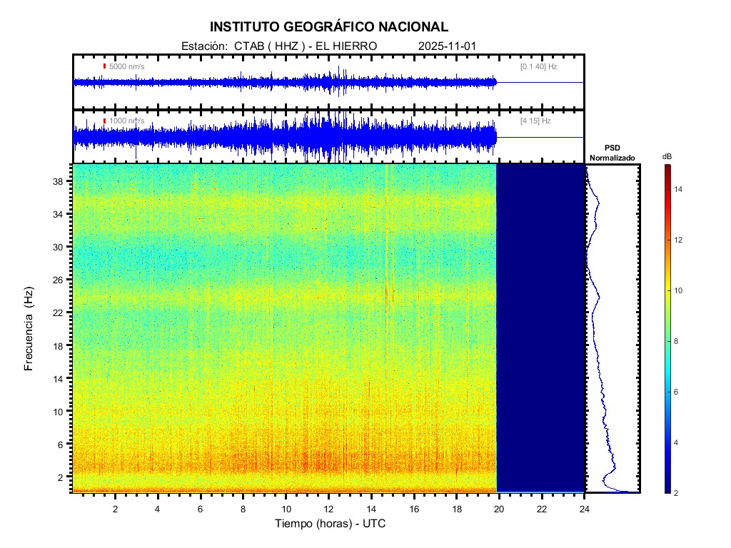 | 2025-11-01 | Forma de Onda (Filtro banda ancha) | Forma de Onda (Filtro corto periodo) | Espectrograma ([0 40] Hz) | Espectrograma ([0 15] Hz) | ||