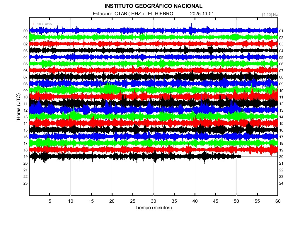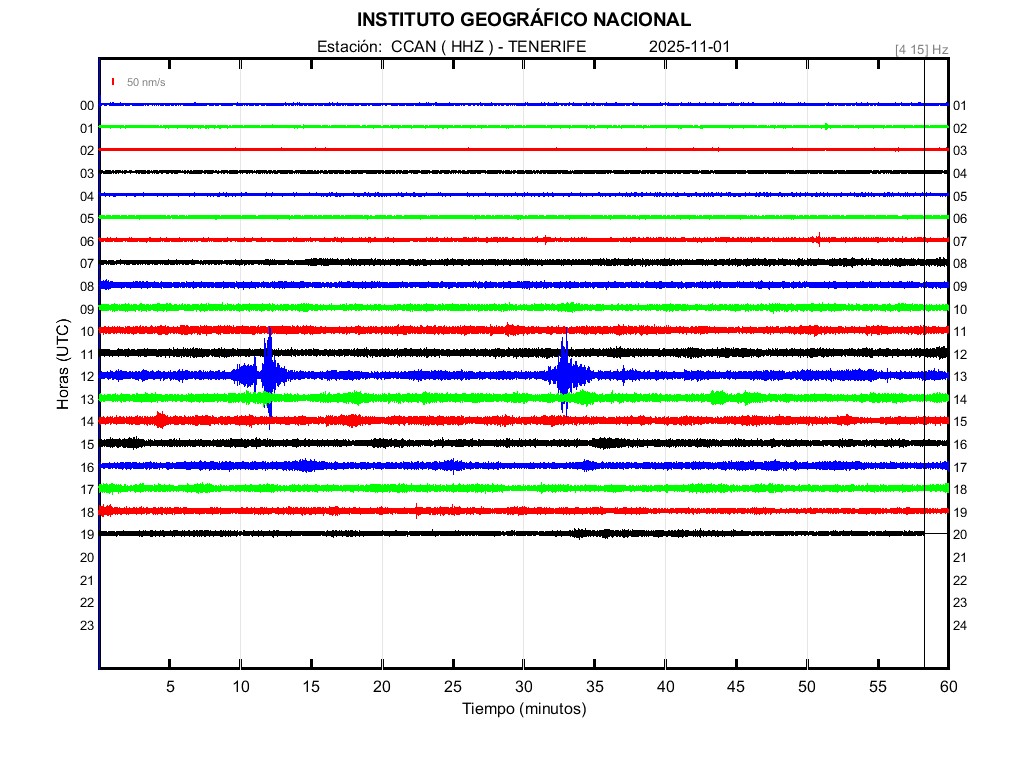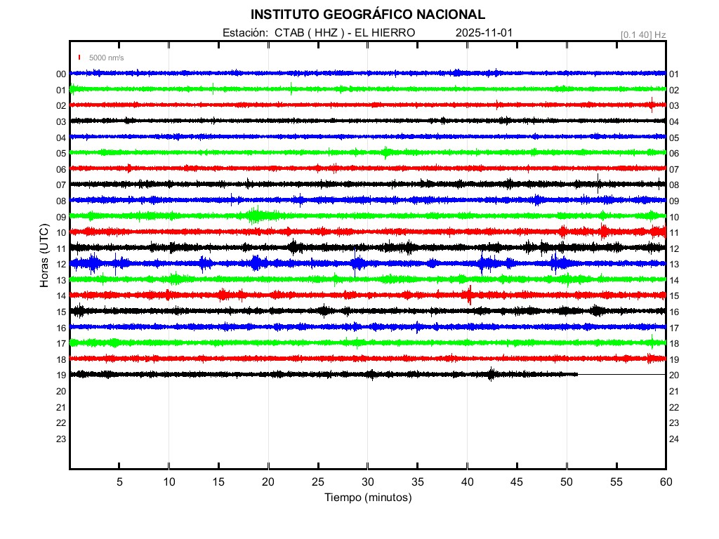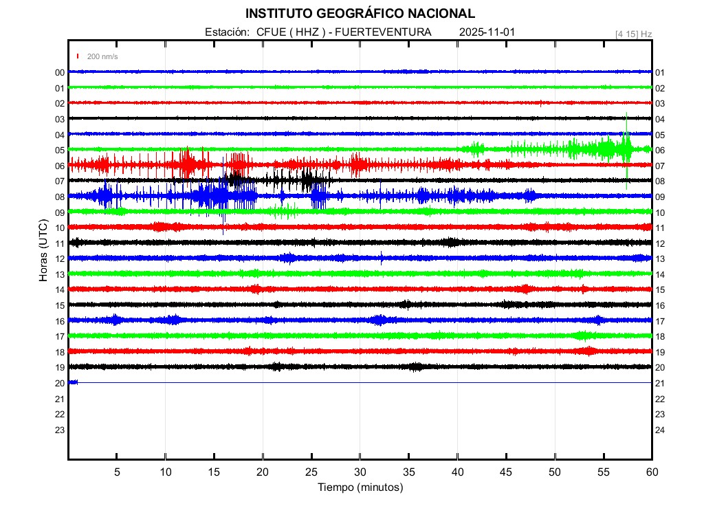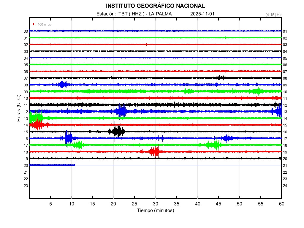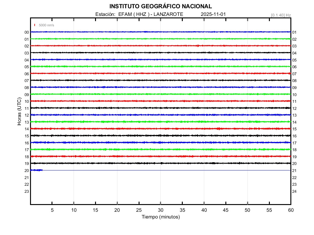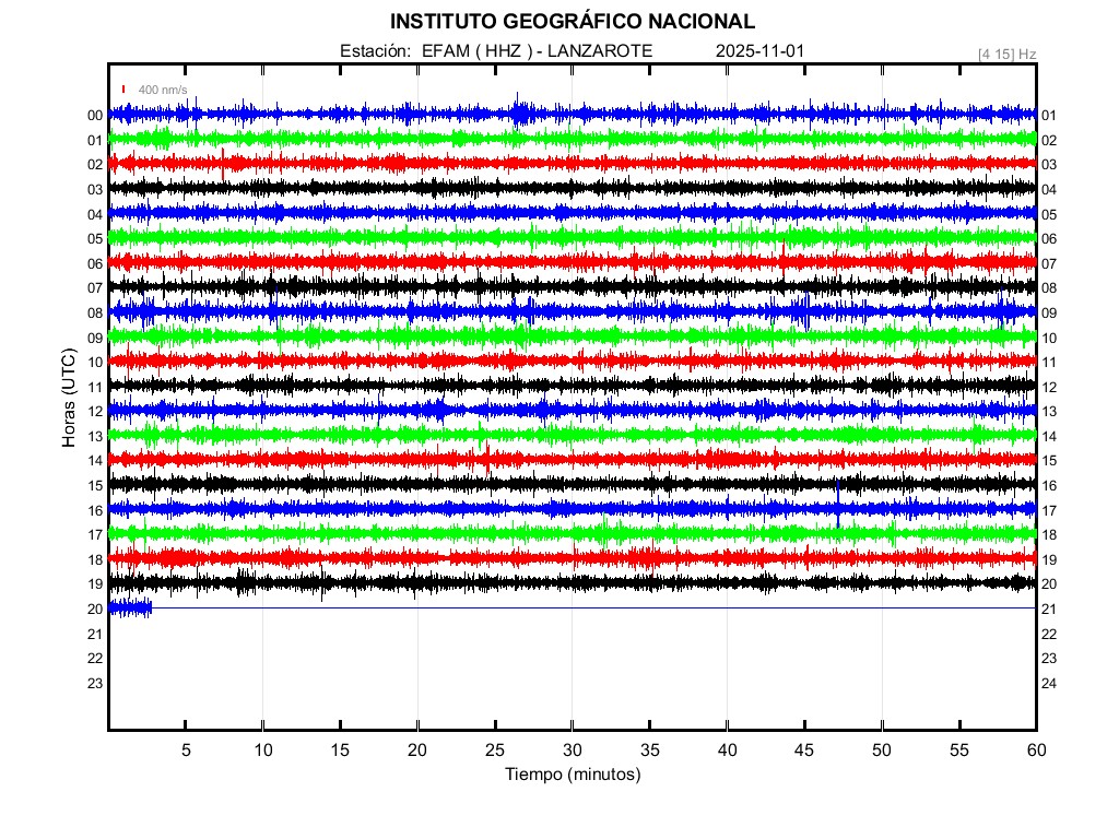 | 2025-11-01 | Forma de Onda (Filtro banda ancha) | Forma de Onda (Filtro corto periodo) | Espectrograma ([0 40] Hz) | Espectrograma ([0 15] Hz) | ||