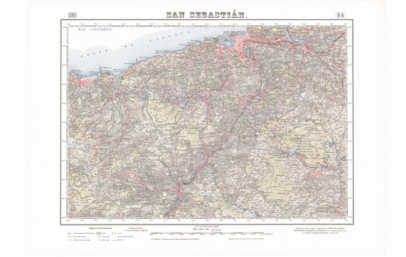 San Sebastián 64 [Material cartográfico] Dirección General del Instituto Geográfico y Catastral. Escala 1:50.000 (W 2°11'14"-W 1°51'14"/N 43°20'00"-N 43°10'00") Dirección General del Instituto Geográfico y Catastral, Madrid, 1953