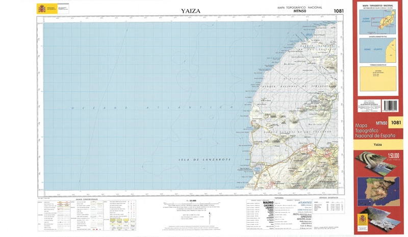 Yaiza 1081 [Material cartográfico] Dirección General del Instituto Geográfico Nacional. Escala 1:50.000 (W 14°4'04"-W 13°44'04"/N 29°4'55"-N 28°54'55") Dirección General del Instituto Geográfico Nacional, Madrid, 2005