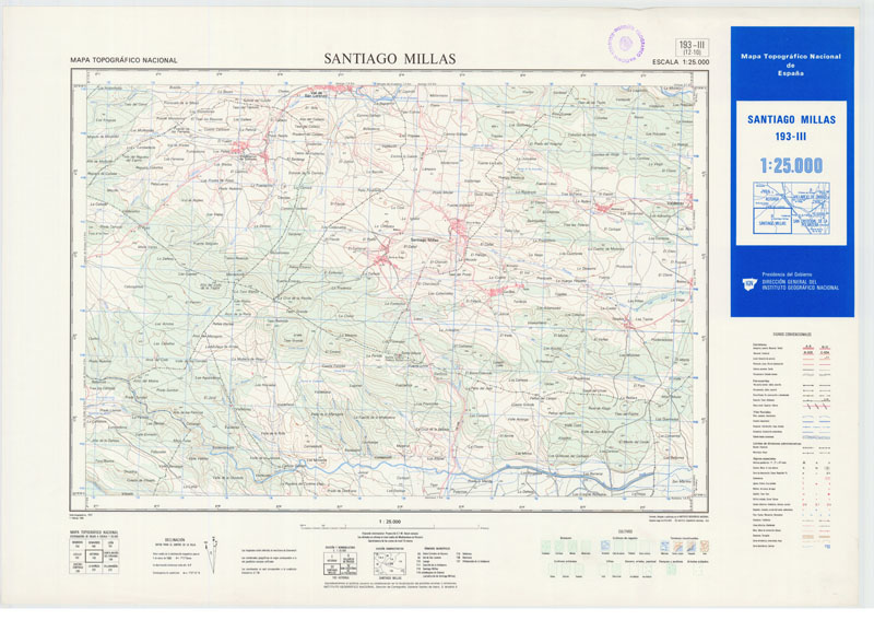 Santiago Millas 193-III: (12-10) [Material cartográfico] Dirección General del Instituto Geográfico y Catastral. Escala 1:25.000 (W 6°11'15"-W 6°1'14"/N 42°25'00"-N 42°19'59") Dirección General del Instituto Geográfico y Catastral, Madrid, 1980