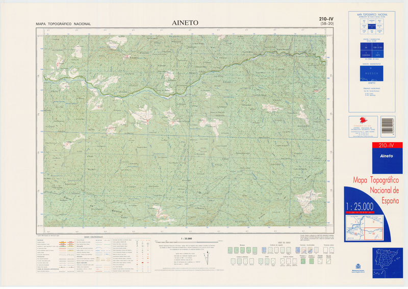 Aineto 210-IV: (58-20) [Material cartográfico] Dirección General del Instituto Geográfico Nacional. Escala 1:25.000 (E 0°21'15"-E 0°11'15"/N 42°25'00"-N 42°19'59") Dirección General del Instituto Geográfico Nacional, Madrid, 1999