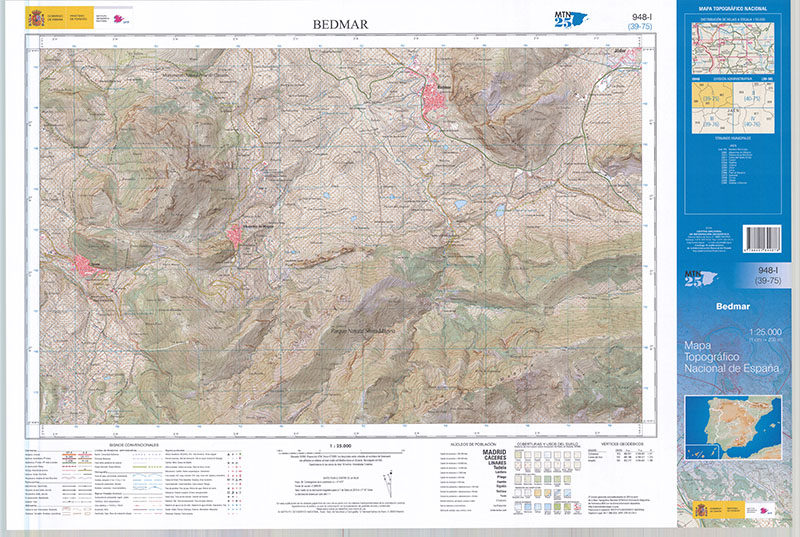 Bedmar 948-I: (39-75) [Material cartográfico] Dirección General del Instituto Geográfico Nacional. Escala 1:25.000 (W 3°31'14"-W 3°21'15"/N 37°49'59"-N 37°45'00") Dirección General del Instituto Geográfico Nacional, Madrid, 2019