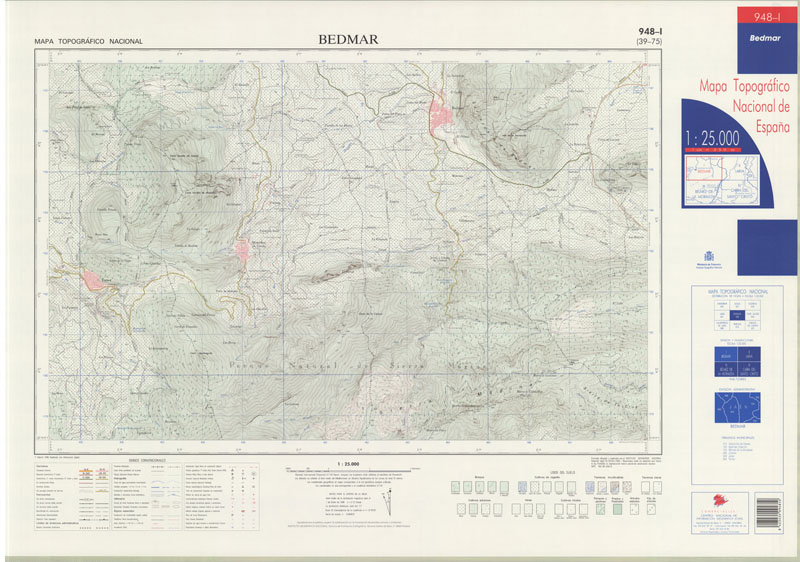 Bedmar 948-I: (39-75) [Material cartográfico] Dirección General del Instituto Geográfico Nacional. Escala 1:25.000 (W 3°31'14"-W 3°21'15"/N 37°49'59"-N 37°45'00") Dirección General del Instituto Geográfico Nacional, Madrid, 1996