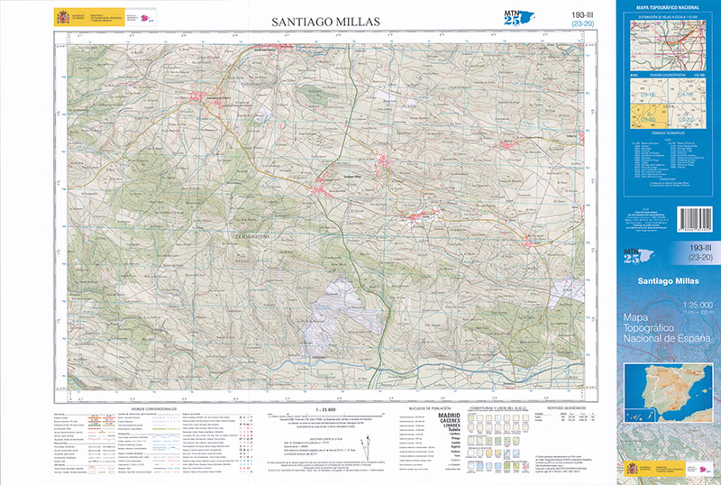 Santiago Millas 193-III: (23-20)Dirección General del Instituto Geográfico Nacional. Escala 1:25.000 (W 6°11'15"-W 6°1'14"/N 42°25'00"-N 42°19'59") Dirección General del Instituto Geográfico Nacional, Madrid, 2019