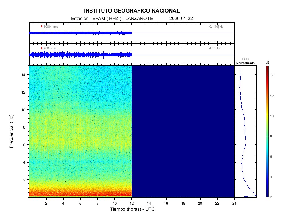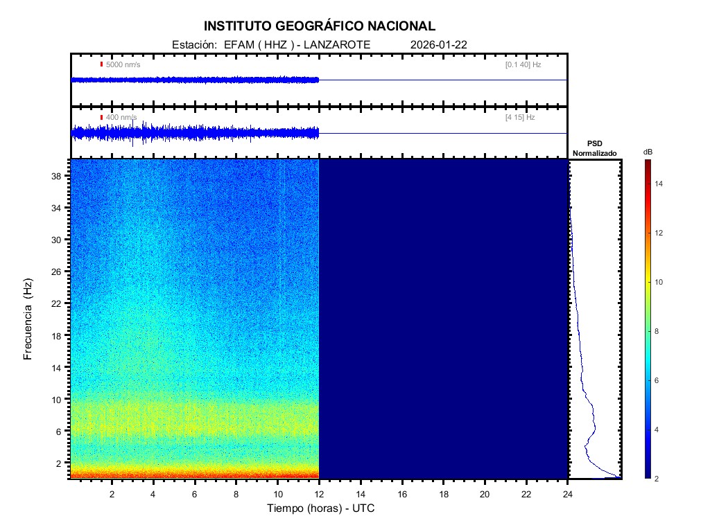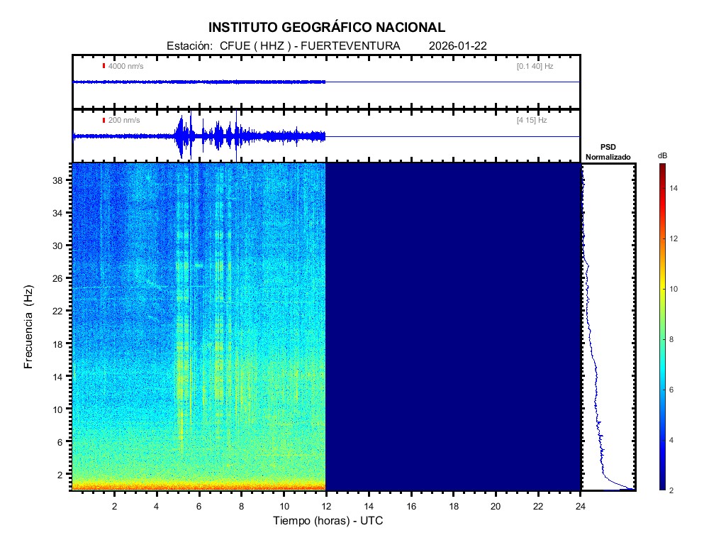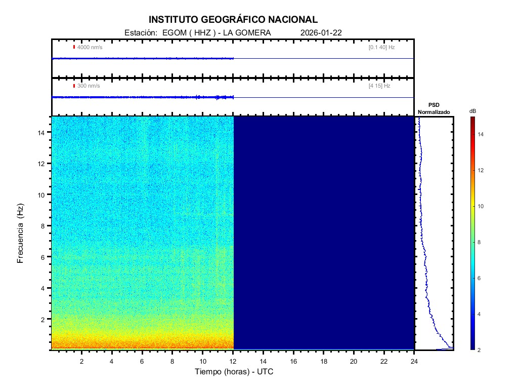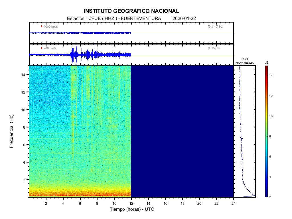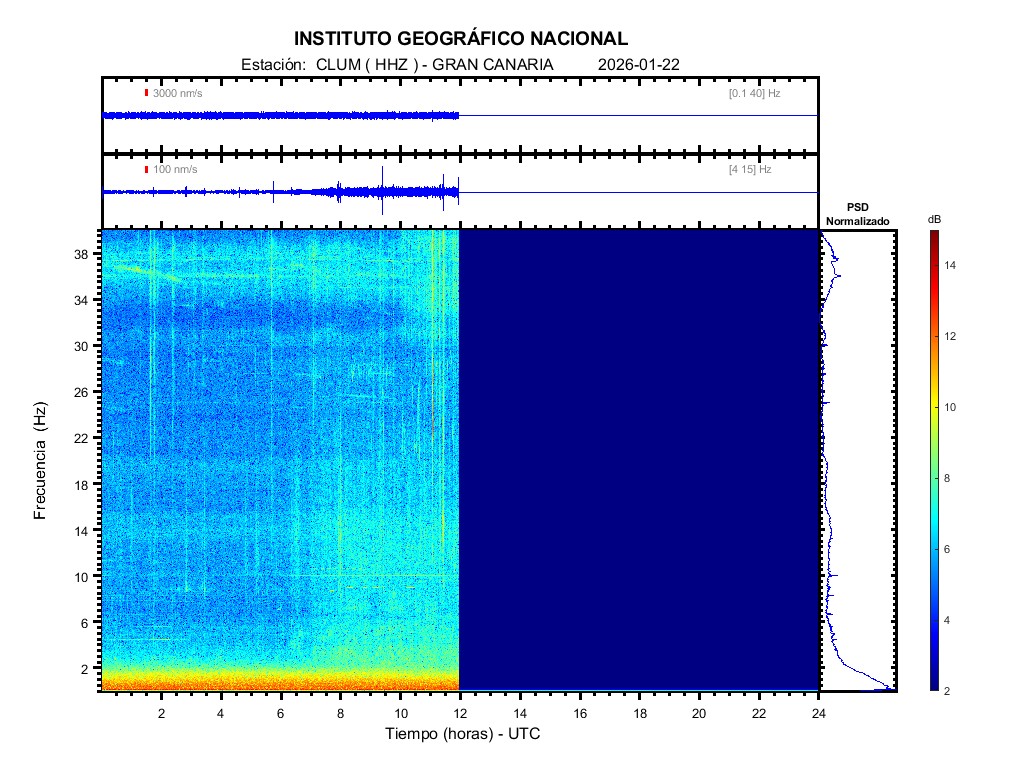 2026-01-22   Forma de Onda (Filtro banda ancha) Forma de Onda (Filtro corto periodo) Espectrograma ([0 40] Hz) Espectrograma ([0 15] Hz)