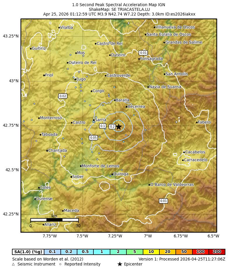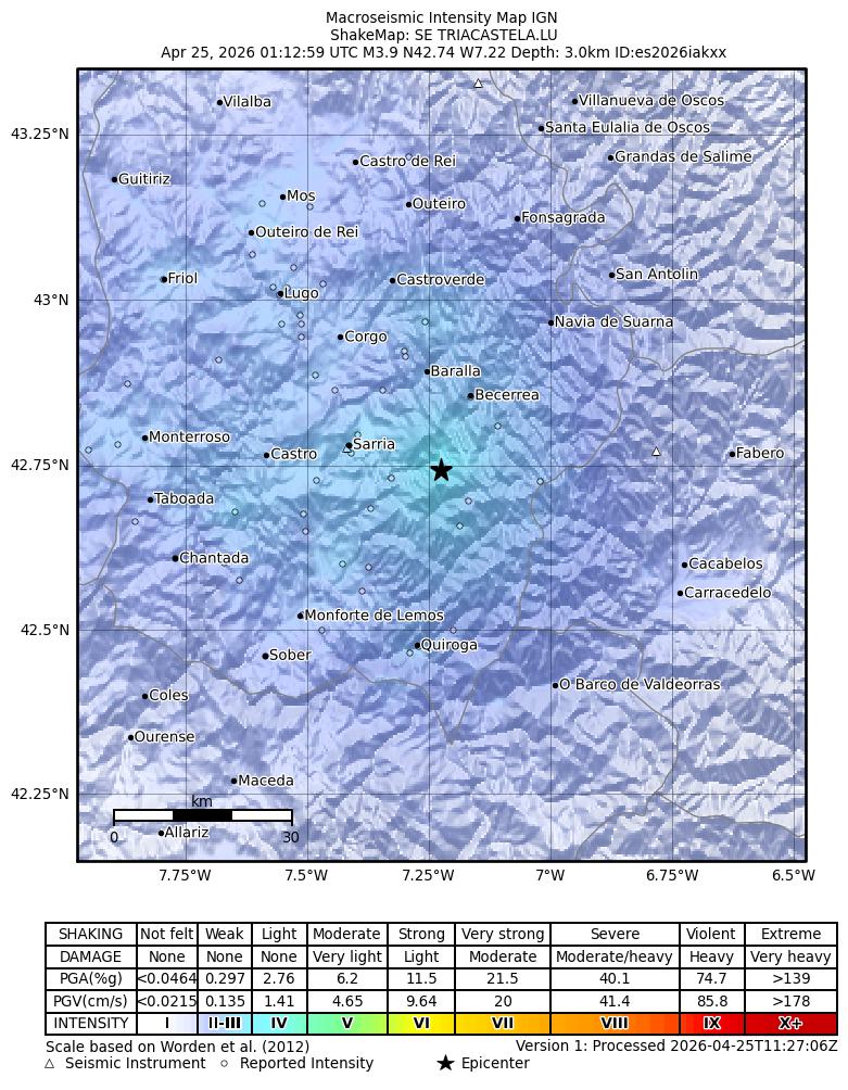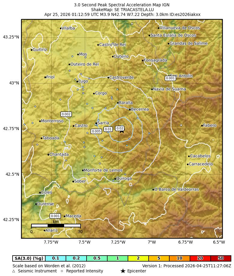 | es2026iakxx | 25/04/2026 | 01:12:59 | 03:12:59 | 42.7427 | -7.2246 | 3.0 | 3.9 | mbLg | SE TRIACASTELA.LU |