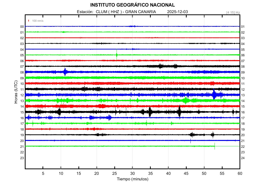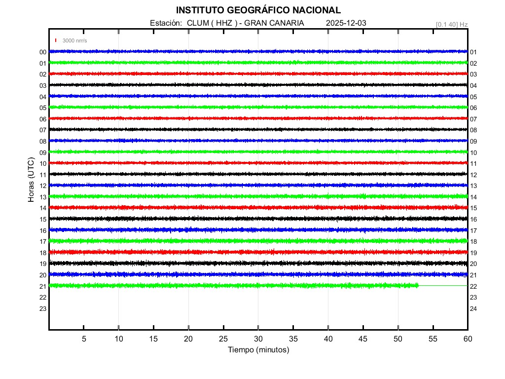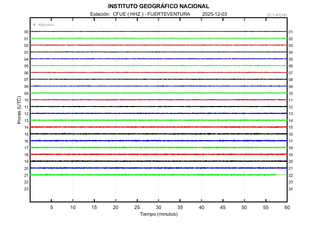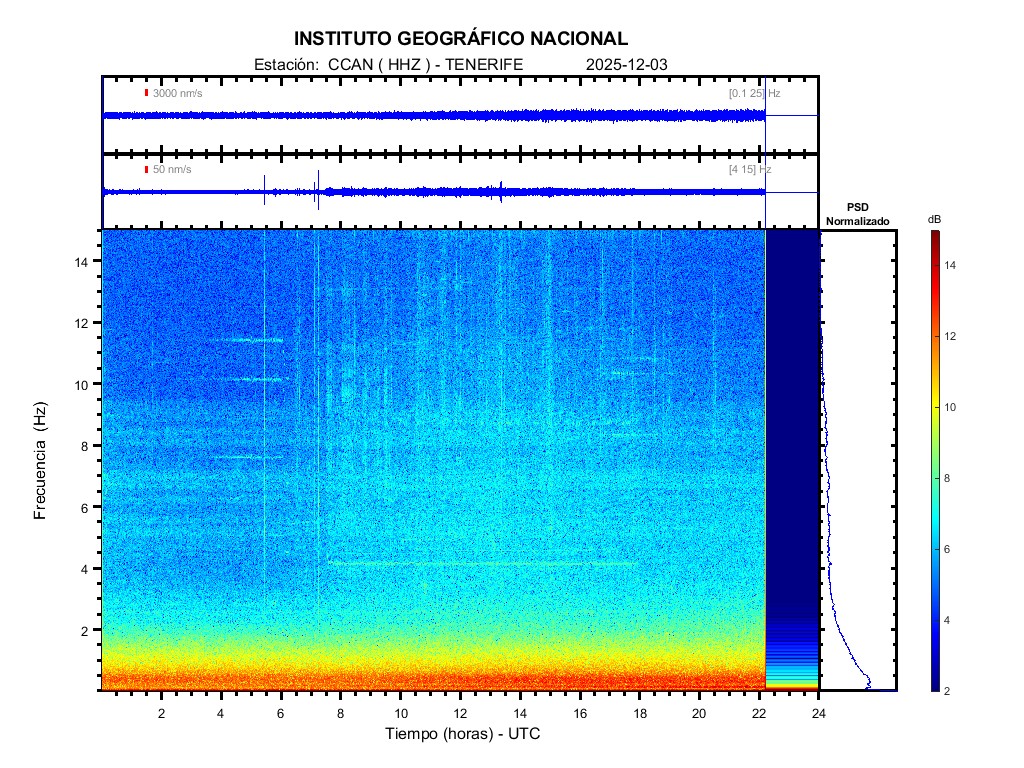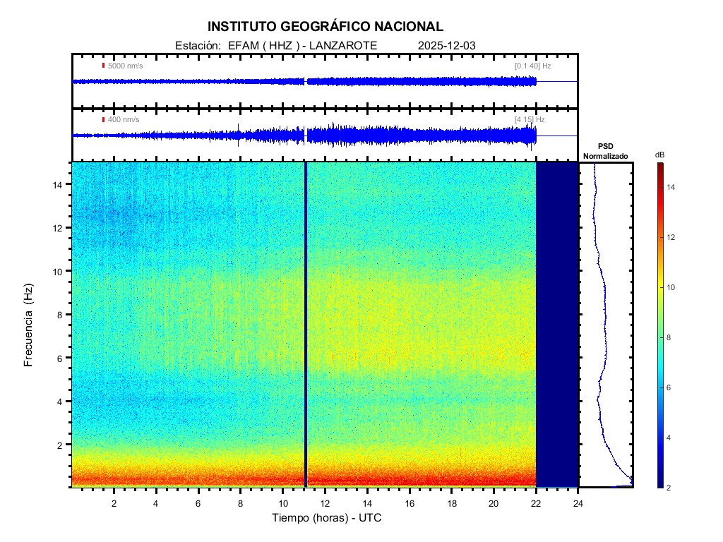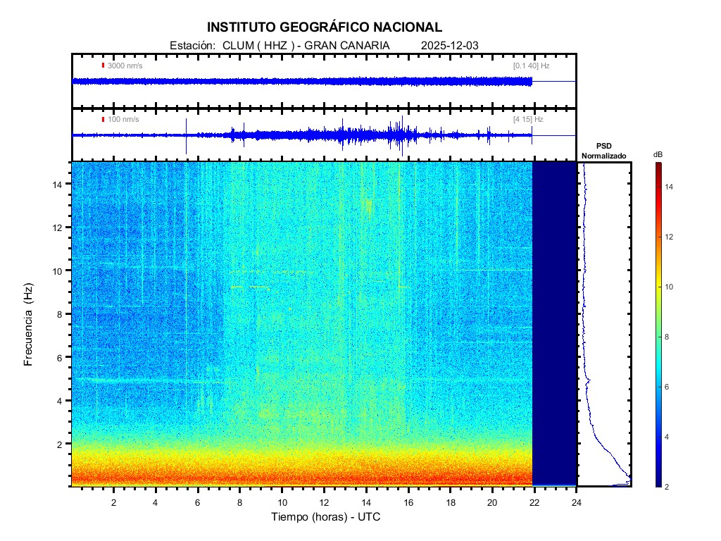 | 2025-12-03 | Forma de Onda (Filtro banda ancha) | Forma de Onda (Filtro corto periodo) | Espectrograma ([0 40] Hz) | Espectrograma ([0 15] Hz) | ||