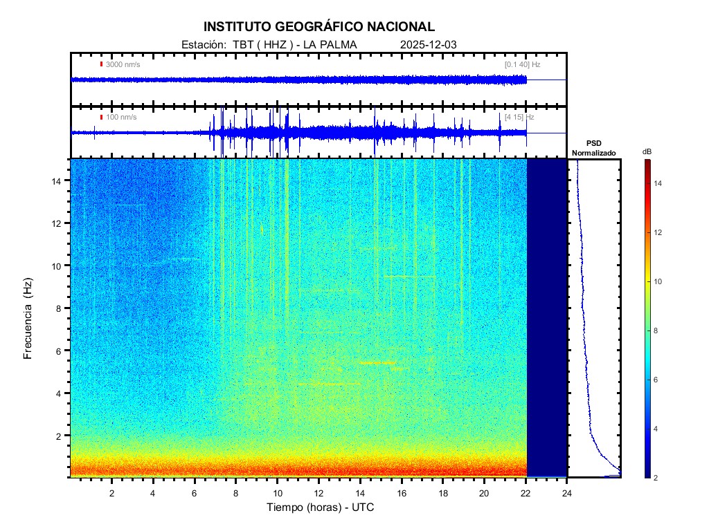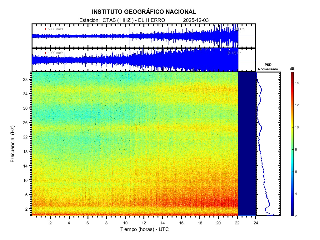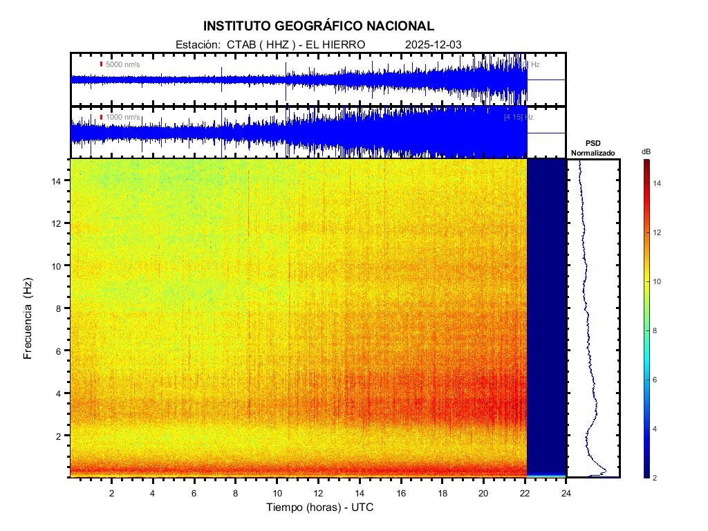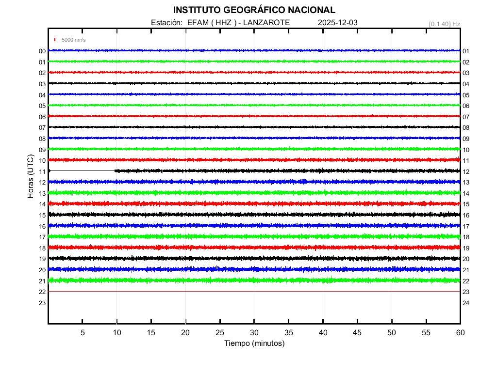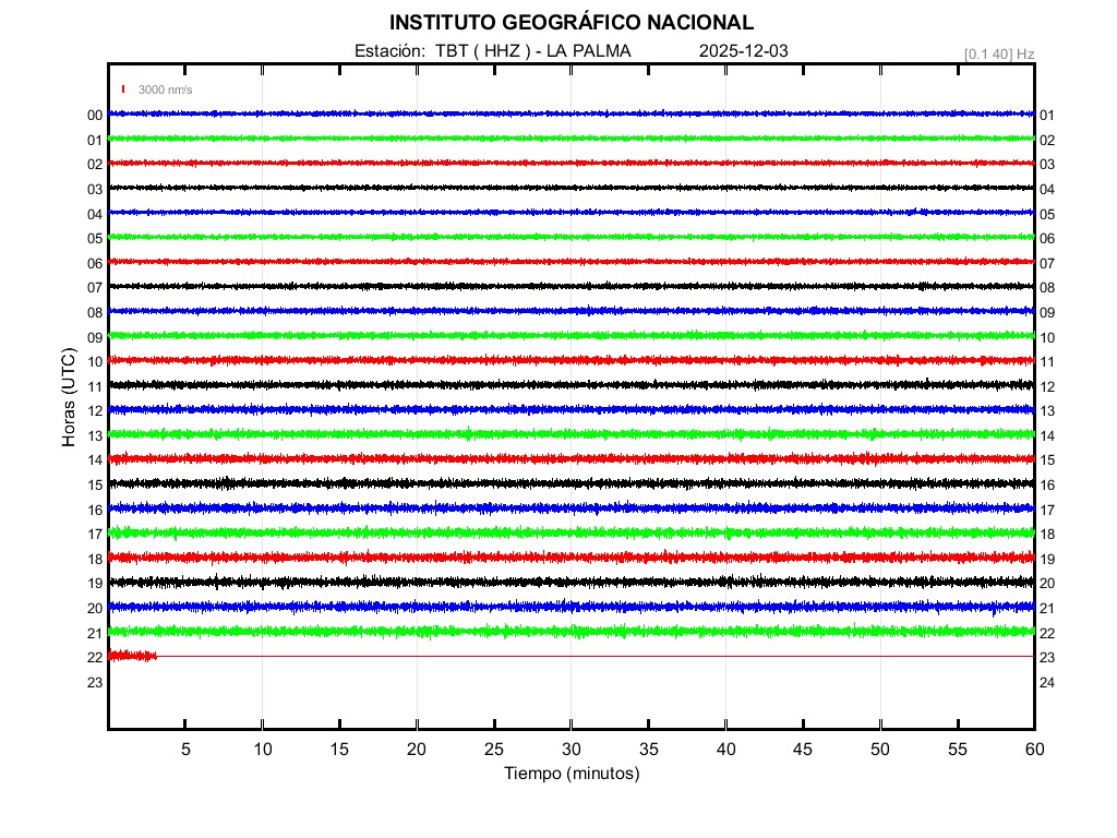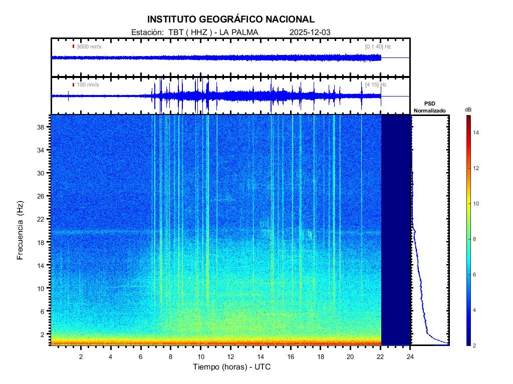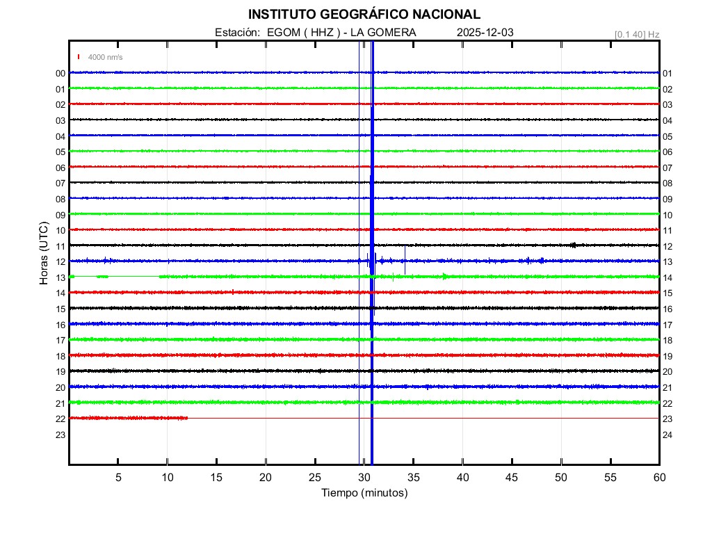 | 2025-12-03 | Forma de Onda (Filtro banda ancha) | Forma de Onda (Filtro corto periodo) | Espectrograma ([0 40] Hz) | Espectrograma ([0 15] Hz) | ||