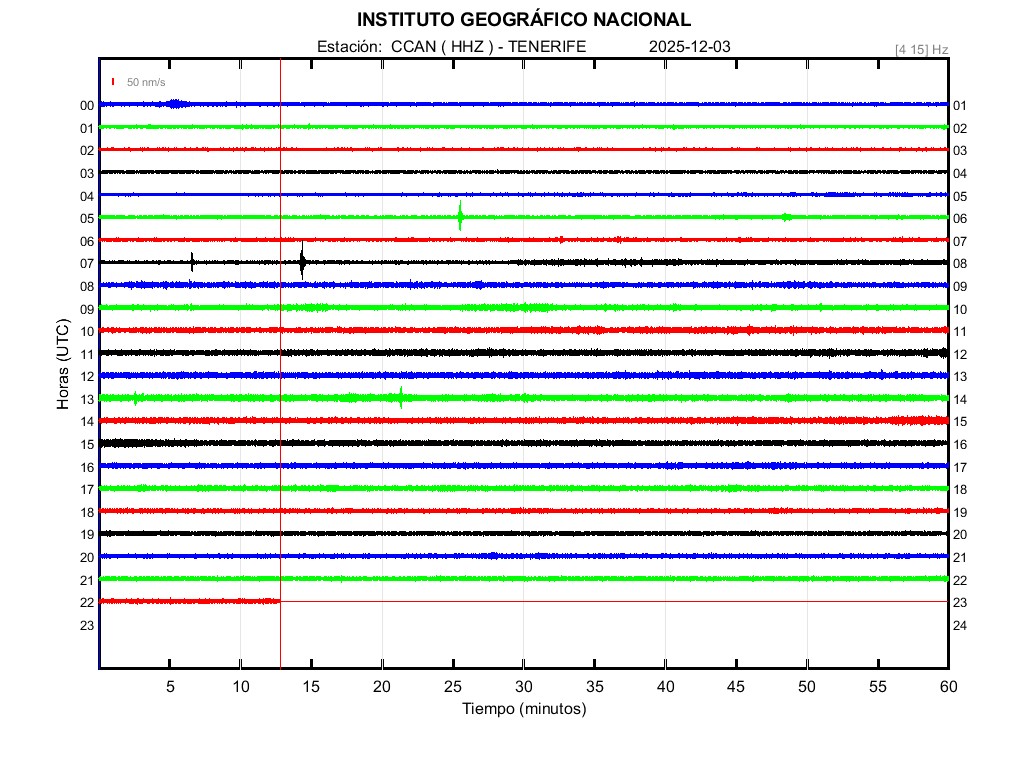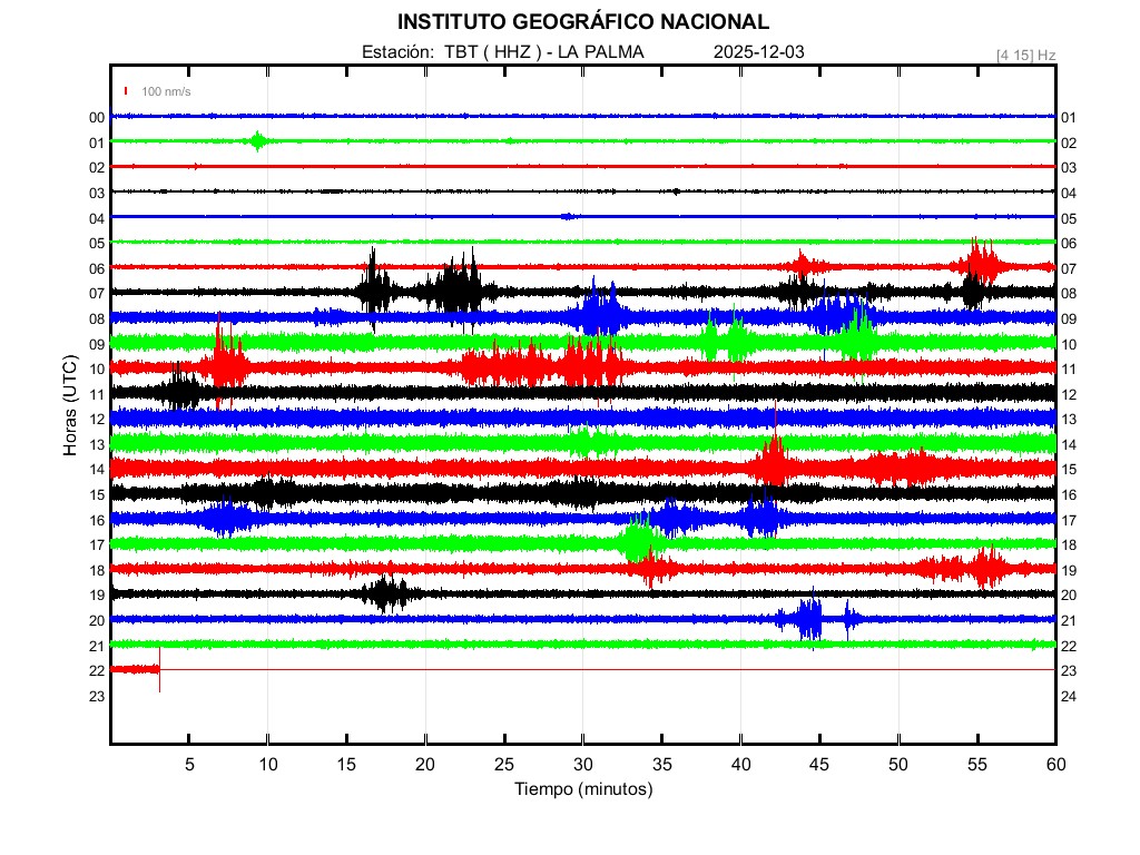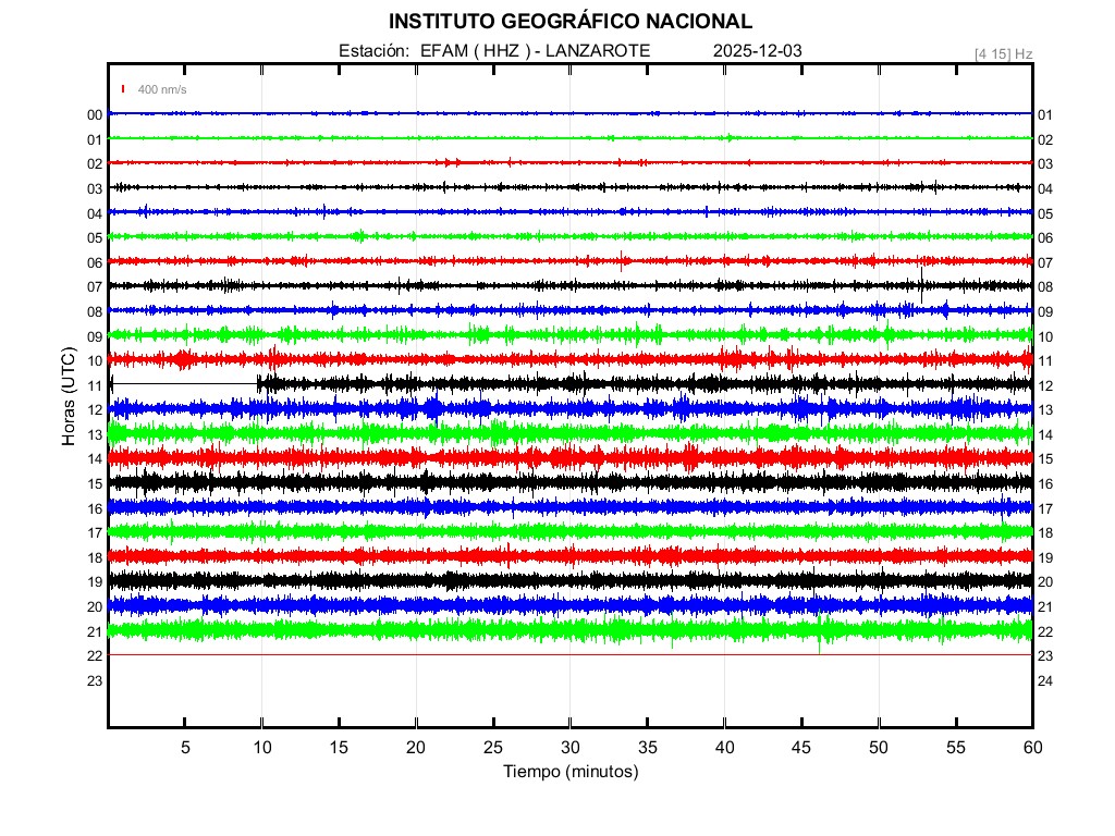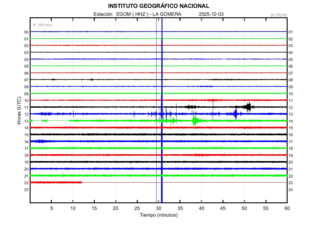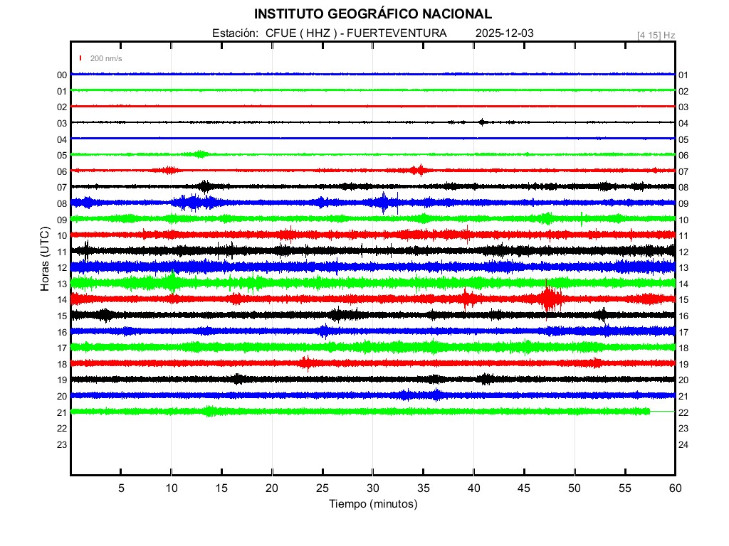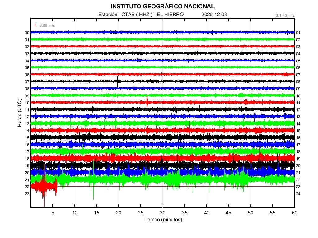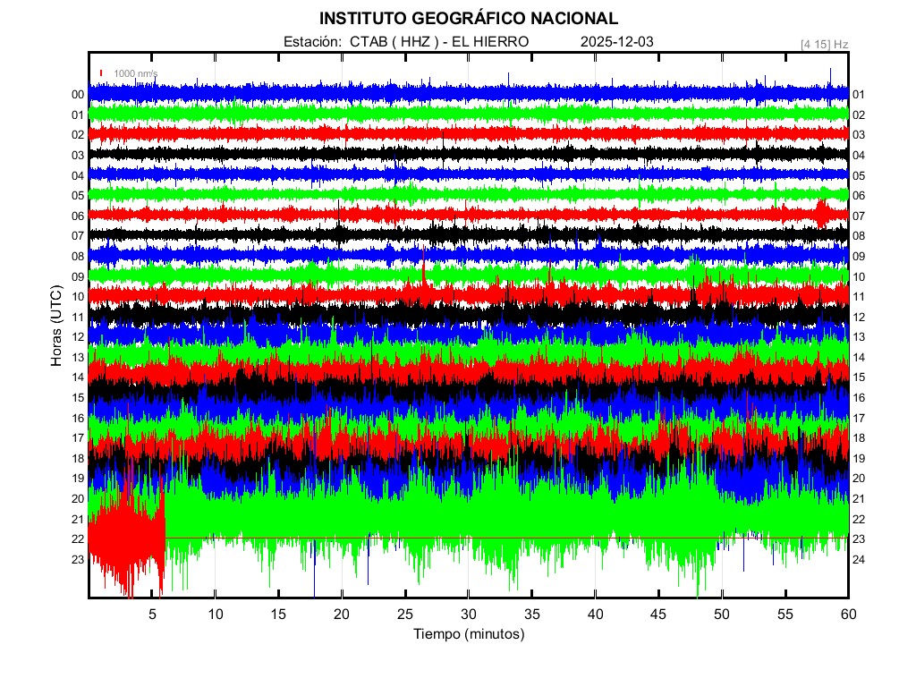 | 2025-12-03 | Forma de Onda (Filtro banda ancha) | Forma de Onda (Filtro corto periodo) | Espectrograma ([0 40] Hz) | Espectrograma ([0 15] Hz) | ||