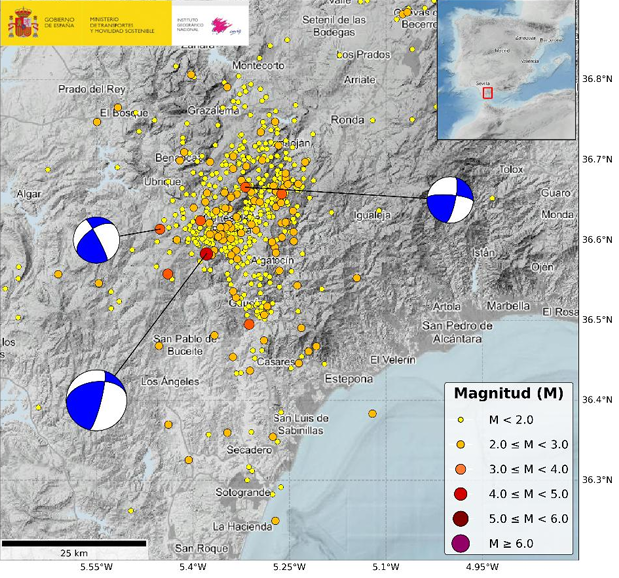 17/04/2026Información actualizada de la sismicidad del suroeste de la provincia de Málaga y sureste de la provincia de Cádiz (febrero 2026)![]() Se ha publicado una versión actualizada, a 16/04/2026 a las 12:00h UTC, de la información sobre la sismicidad del suroeste de la provincia de Málaga y sureste de la provincia de Cádiz, de febrero de 2026. Esta versión incluye una sección con los resultados de la relocalización de los terremotos de M>=1.5 de la serie sísmica registrados. Desde el día 3 de febrero y hasta el 11 de marzo la Red Sísmica Nacional del IGN ha registrado 576 terremotos de pequeña magnitud, en su mayoría de M<3, siendo Mw 4,0 la máxima magnitud observada. La nota informativa se encuentra disponible en los informes destacados de la sección de “Información sísmica”. Puedes consultarla aquí. |