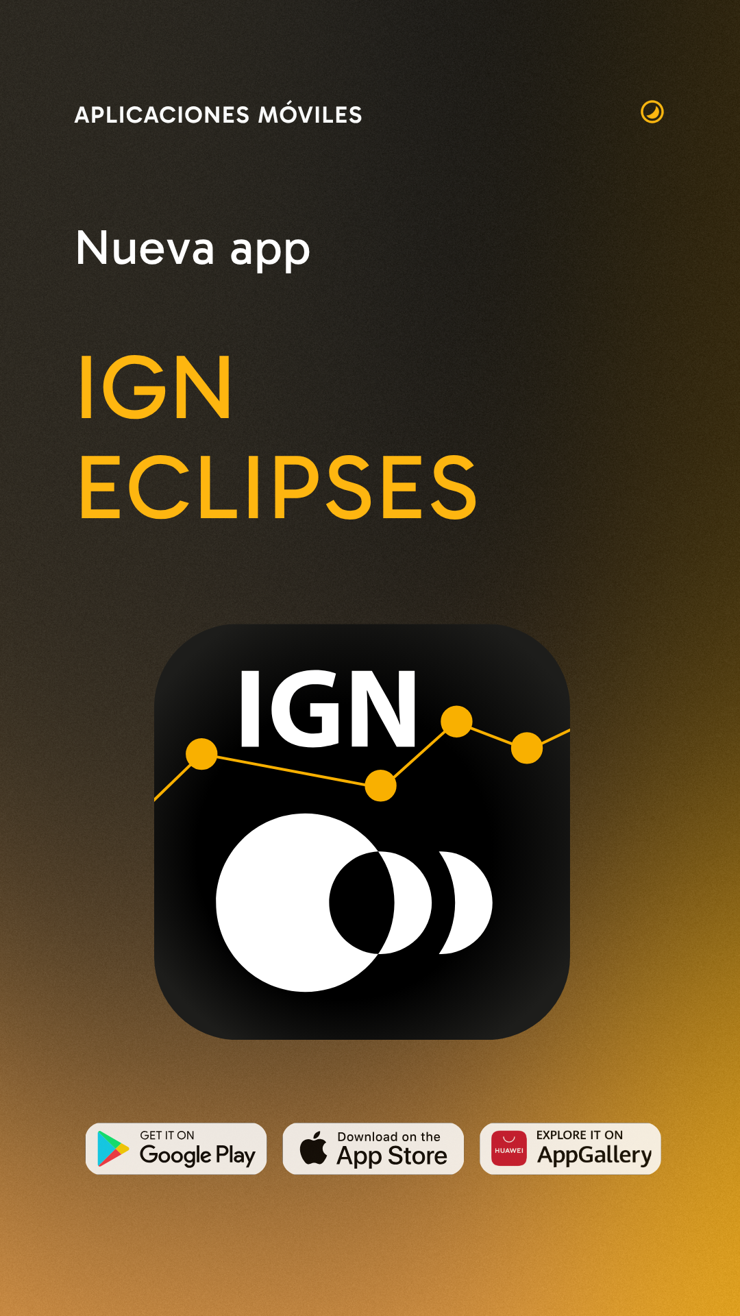 17/04/2026Nuevo producto a descarga: Trío de eclipses![]() Disponible a descarga el nuevo producto «Trío de eclipses». Es un grupo de ficheros con las efemérides de los eclipses totales de Sol del 12 de agosto de 2026 y del 2 de agosto de 2027, y anular del 26 de enero de 2028, las curvas de oscurecimiento máximo y de duración de la fase de totalidad / anularidad, las curvas de la progresión de la umbra / antumbra de la Luna y el mapa de sombras del terreno del máximo del eclipse. Actualmente, solo están disponibles para su descarga los ficheros del eclipse total de Sol del 12 de agosto de 2026. Acceda, en nuestro Centro de Descargas, al producto Trío de eclipses para descargar los datos, ofrecidos en los formatos GeoTiff y Geopackage (.gpkg). Si desea obtener más información puede consultar en el Visualizador de eclipses del IGN. |