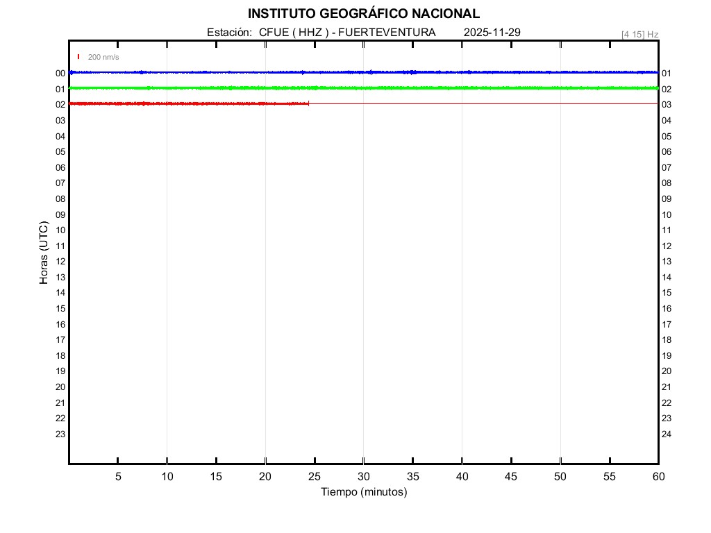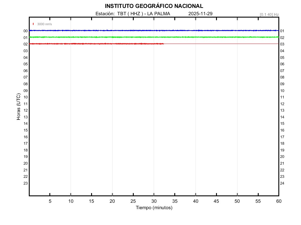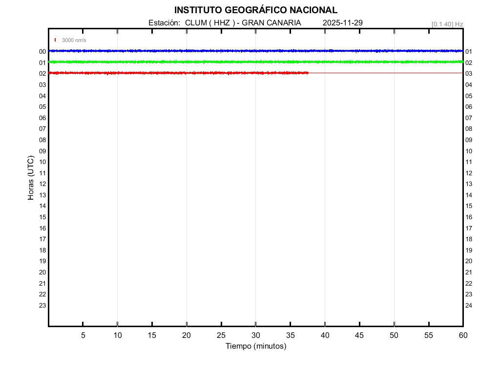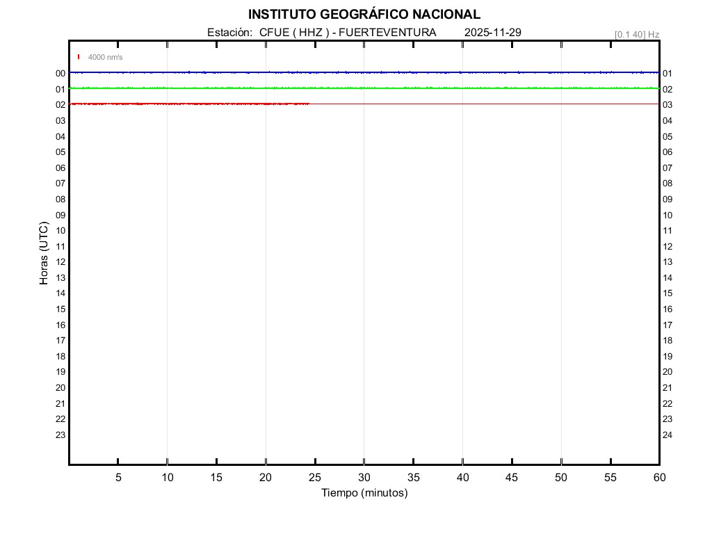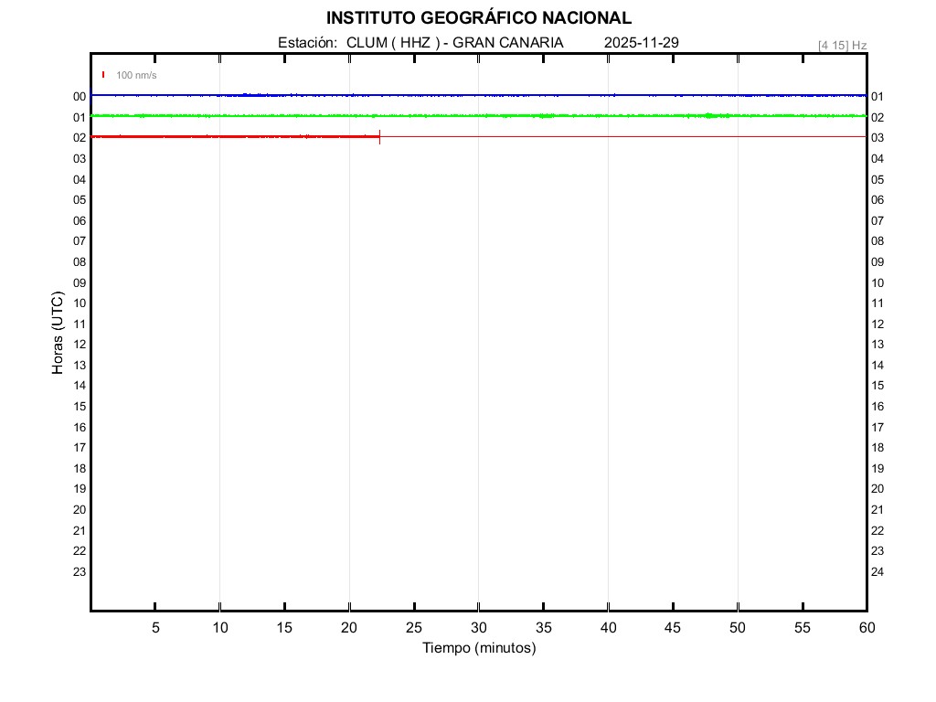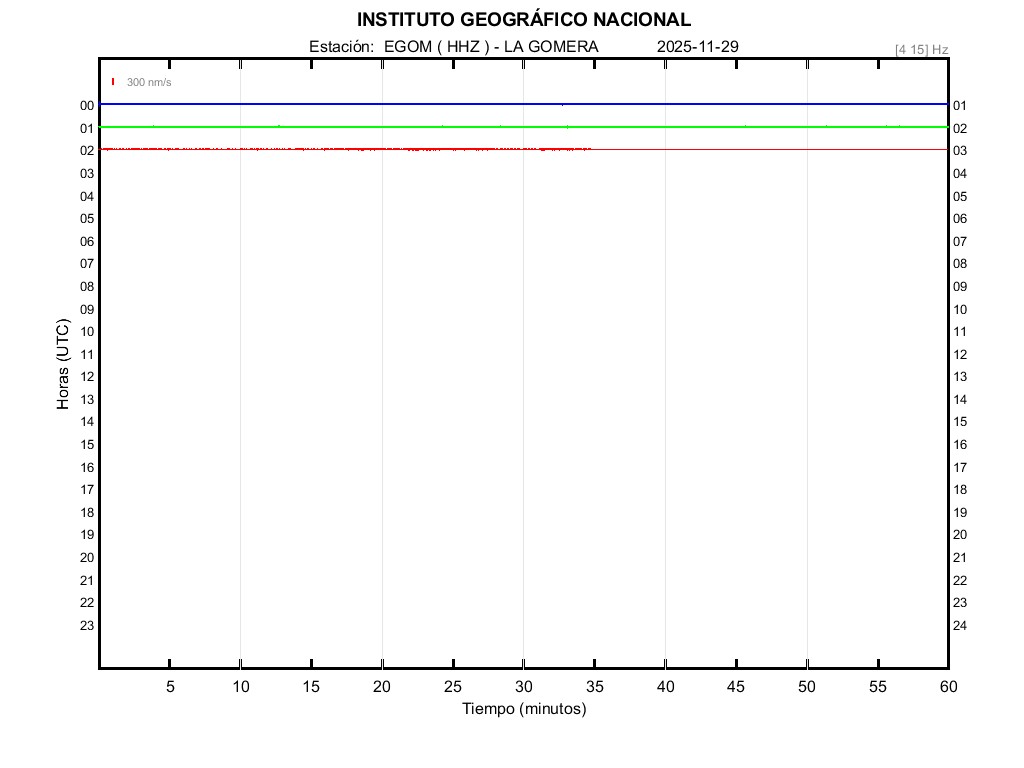 | 2025-11-29 | Forma de Onda (Filtro banda ancha) | Forma de Onda (Filtro corto periodo) | Espectrograma ([0 40] Hz) | Espectrograma ([0 15] Hz) | ||