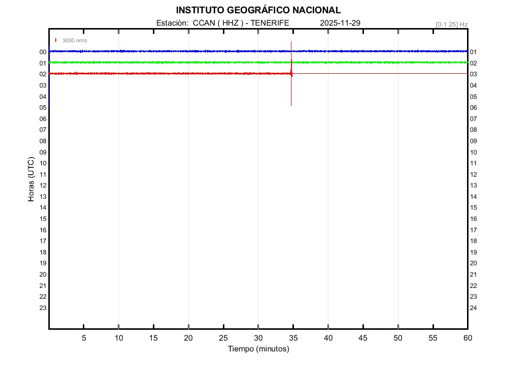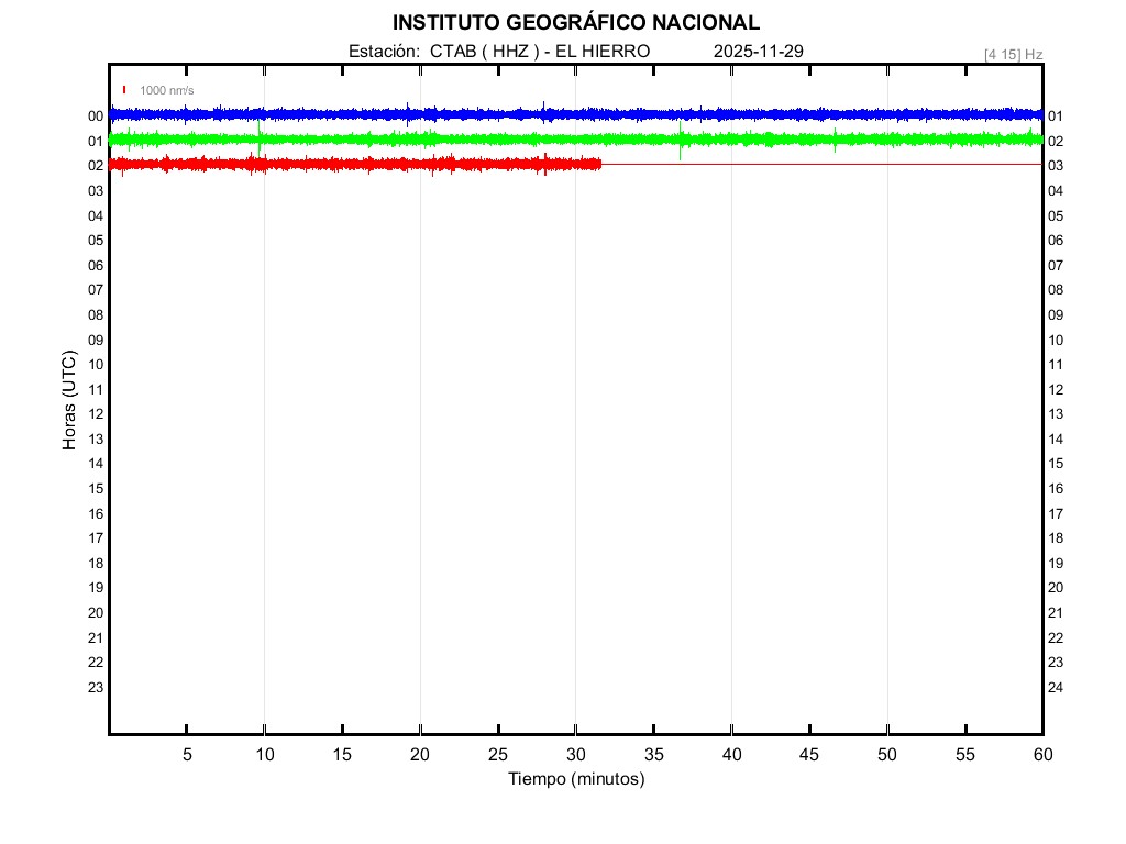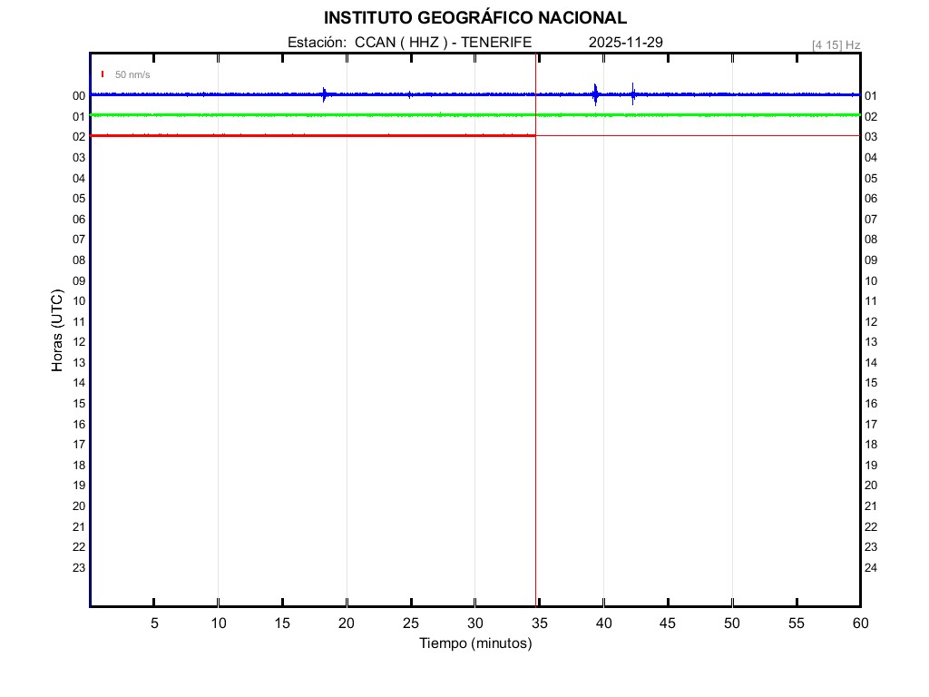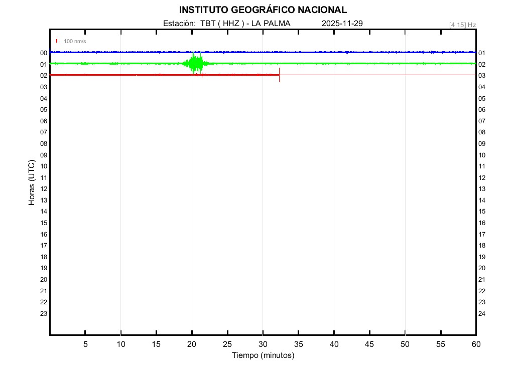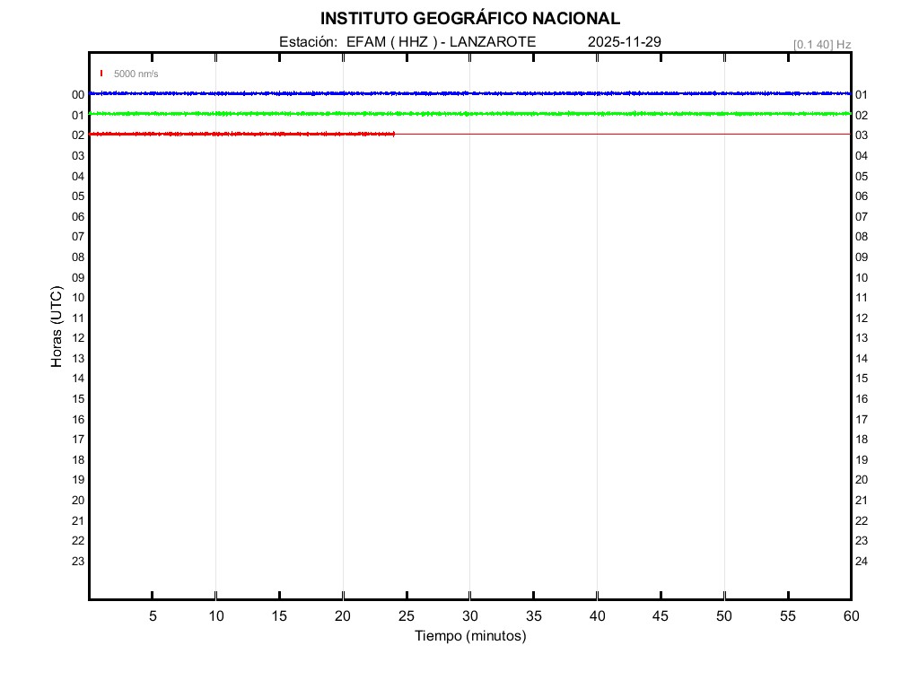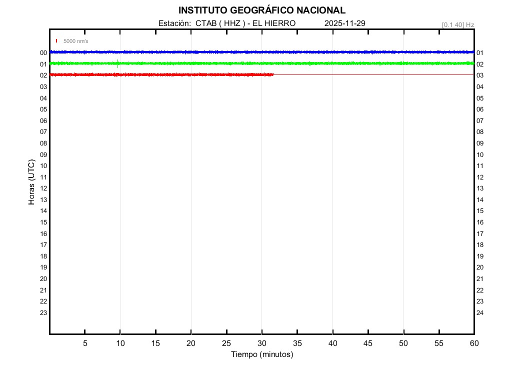 | 2025-11-29 | Forma de Onda (Filtro banda ancha) | Forma de Onda (Filtro corto periodo) | Espectrograma ([0 40] Hz) | Espectrograma ([0 15] Hz) | ||