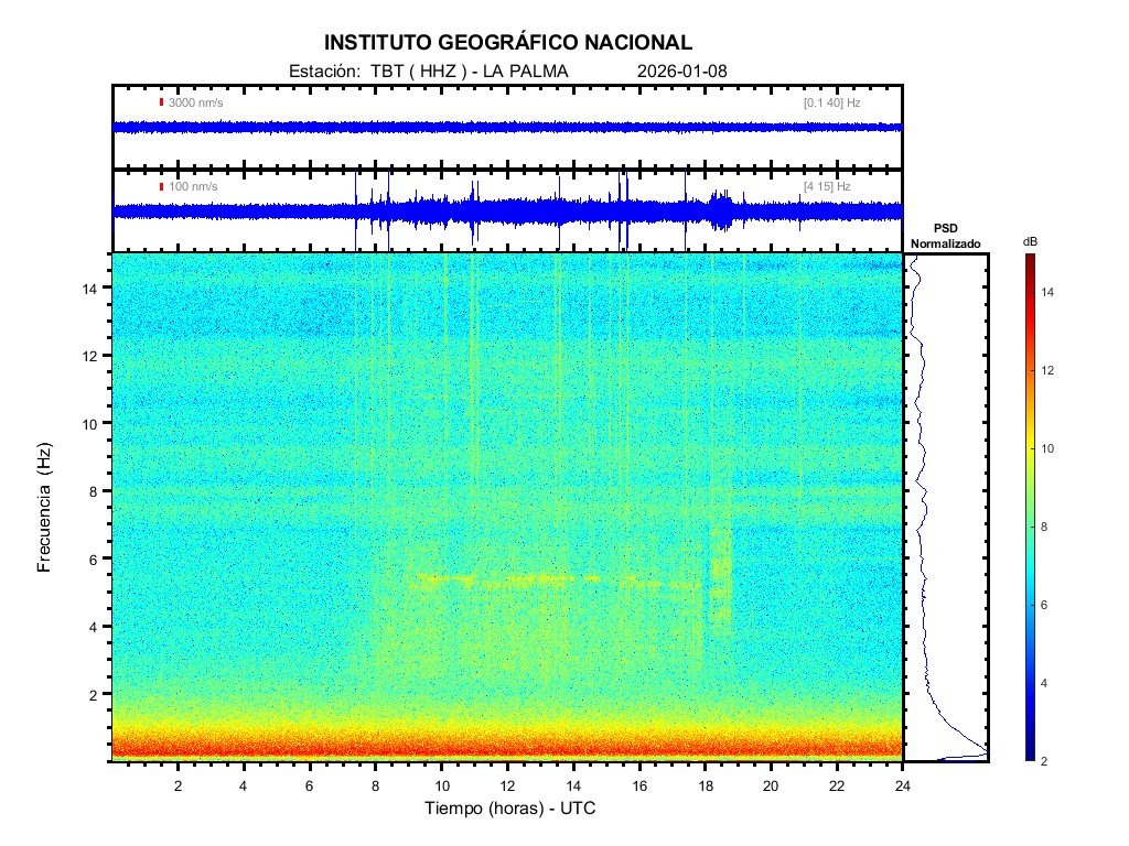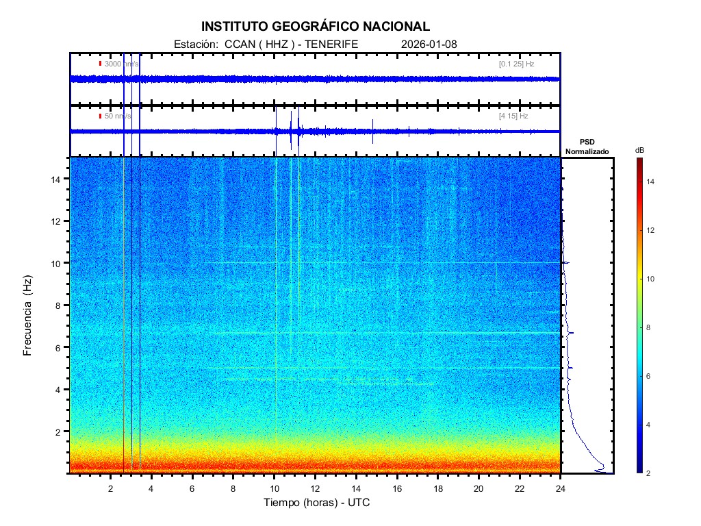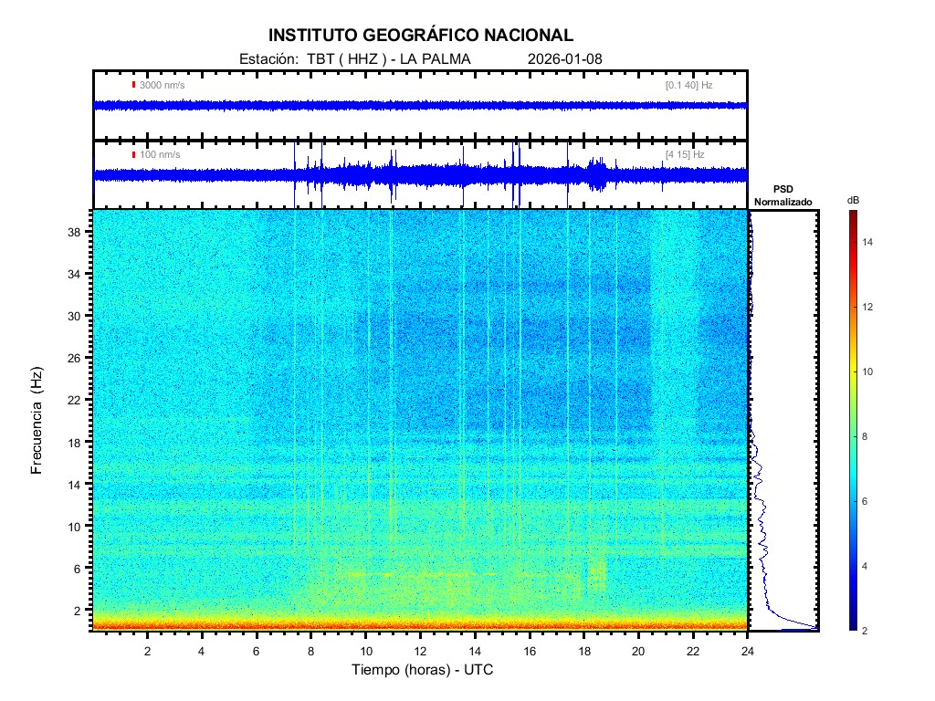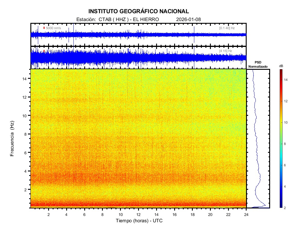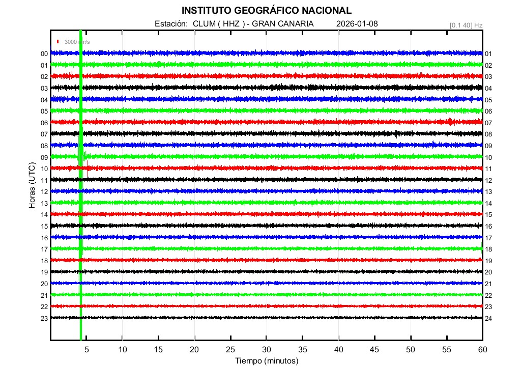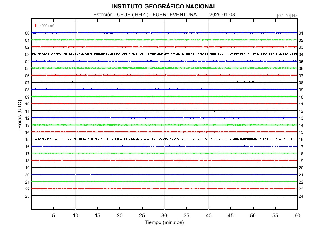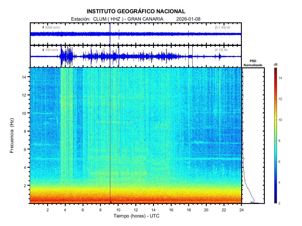 | 2026-01-08 | Forma de Onda (Filtro banda ancha) | Forma de Onda (Filtro corto periodo) | Espectrograma ([0 40] Hz) | Espectrograma ([0 15] Hz) | ||