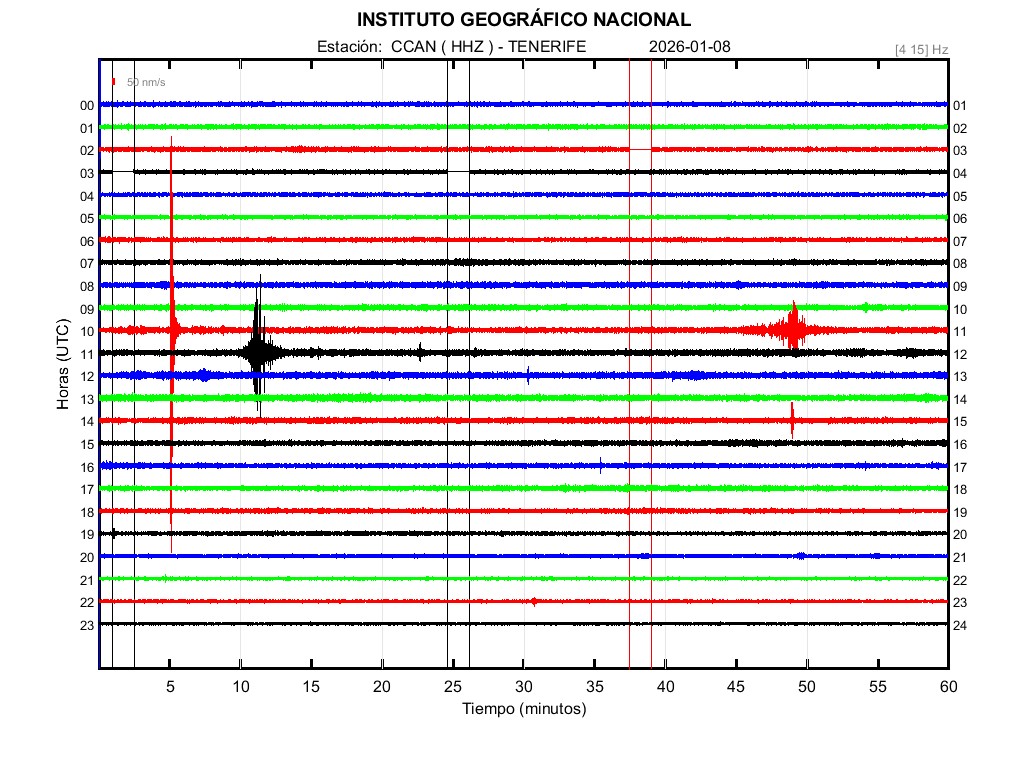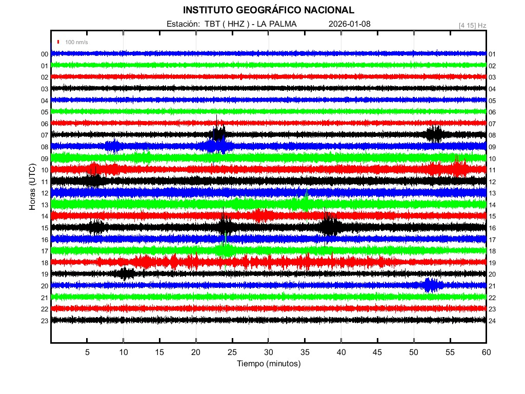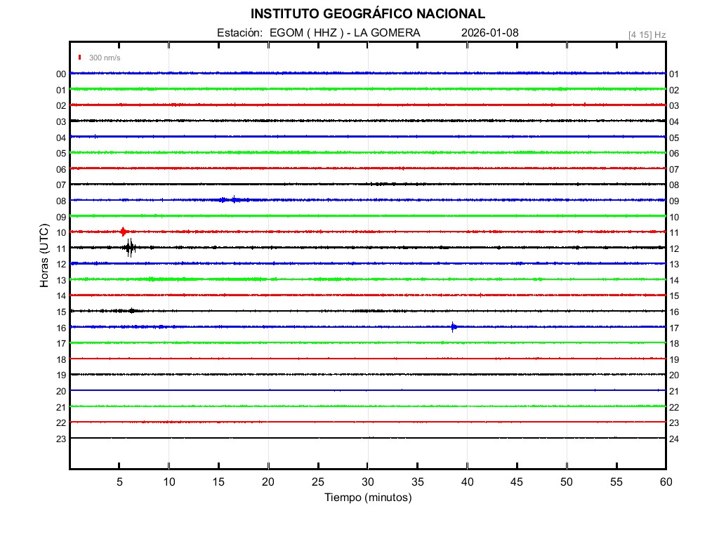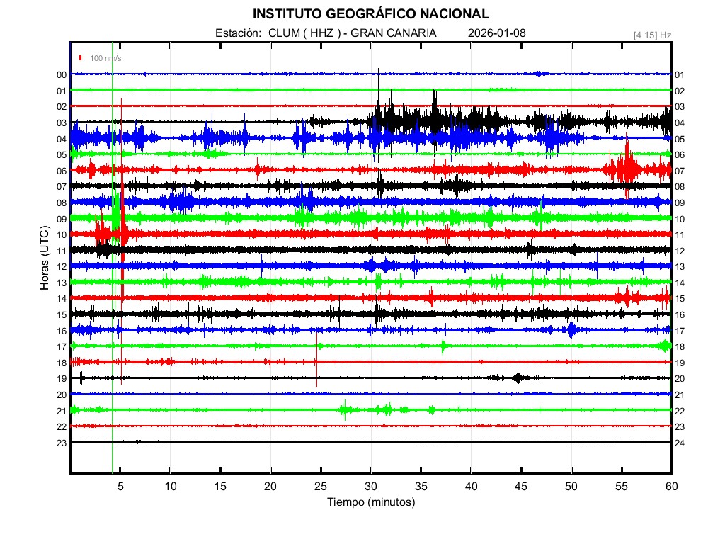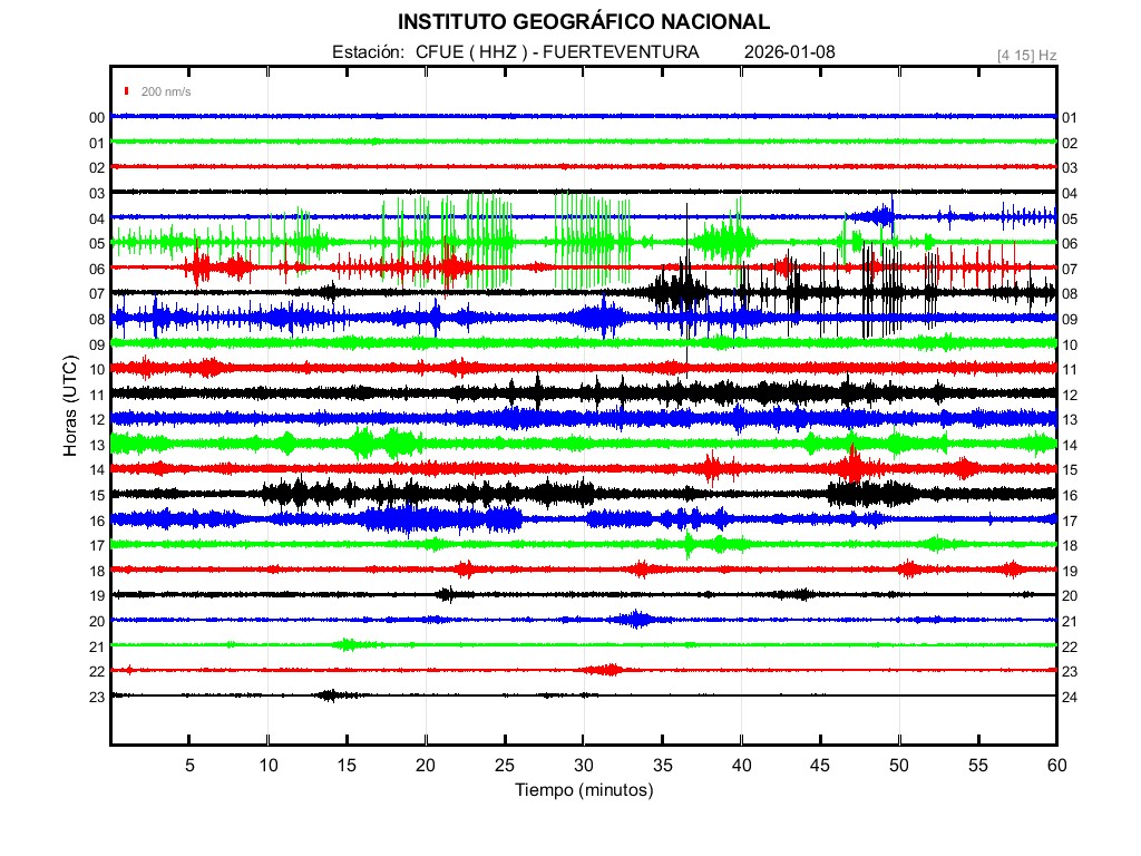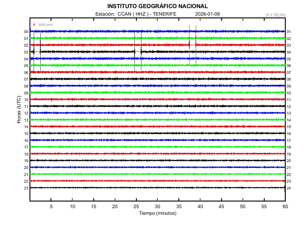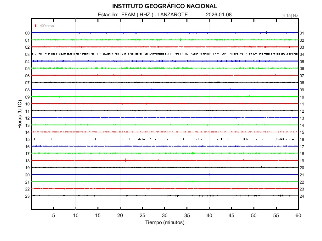 | 2026-01-08 | Forma de Onda (Filtro banda ancha) | Forma de Onda (Filtro corto periodo) | Espectrograma ([0 40] Hz) | Espectrograma ([0 15] Hz) | ||
