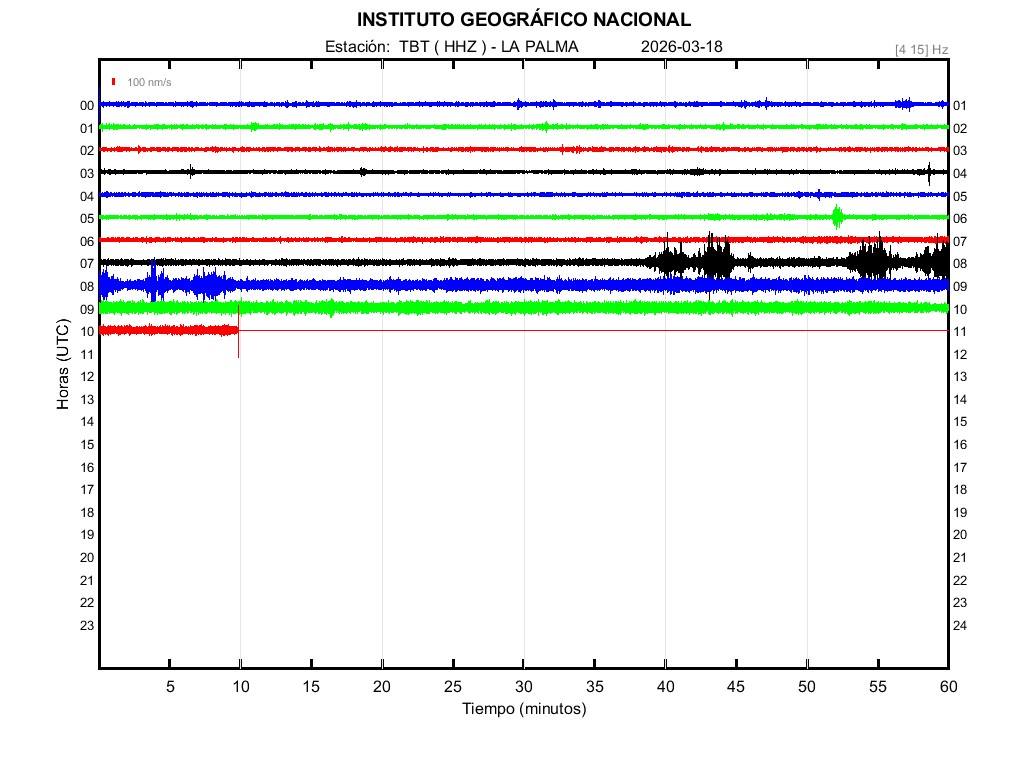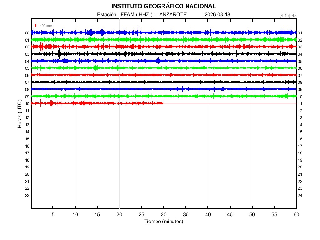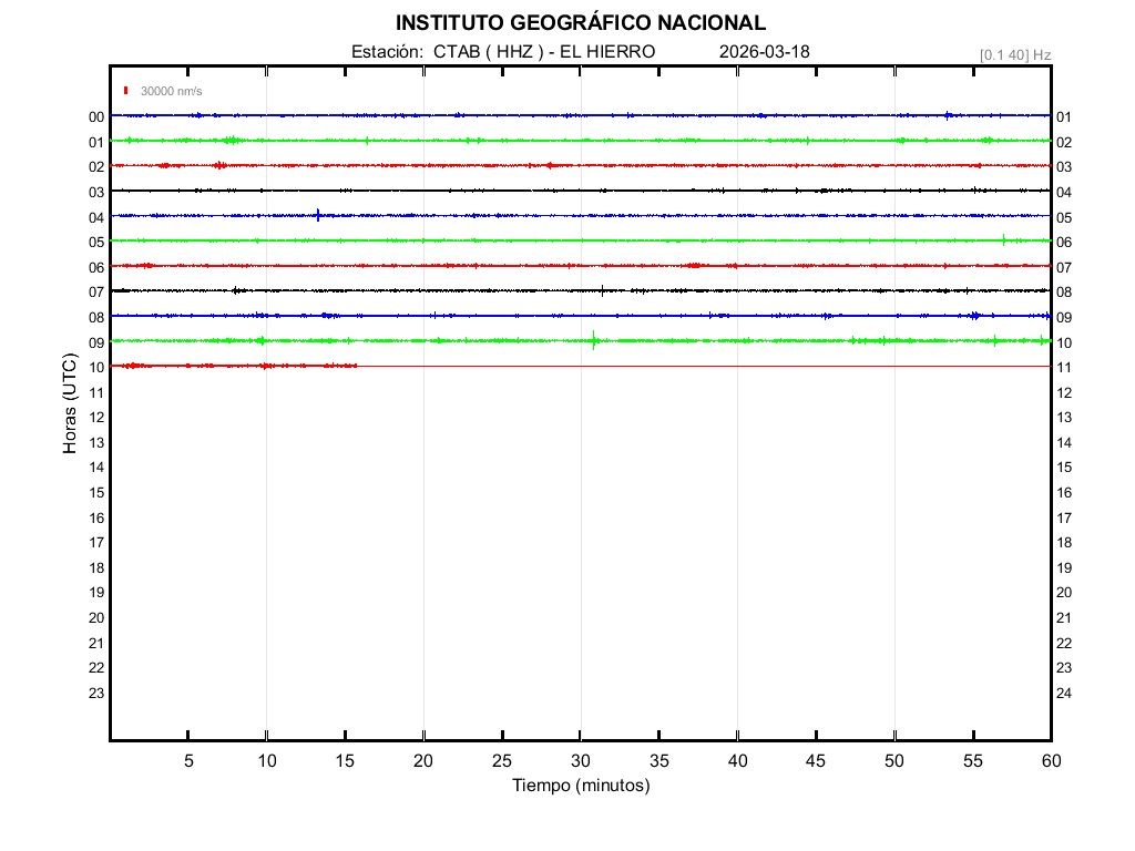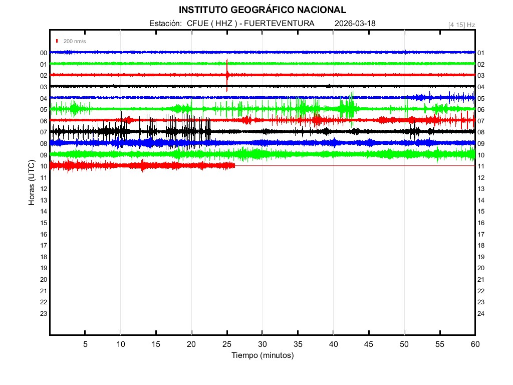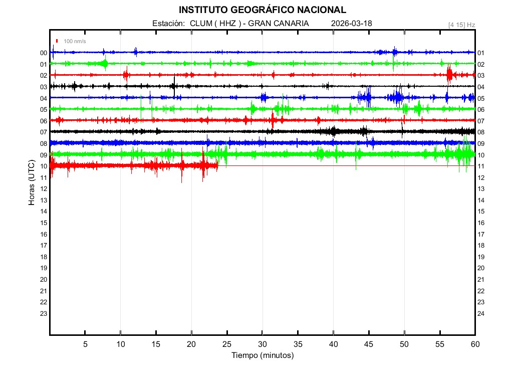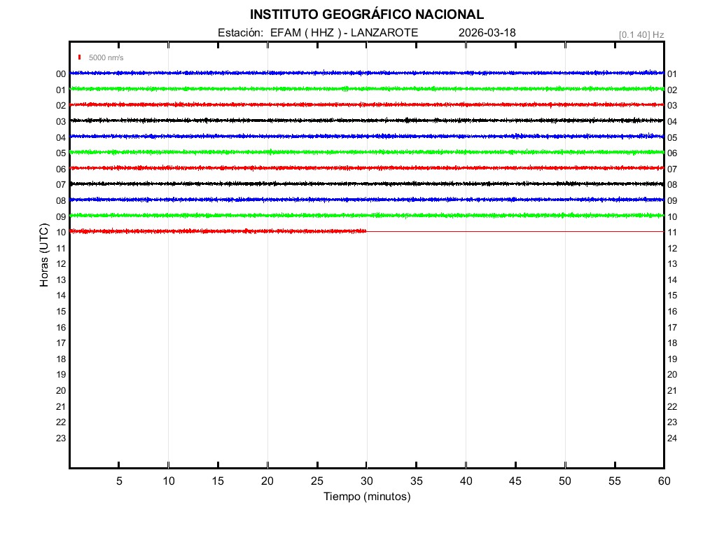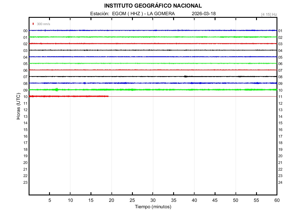 | 2026-03-18 | Forma de Onda (Filtro banda ancha) | Forma de Onda (Filtro corto periodo) | Espectrograma ([0 40] Hz) | Espectrograma ([0 15] Hz) | ||