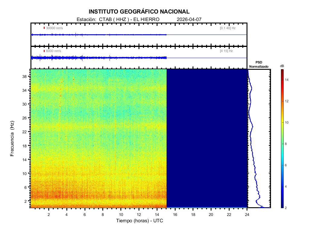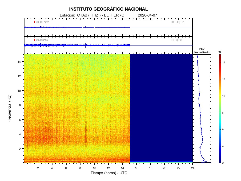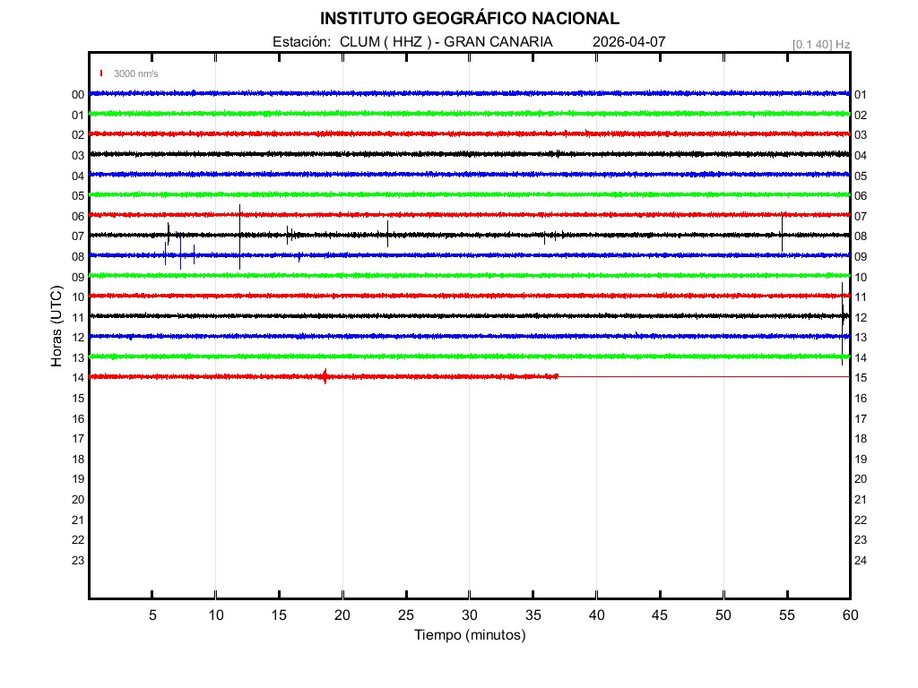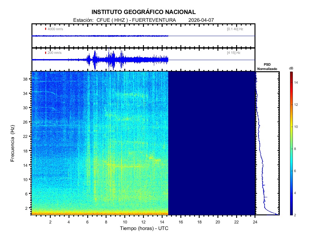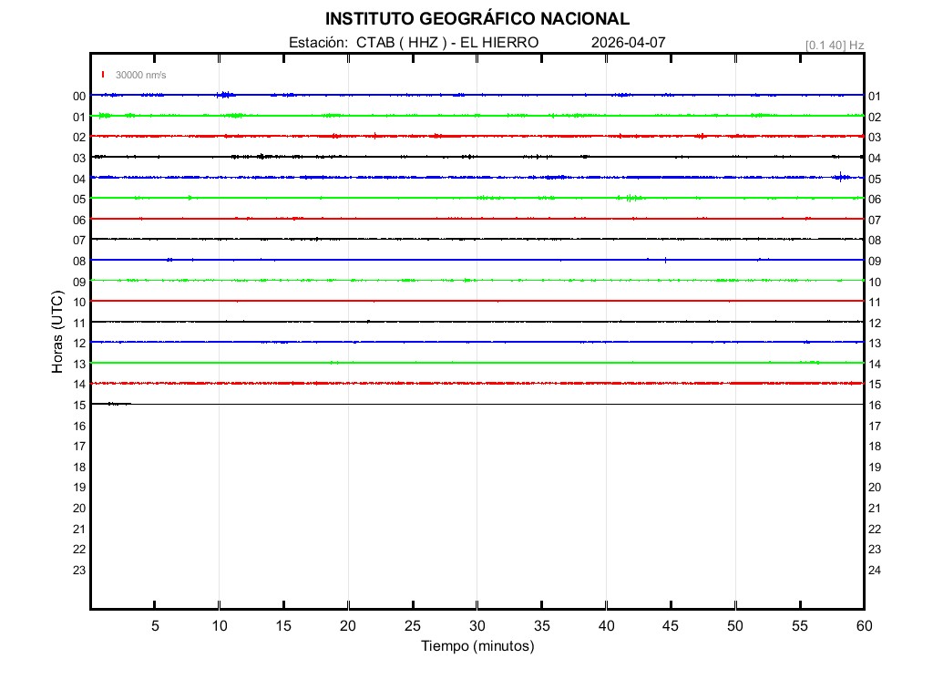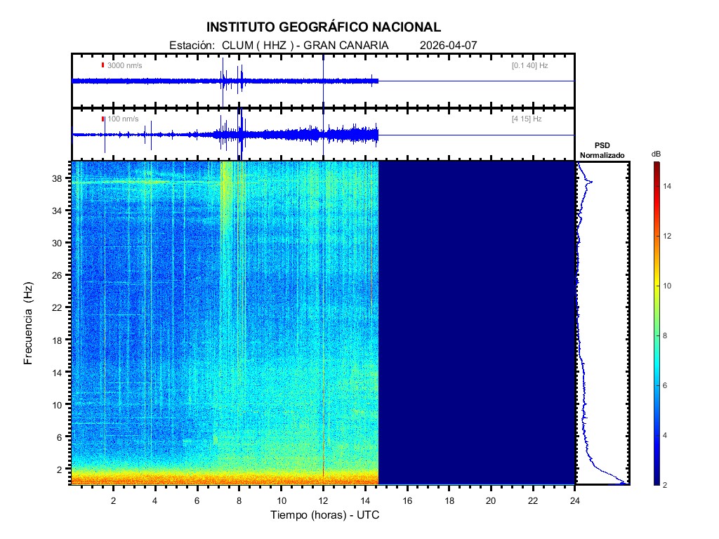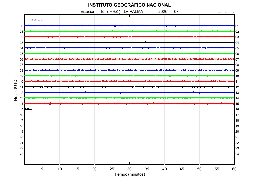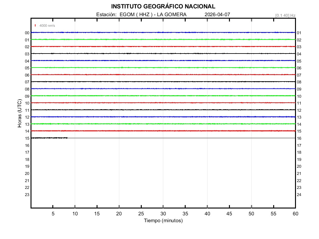 | 2026-04-07 | Forma de Onda (Filtro banda ancha) | Forma de Onda (Filtro corto periodo) | Espectrograma ([0 40] Hz) | Espectrograma ([0 15] Hz) | ||