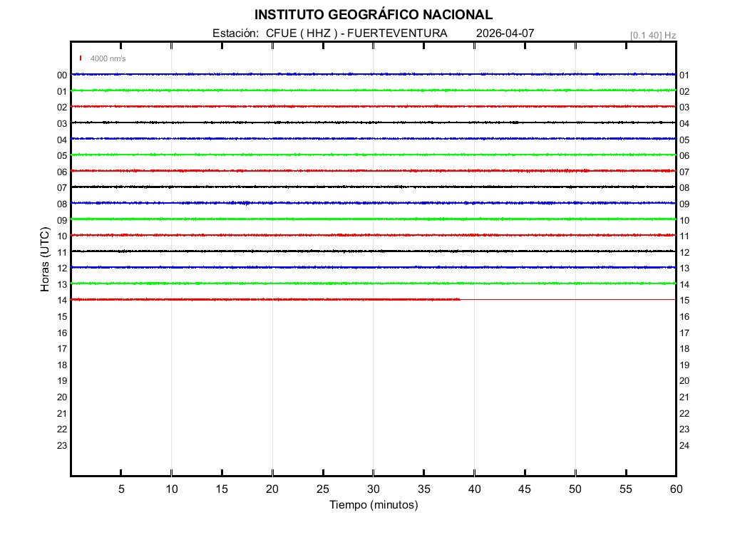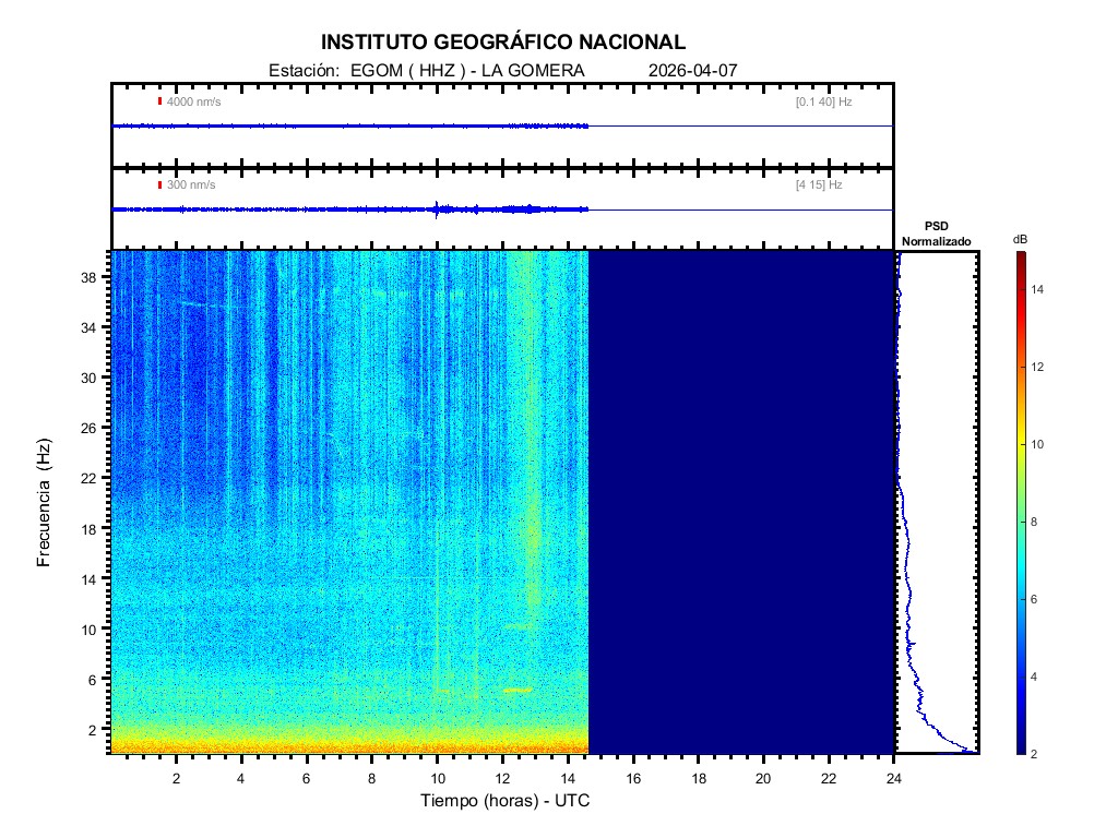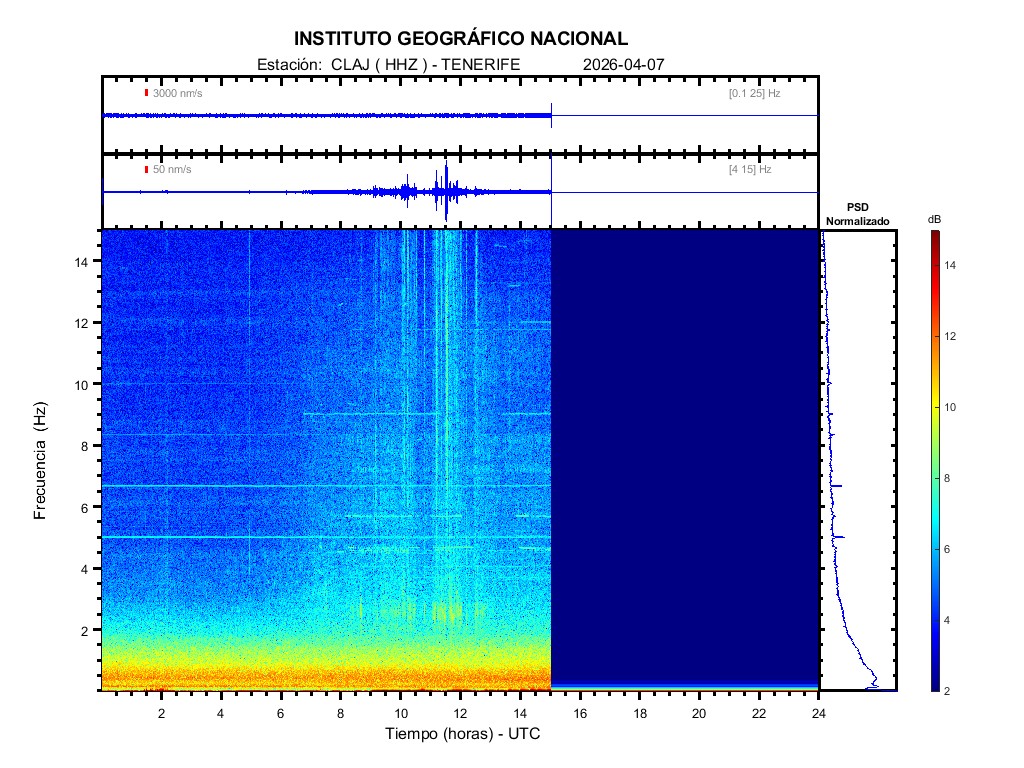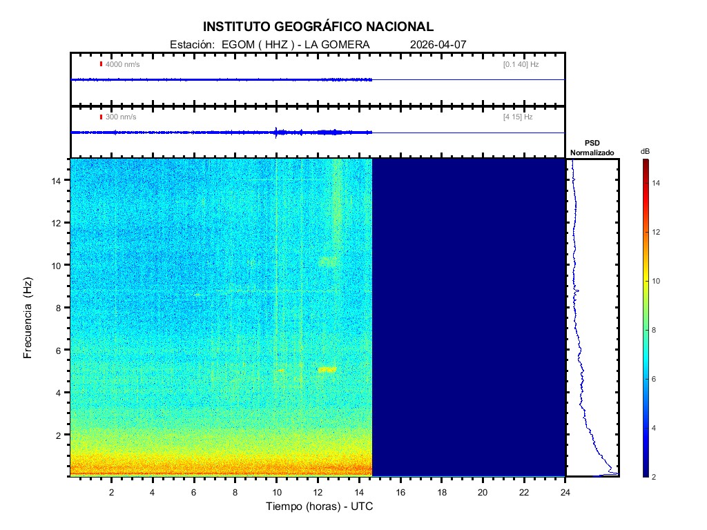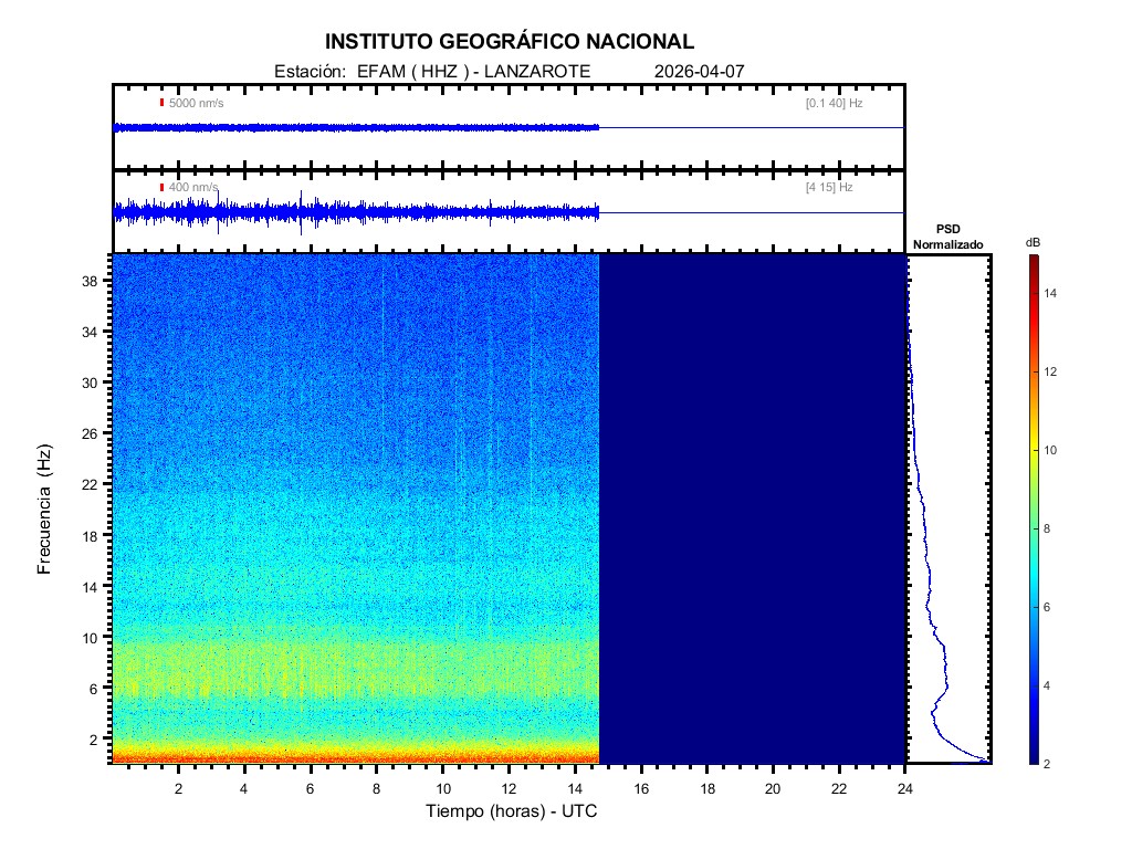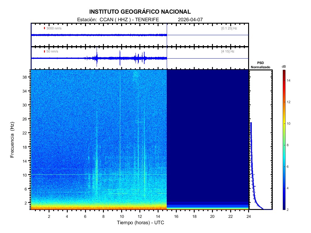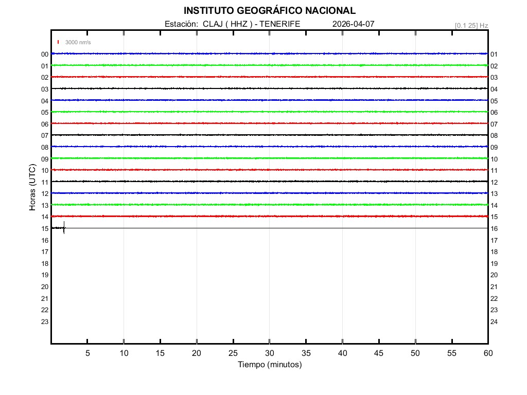 | 2026-04-07 | Forma de Onda (Filtro banda ancha) | Forma de Onda (Filtro corto periodo) | Espectrograma ([0 40] Hz) | Espectrograma ([0 15] Hz) | ||