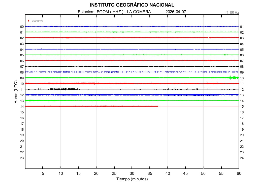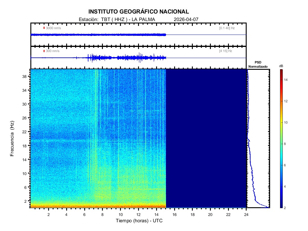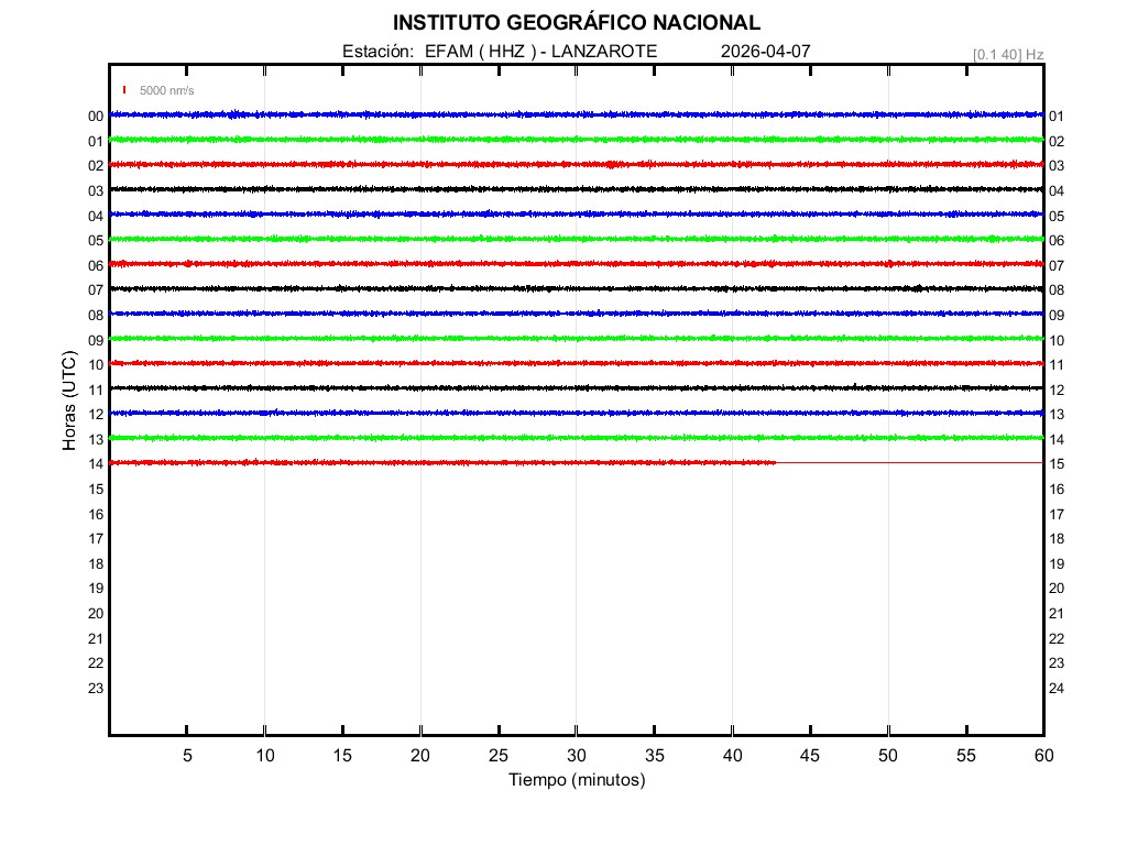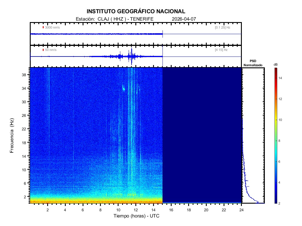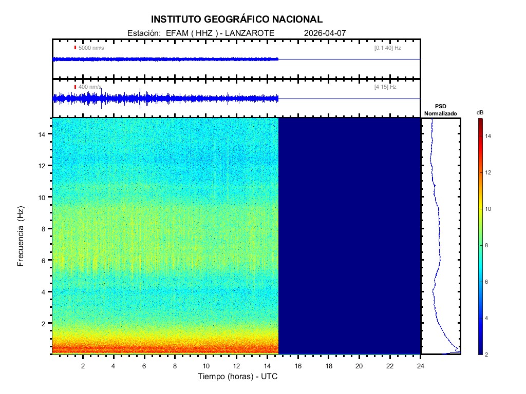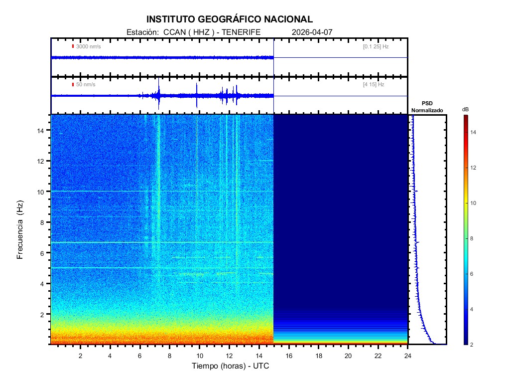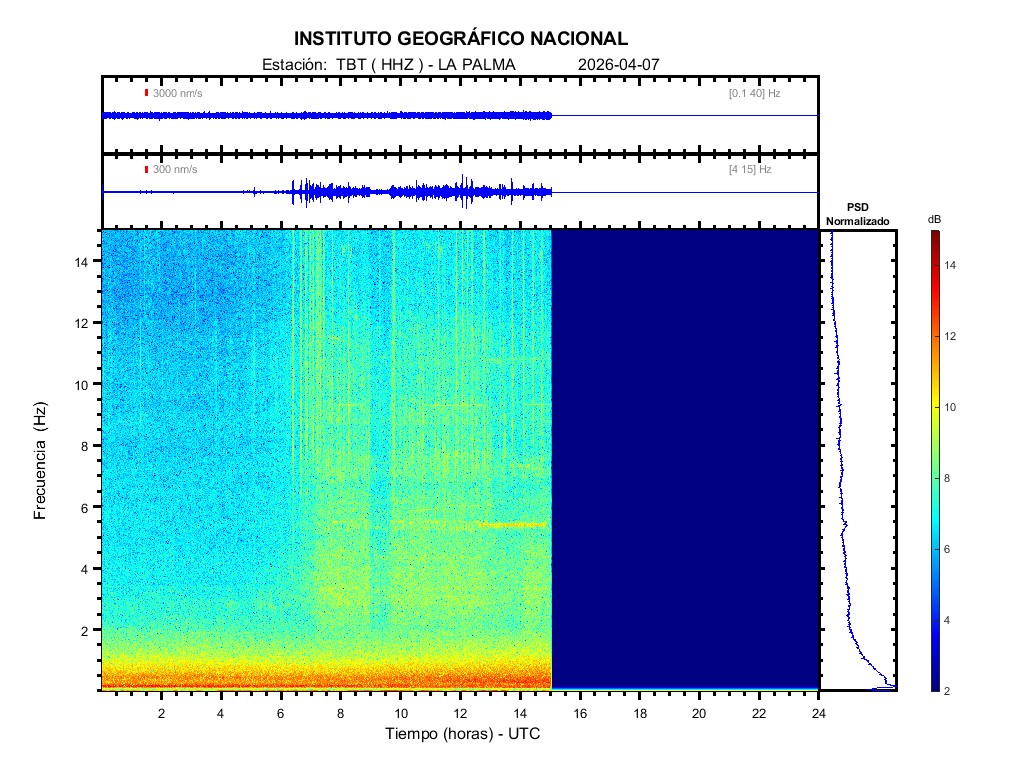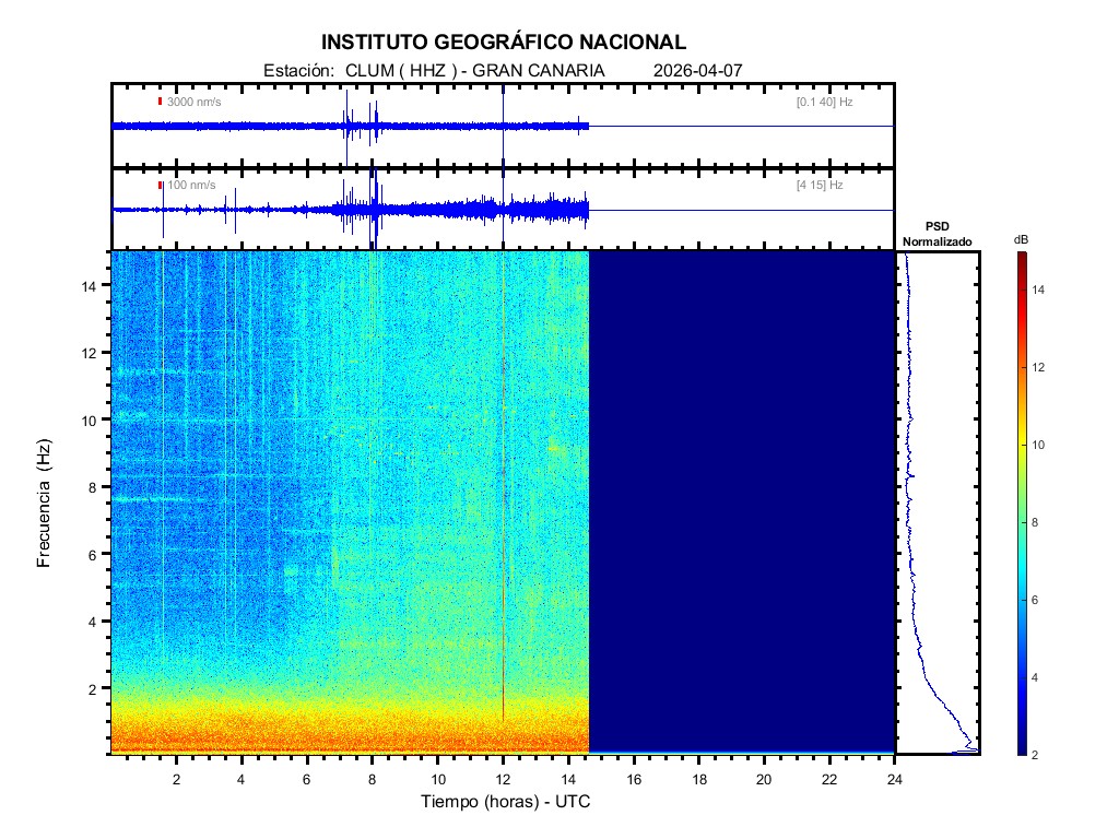 | 2026-04-07 | Forma de Onda (Filtro banda ancha) | Forma de Onda (Filtro corto periodo) | Espectrograma ([0 40] Hz) | Espectrograma ([0 15] Hz) | ||