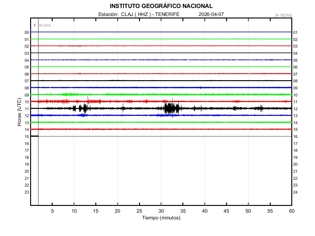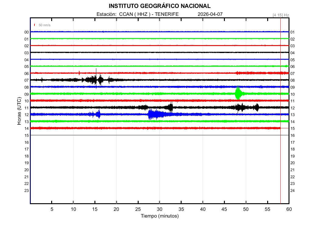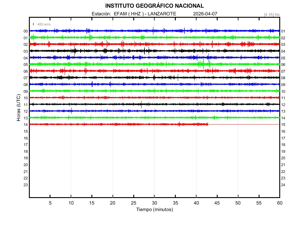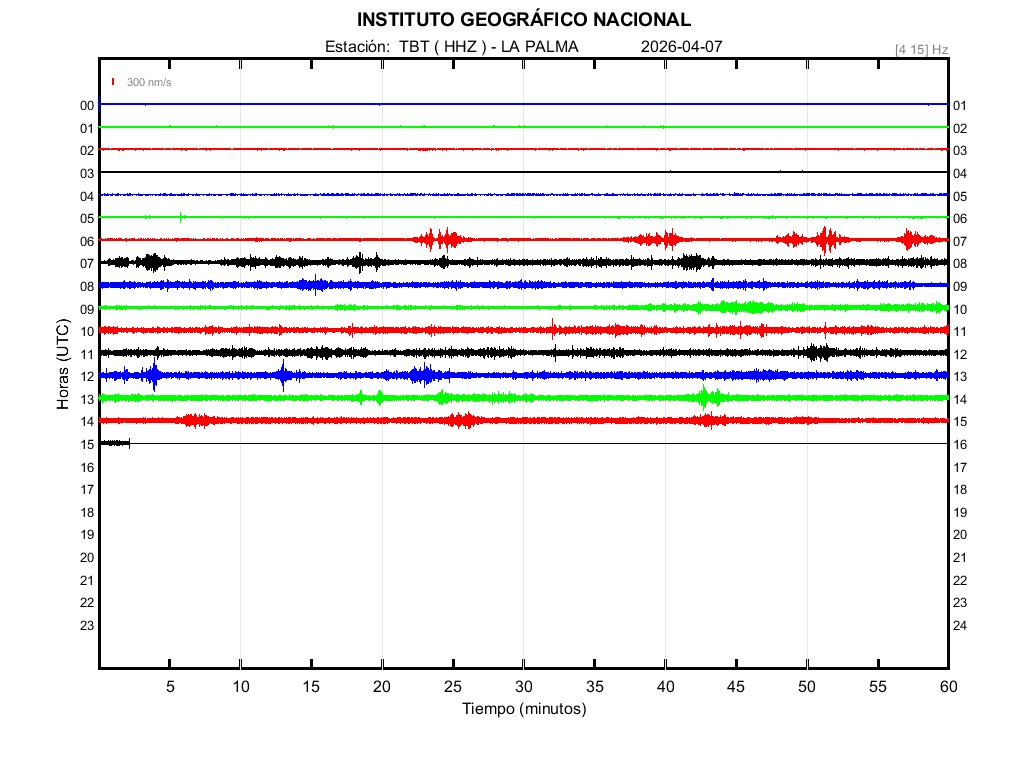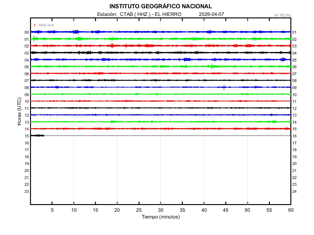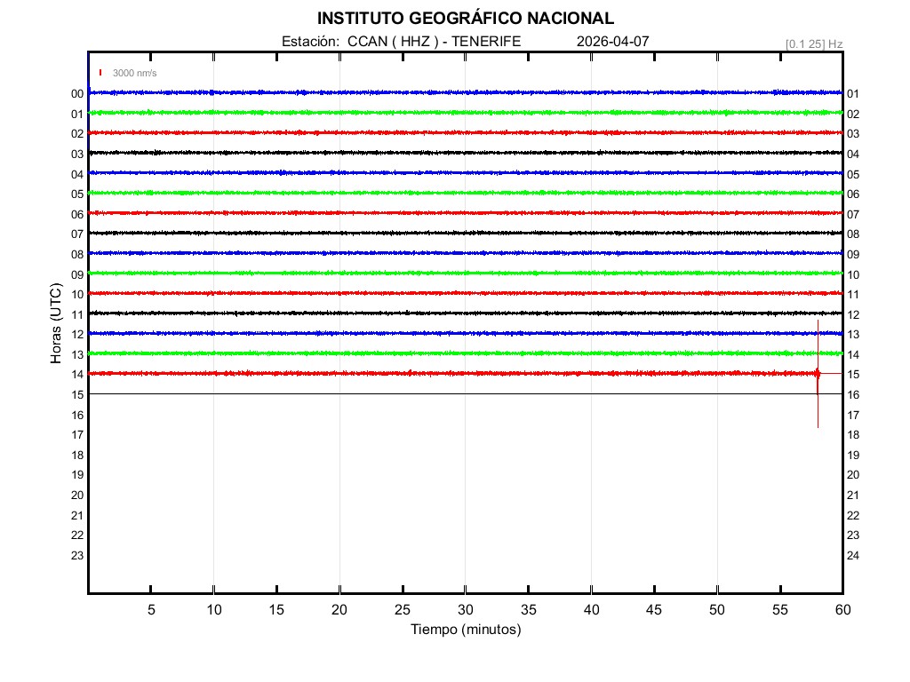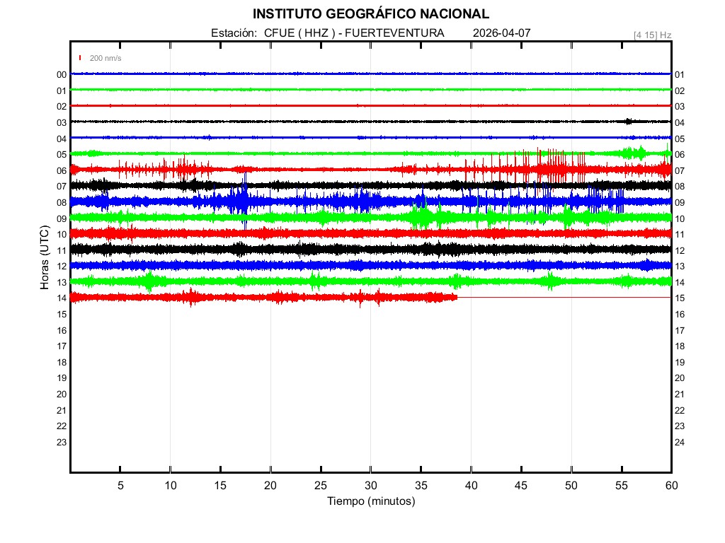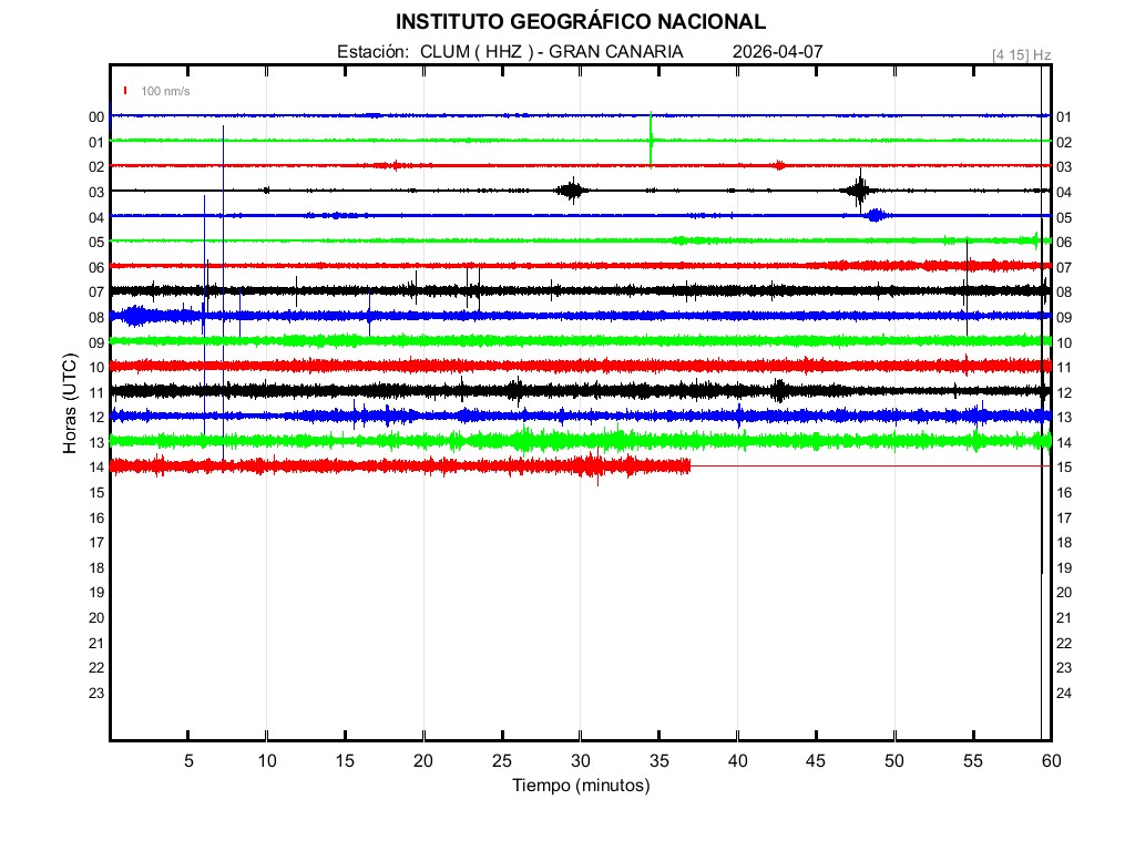 | 2026-04-07 | Forma de Onda (Filtro banda ancha) | Forma de Onda (Filtro corto periodo) | Espectrograma ([0 40] Hz) | Espectrograma ([0 15] Hz) | ||