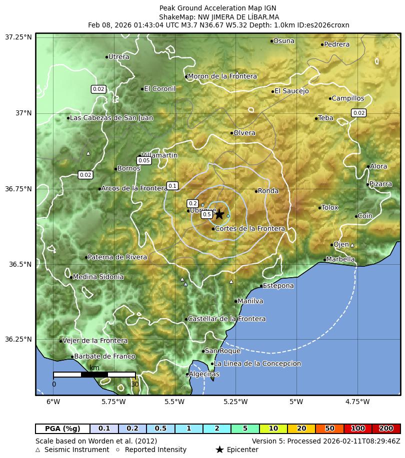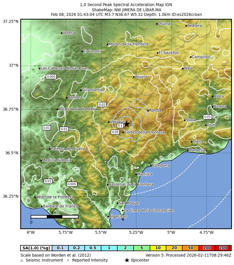 | es2026croxn | 08/02/2026 | 01:43:04 | 02:43:04 | 36.6659 | -5.3185 | 1.0 | 3.7 | Mw | NW JIMERA DE LÍBAR.MA |