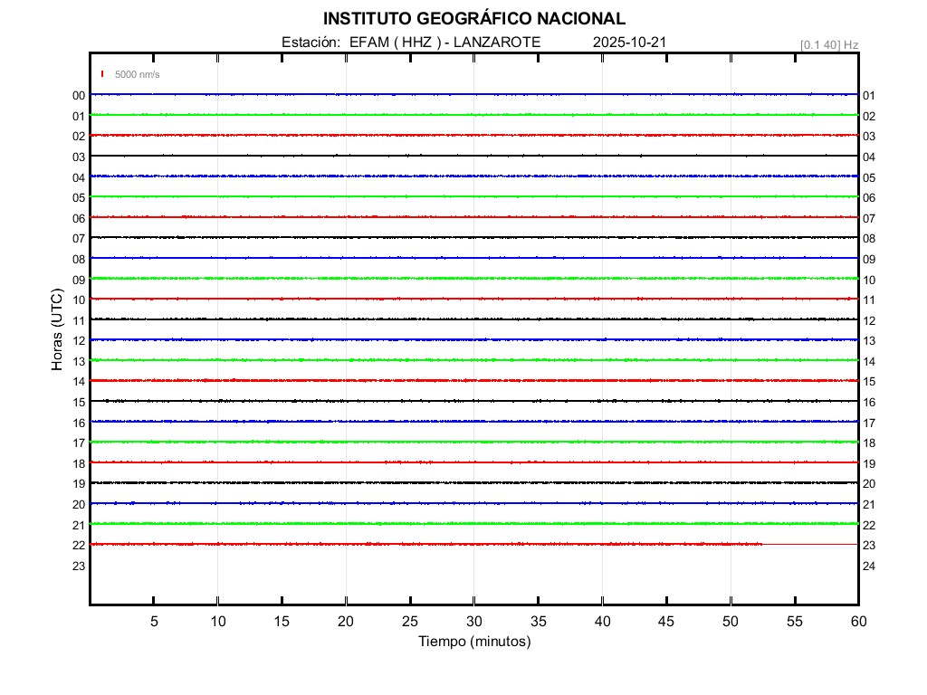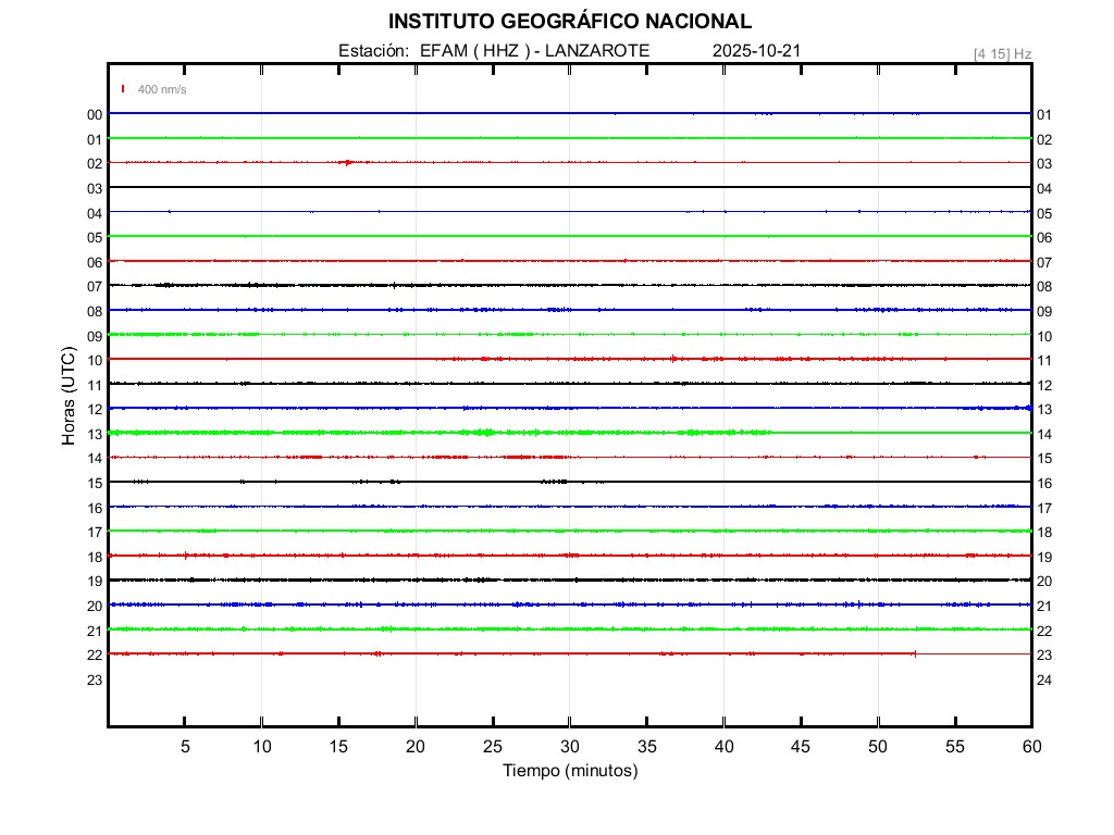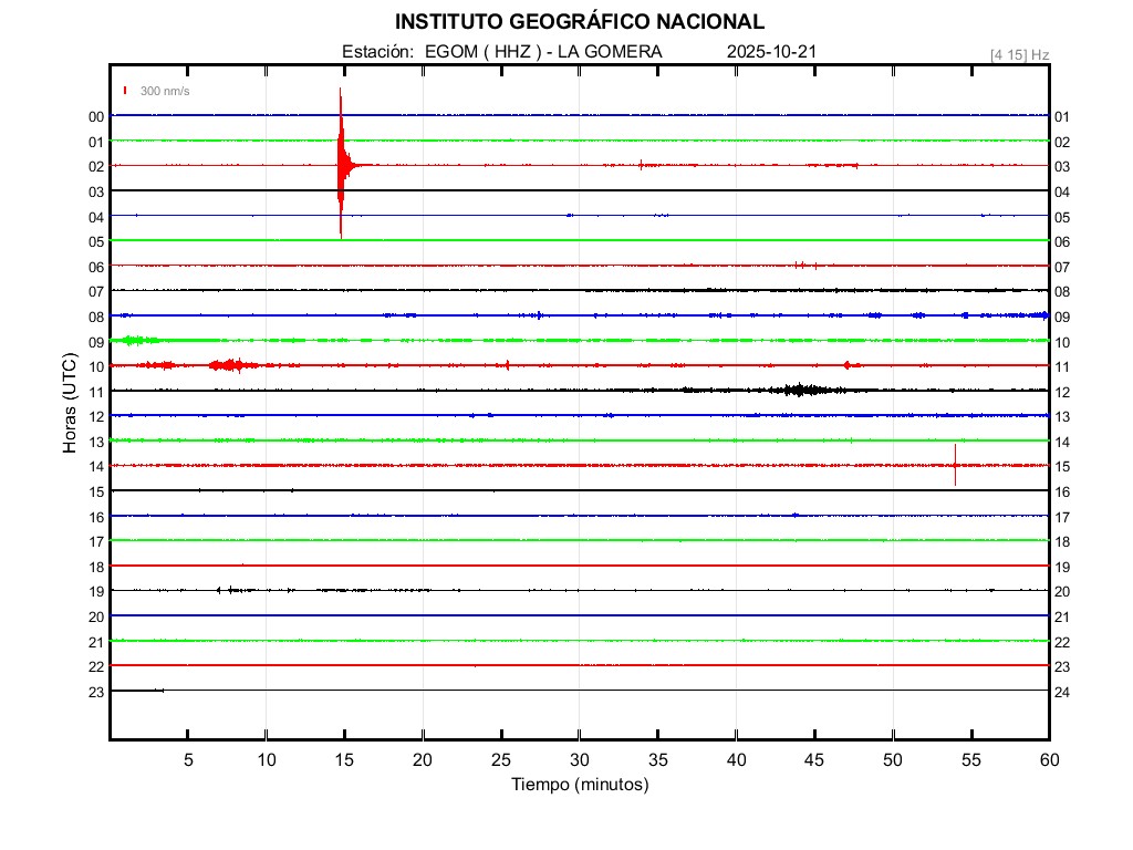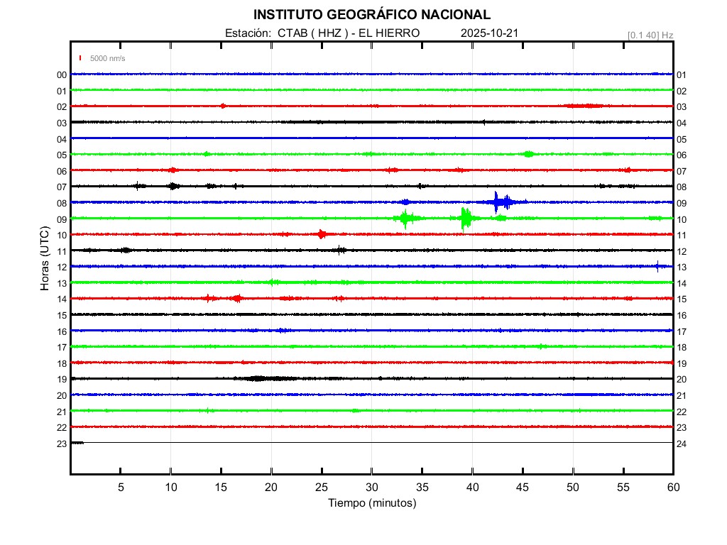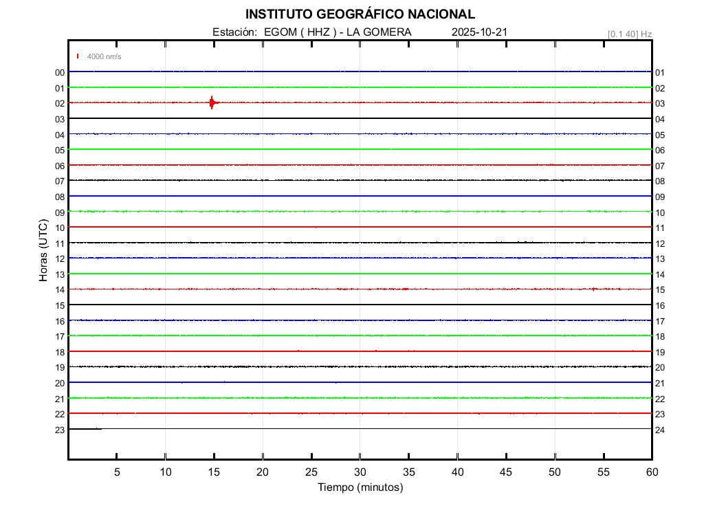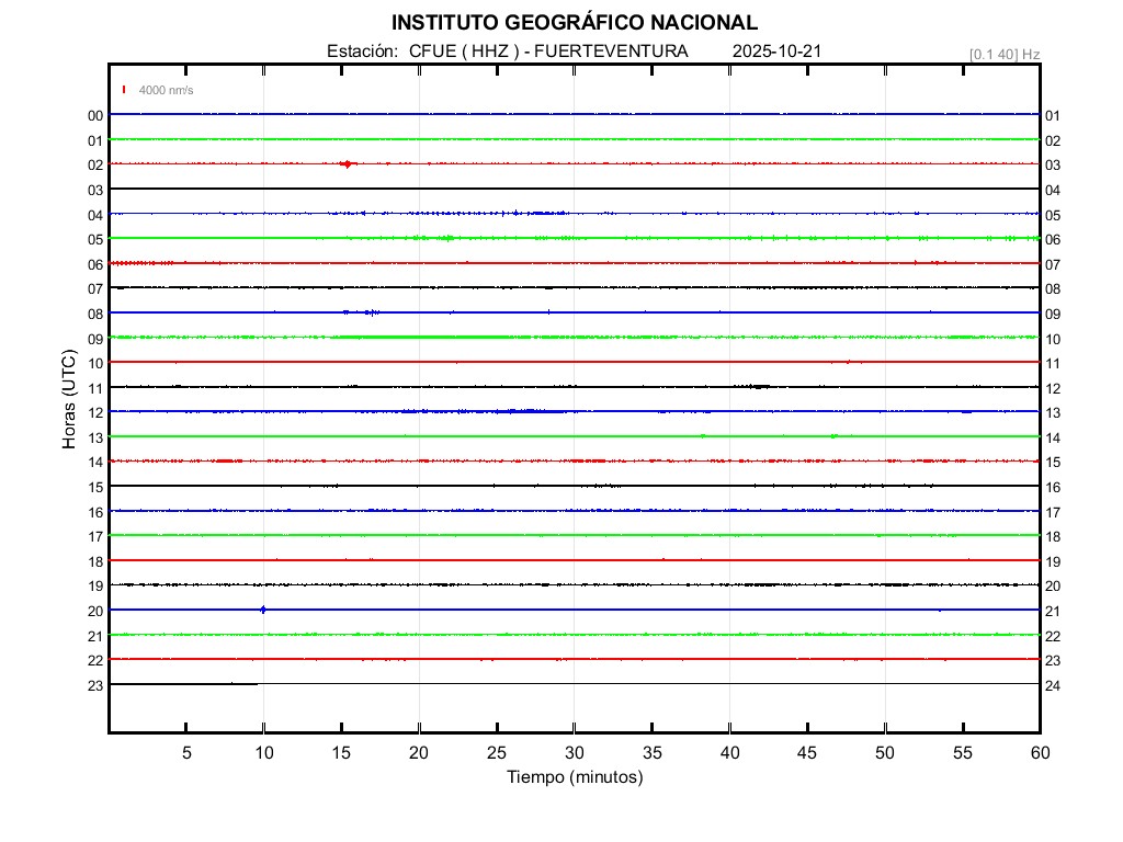 2025-10-21 | Forma de Onda (Filtro banda ancha) | Forma de Onda (Filtro corto periodo) | Espectrograma ([0 40] Hz) | Espectrograma ([0 15] Hz) | ||