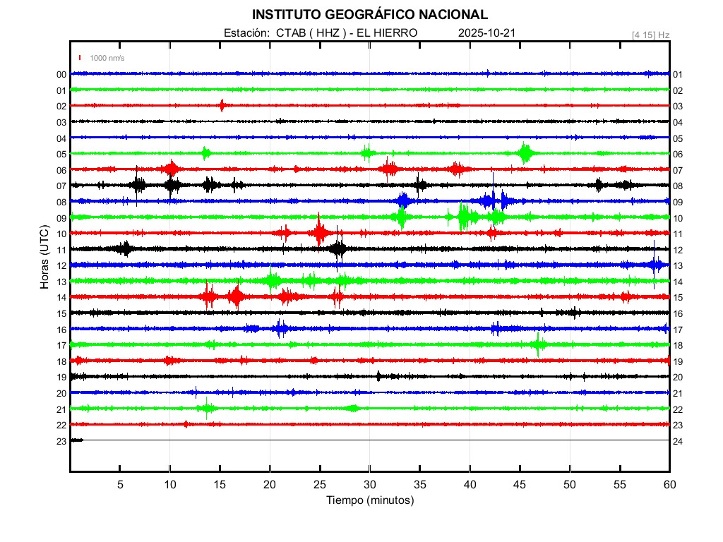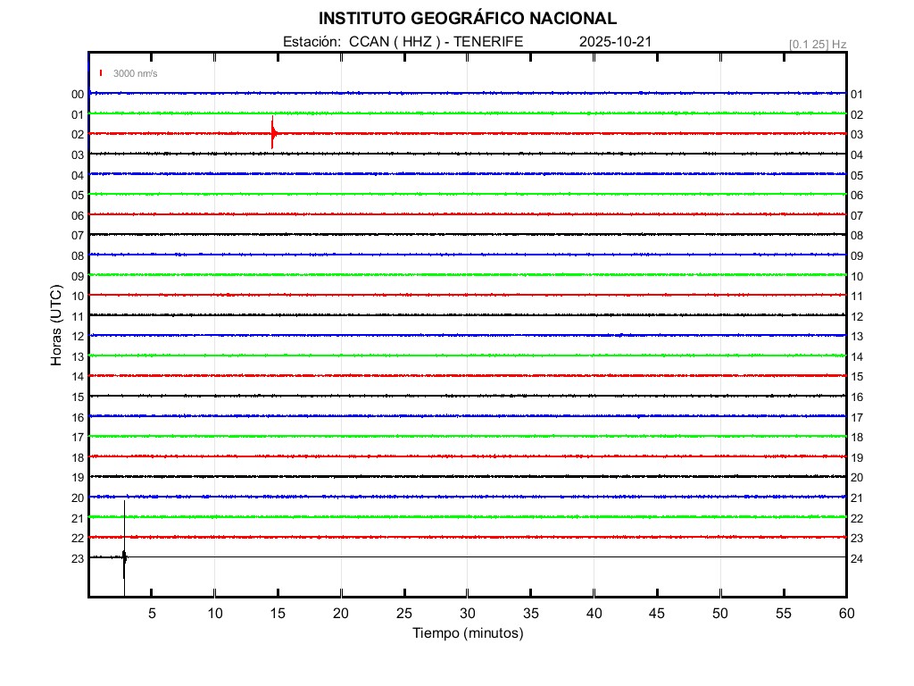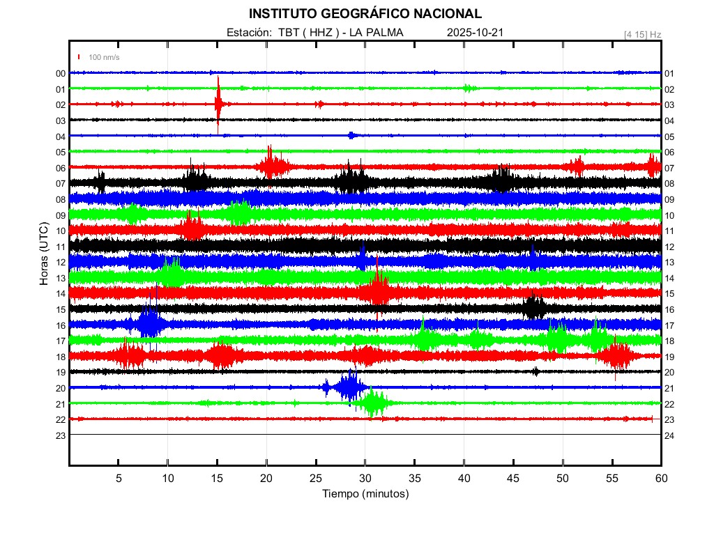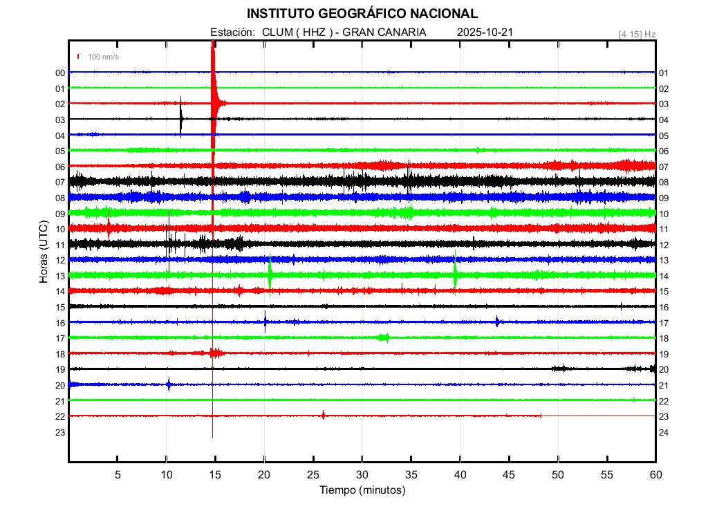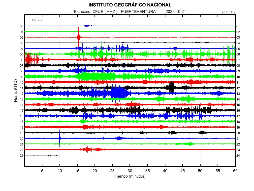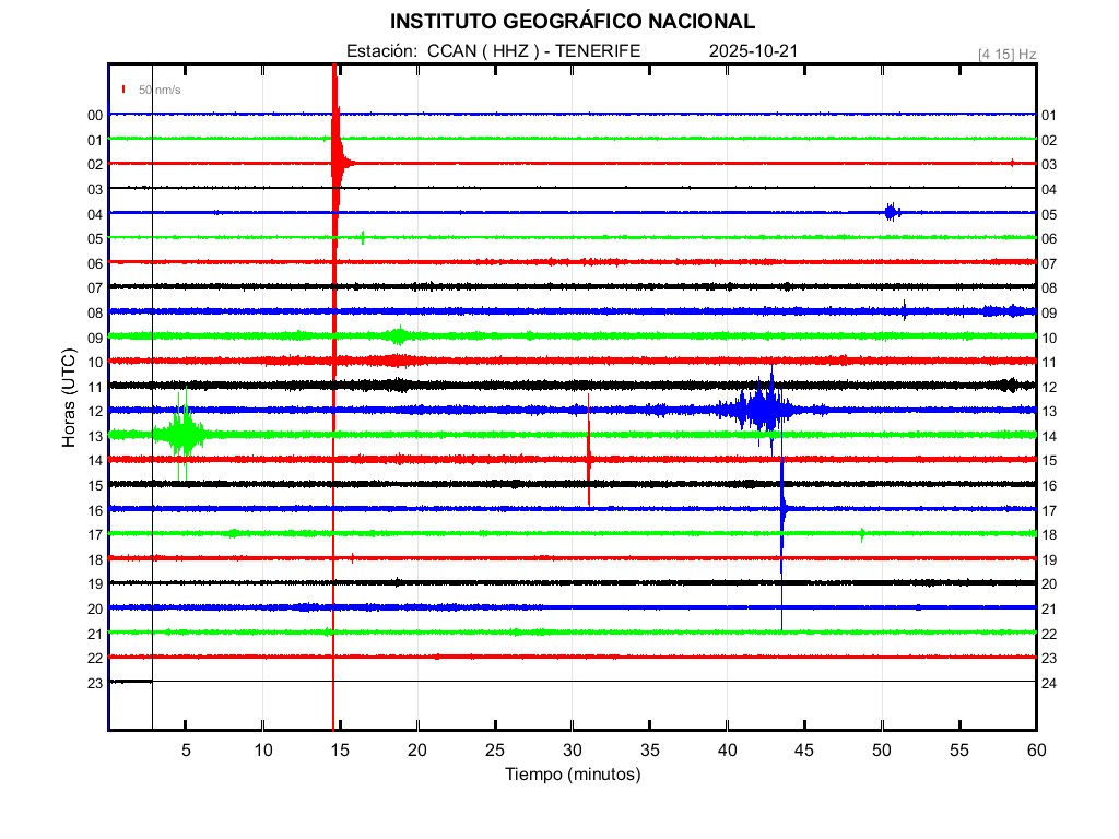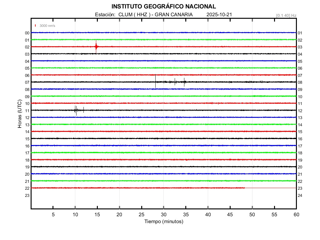 2025-10-21 | Forma de Onda (Filtro banda ancha) | Forma de Onda (Filtro corto periodo) | Espectrograma ([0 40] Hz) | Espectrograma ([0 15] Hz) | ||