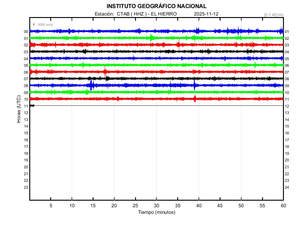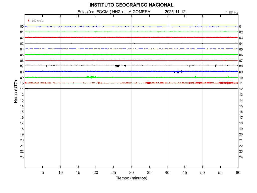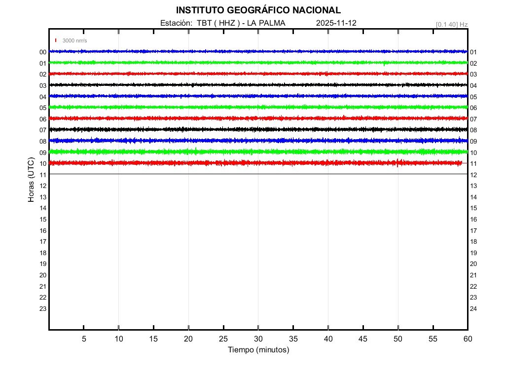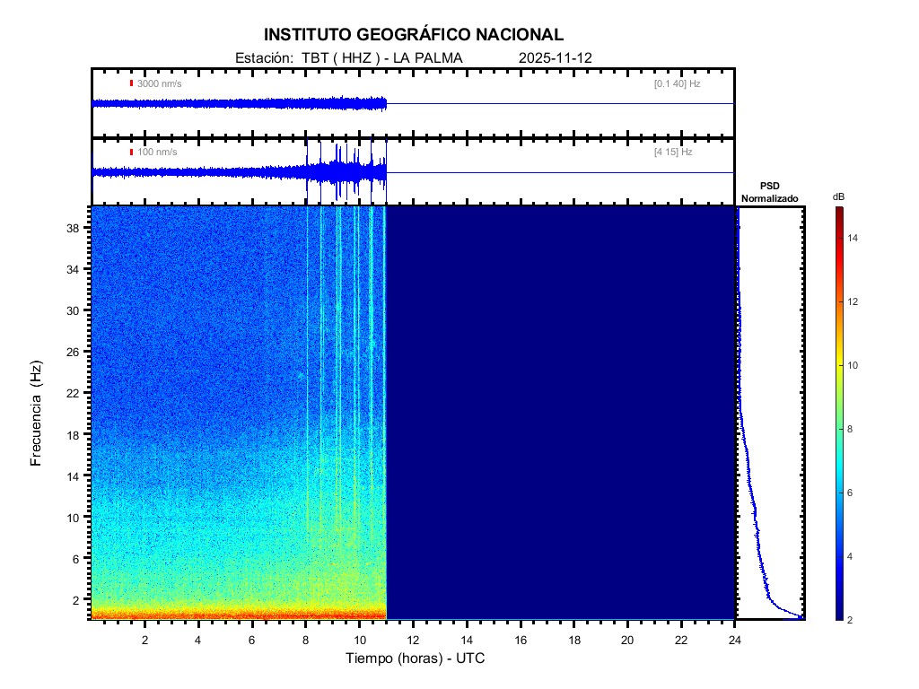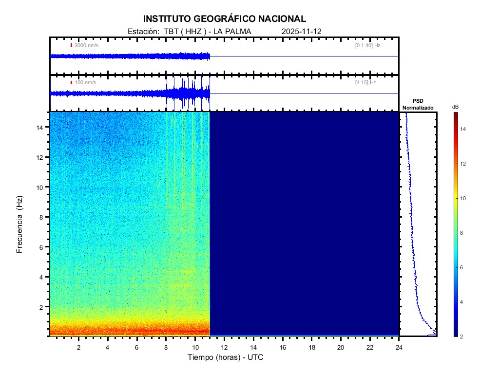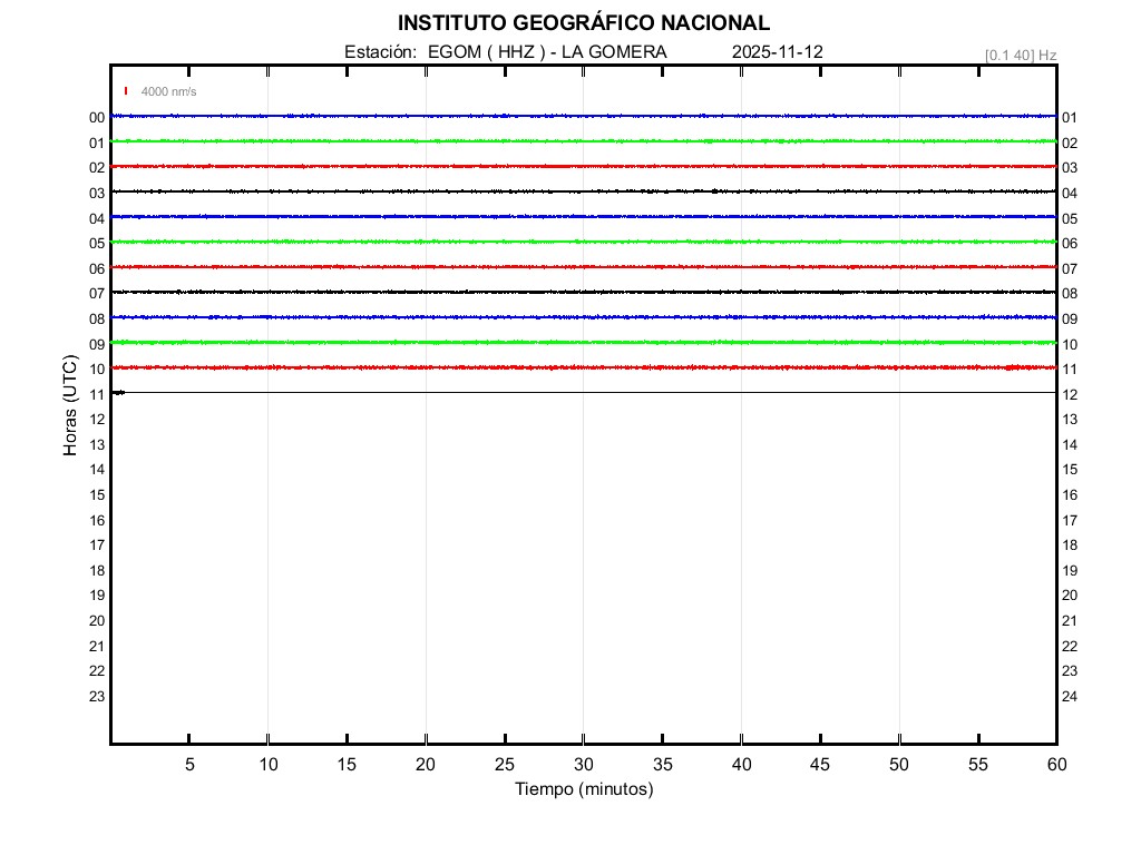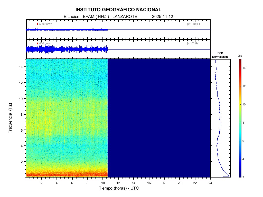| 2025-11-12 | Forma de Onda (Filtro banda ancha) | Forma de Onda (Filtro corto periodo) | Espectrograma ([0 40] Hz) | Espectrograma ([0 15] Hz) | ||