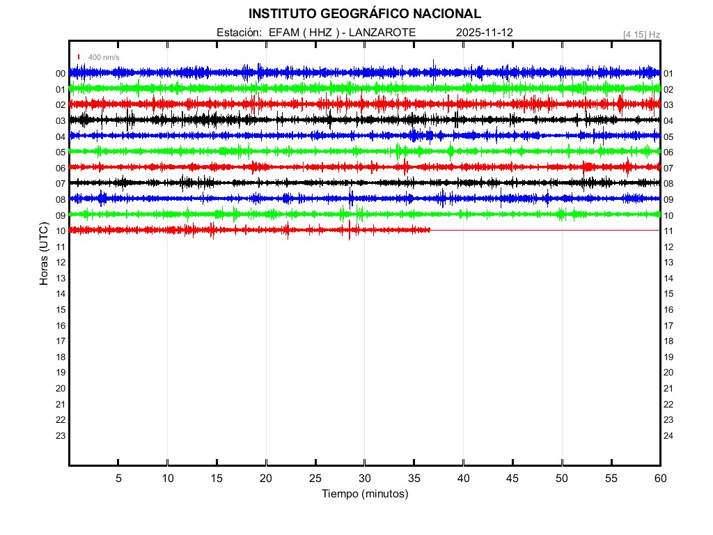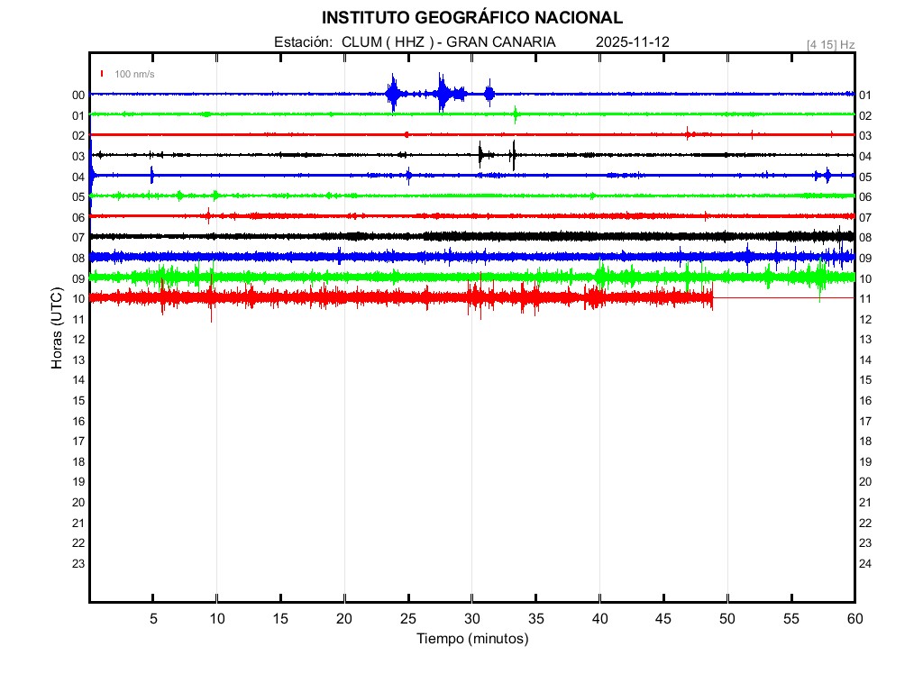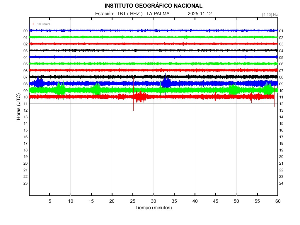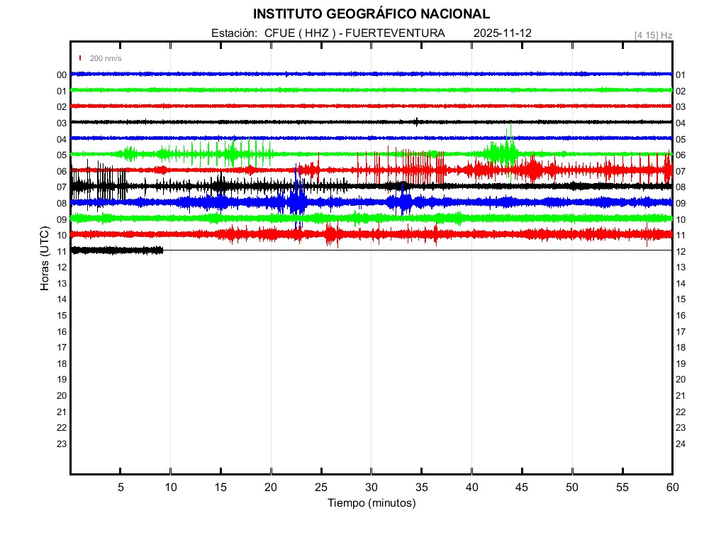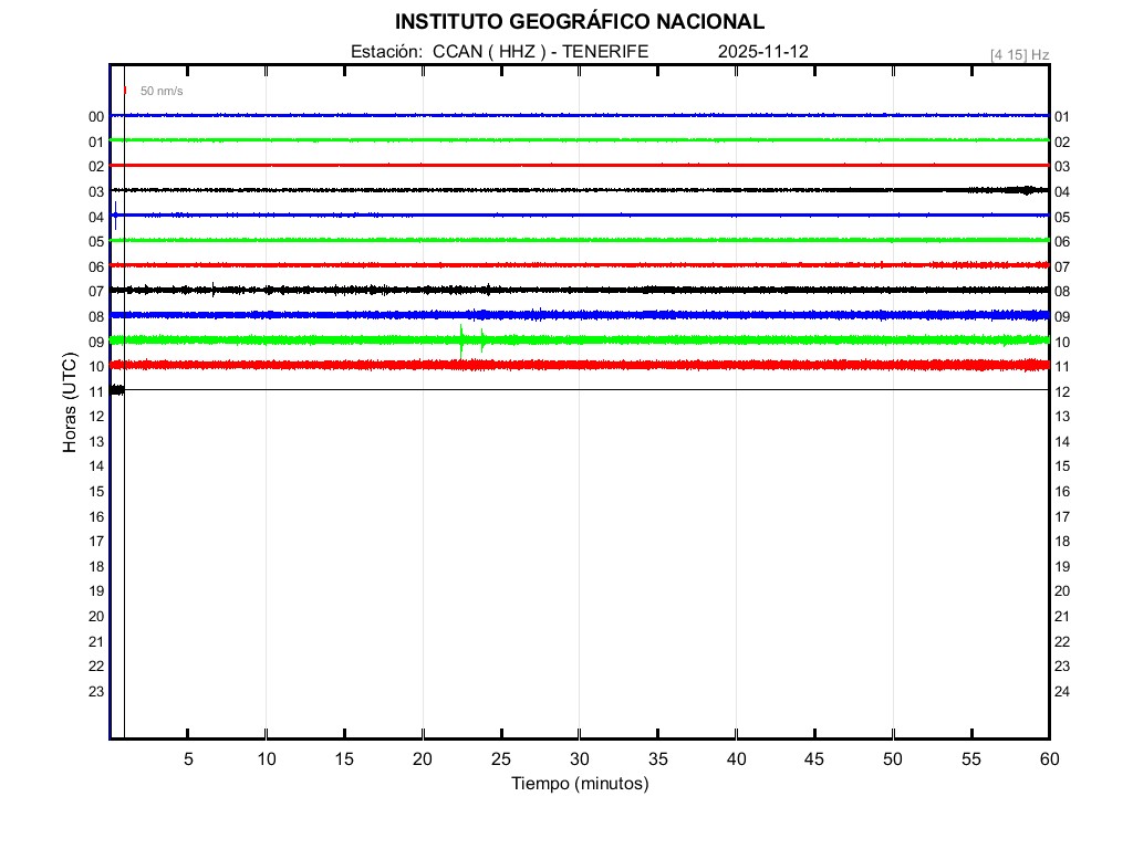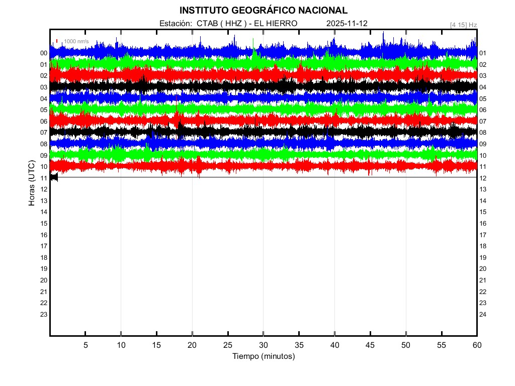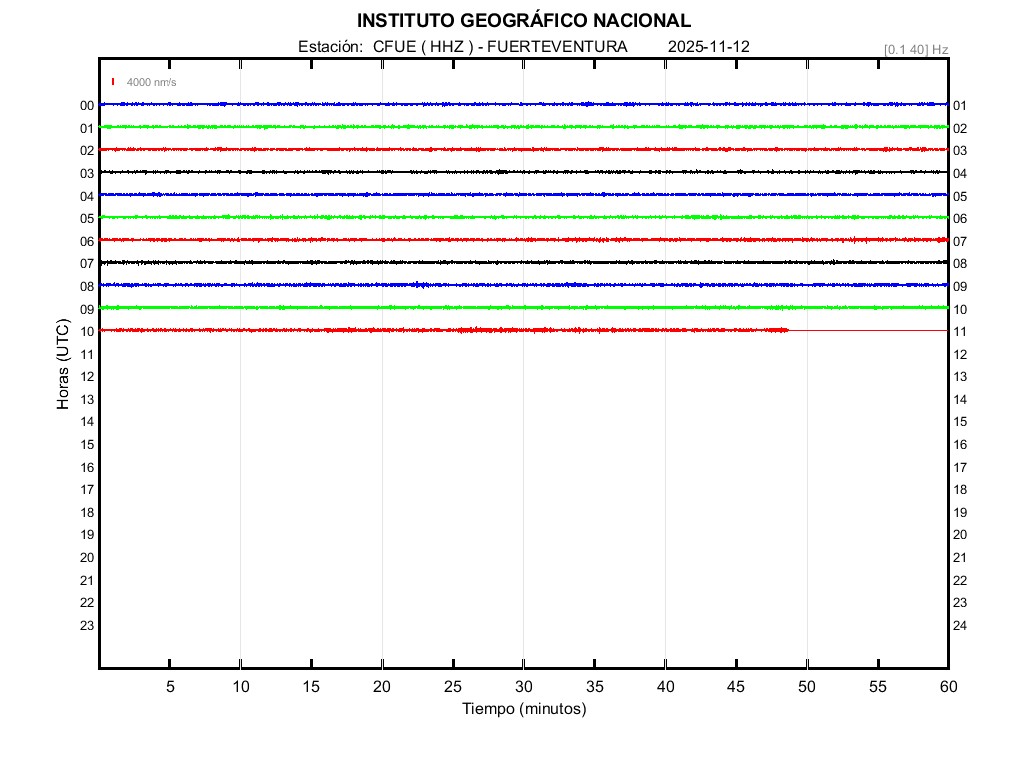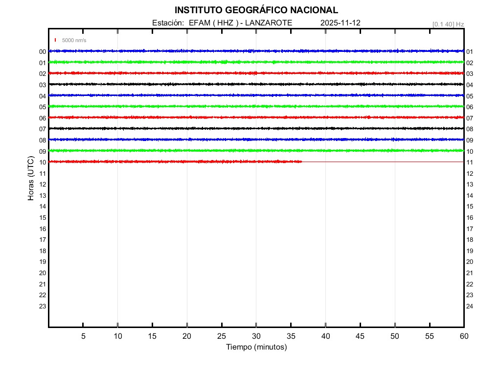 | 2025-11-12 | Forma de Onda (Filtro banda ancha) | Forma de Onda (Filtro corto periodo) | Espectrograma ([0 40] Hz) | Espectrograma ([0 15] Hz) | ||