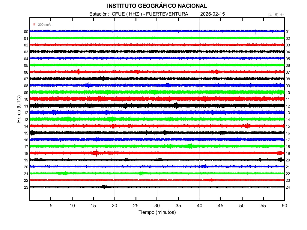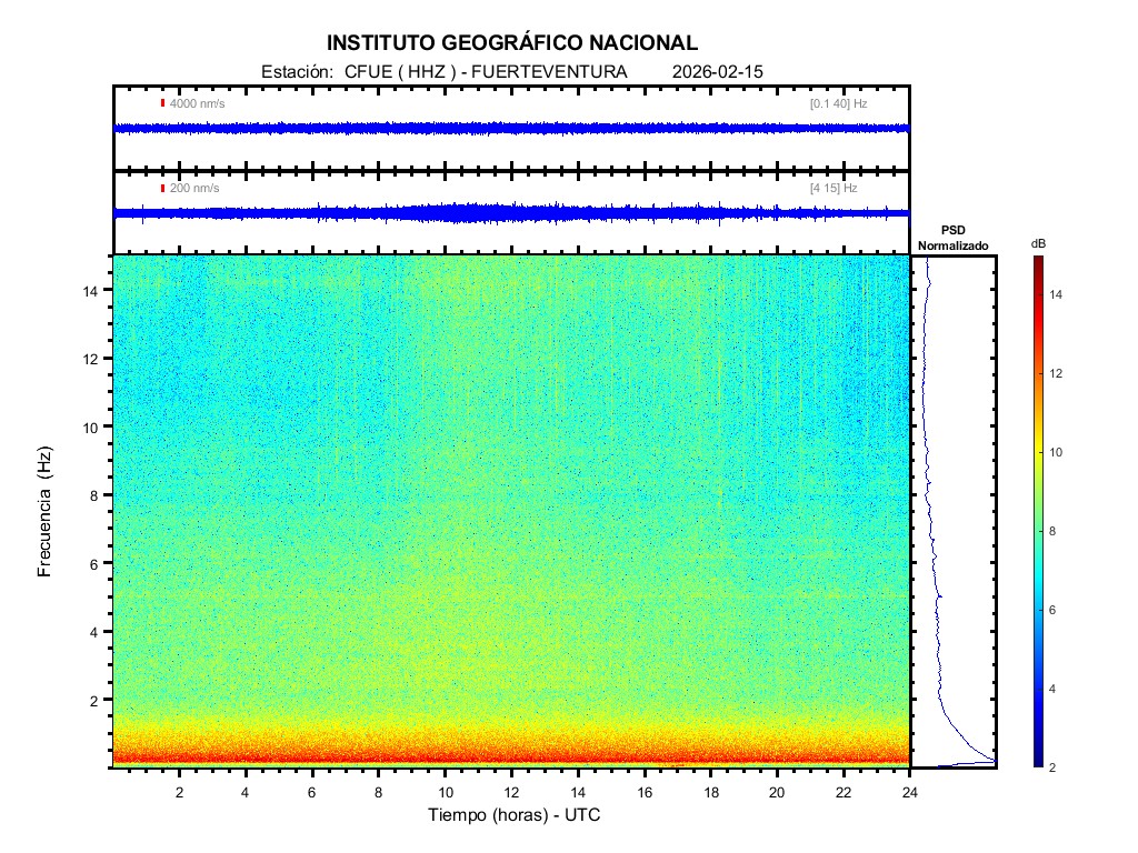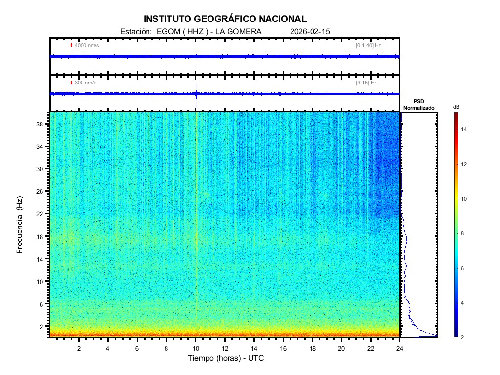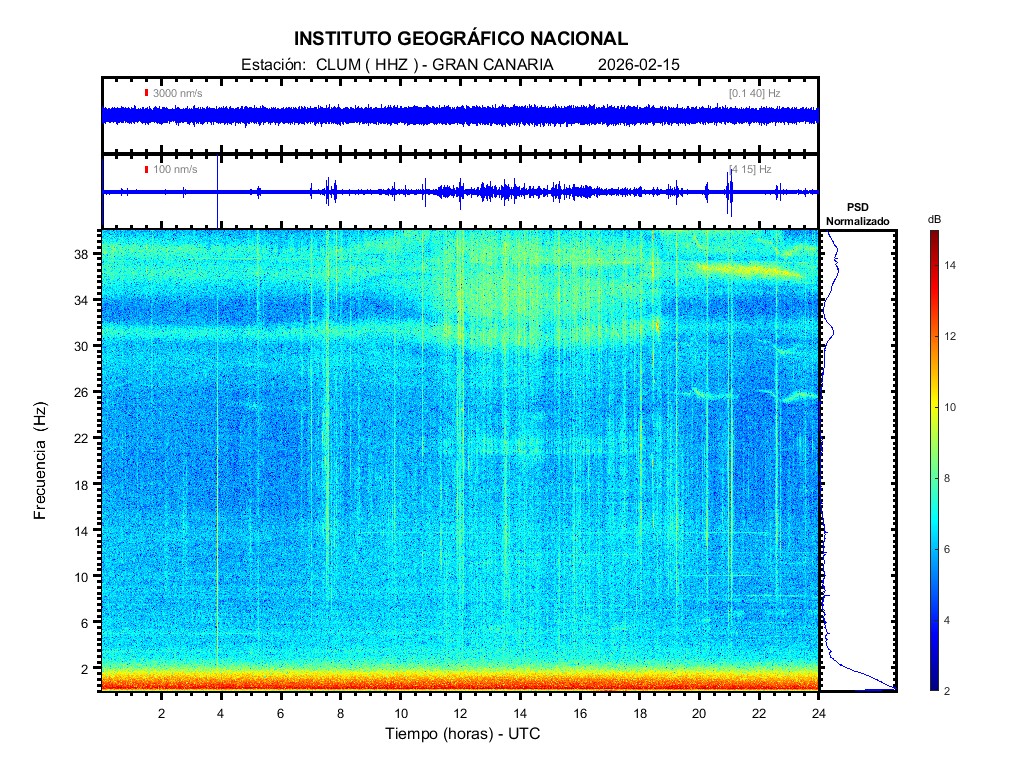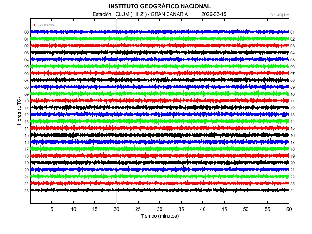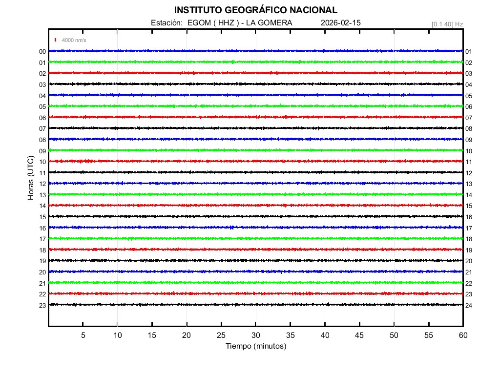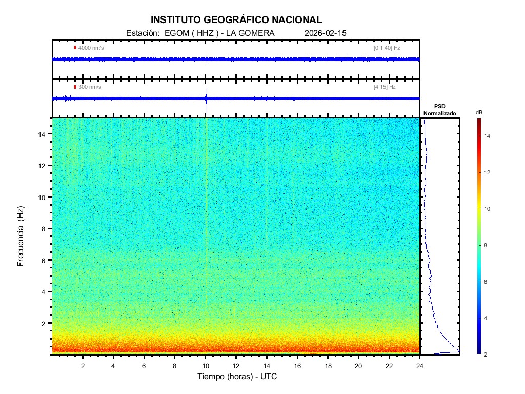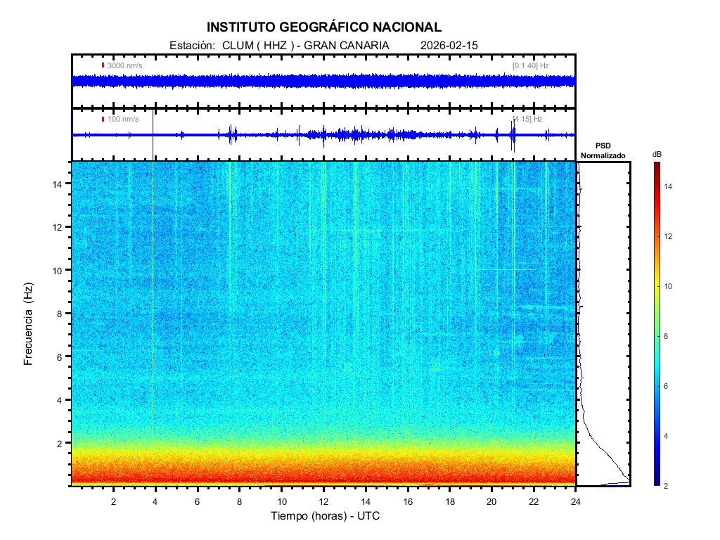 | 2026-02-15 | Forma de Onda (Filtro banda ancha) | Forma de Onda (Filtro corto periodo) | Espectrograma ([0 40] Hz) | Espectrograma ([0 15] Hz) | ||