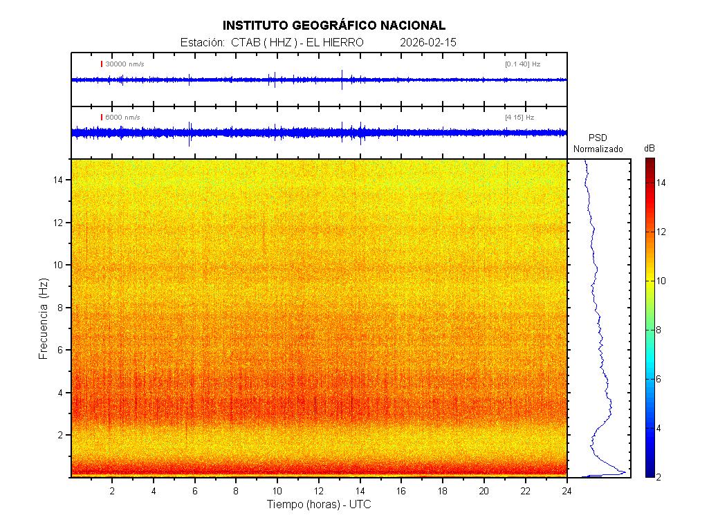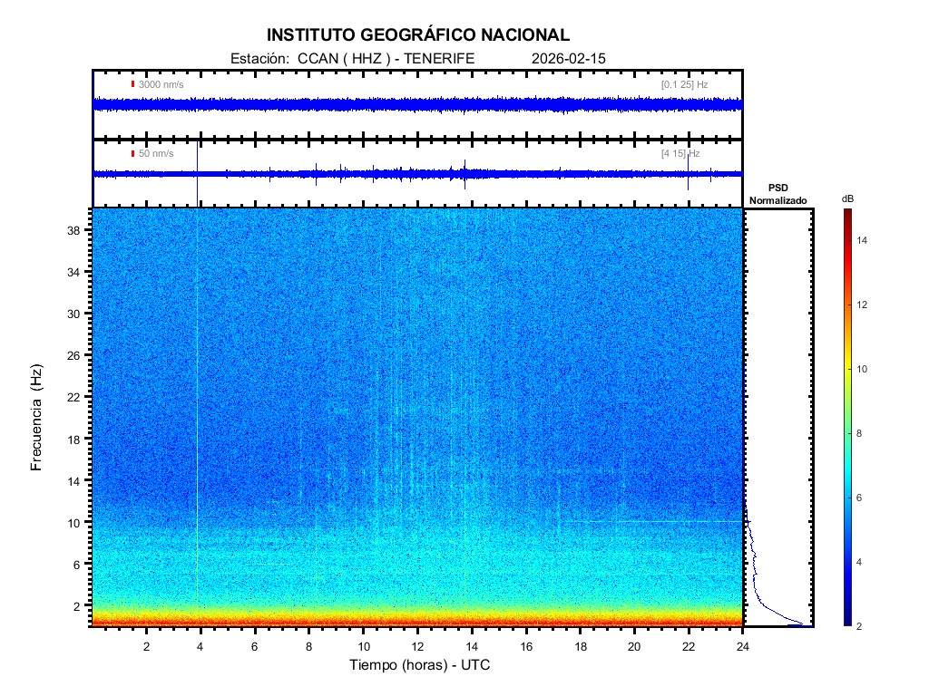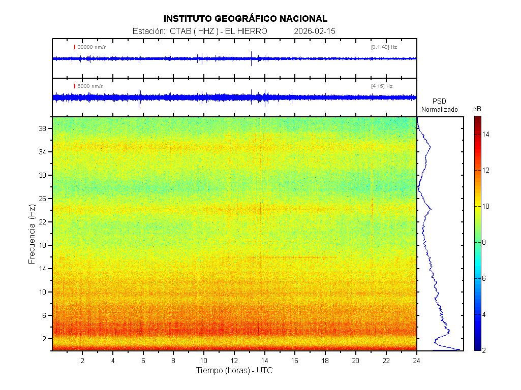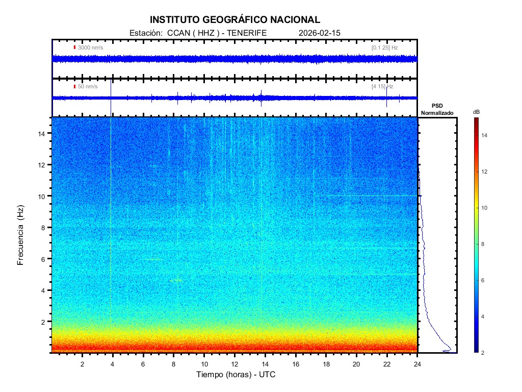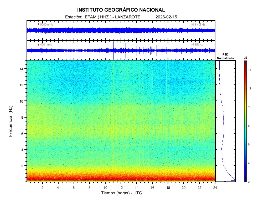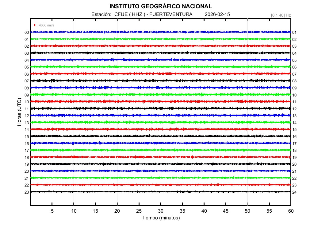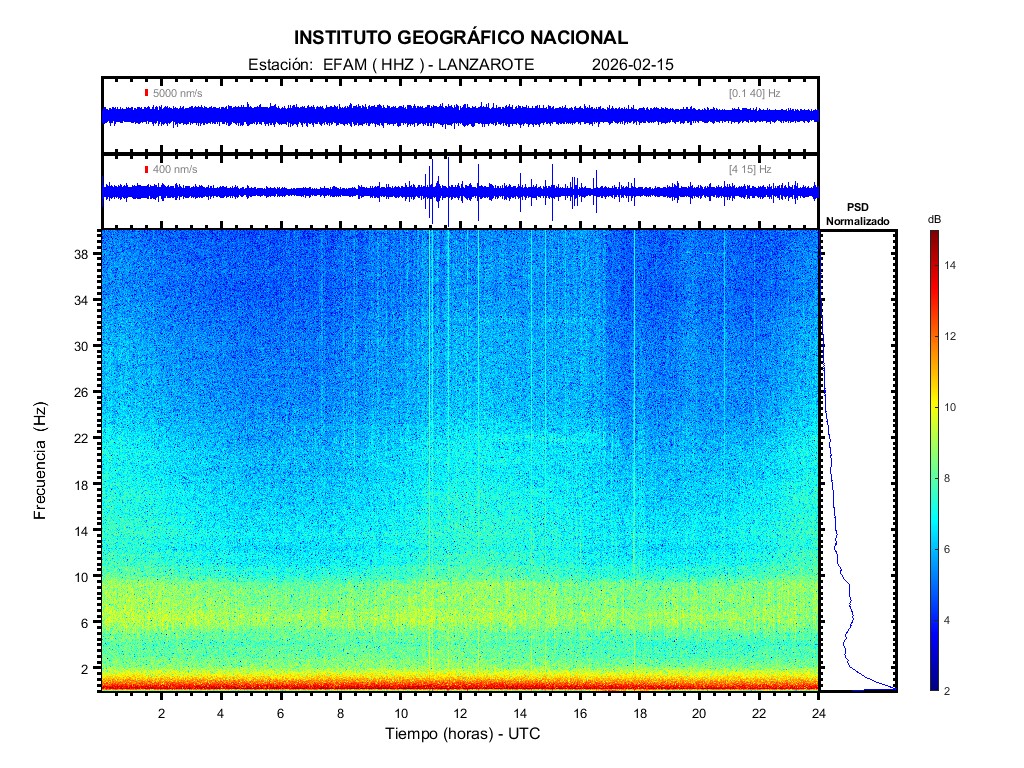 | 2026-02-15 | Forma de Onda (Filtro banda ancha) | Forma de Onda (Filtro corto periodo) | Espectrograma ([0 40] Hz) | Espectrograma ([0 15] Hz) | ||