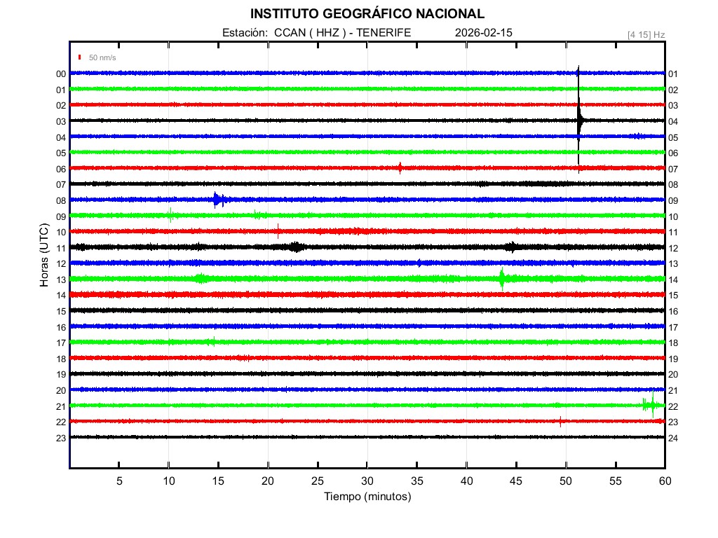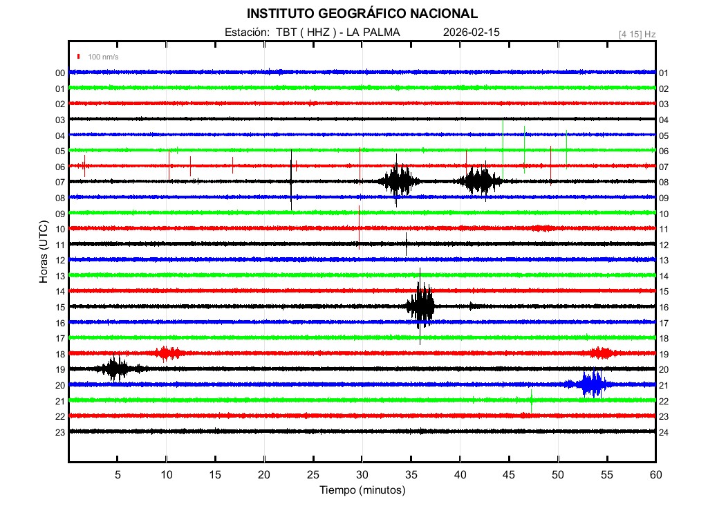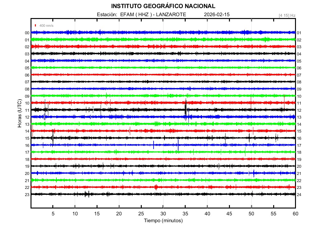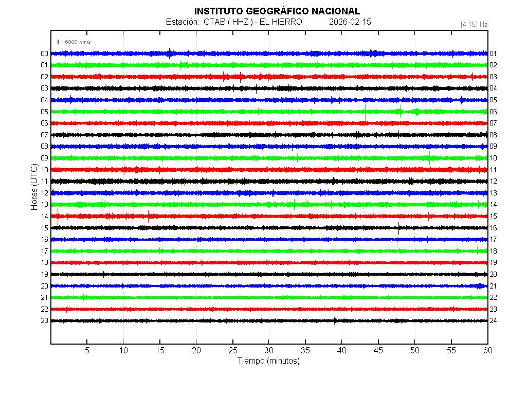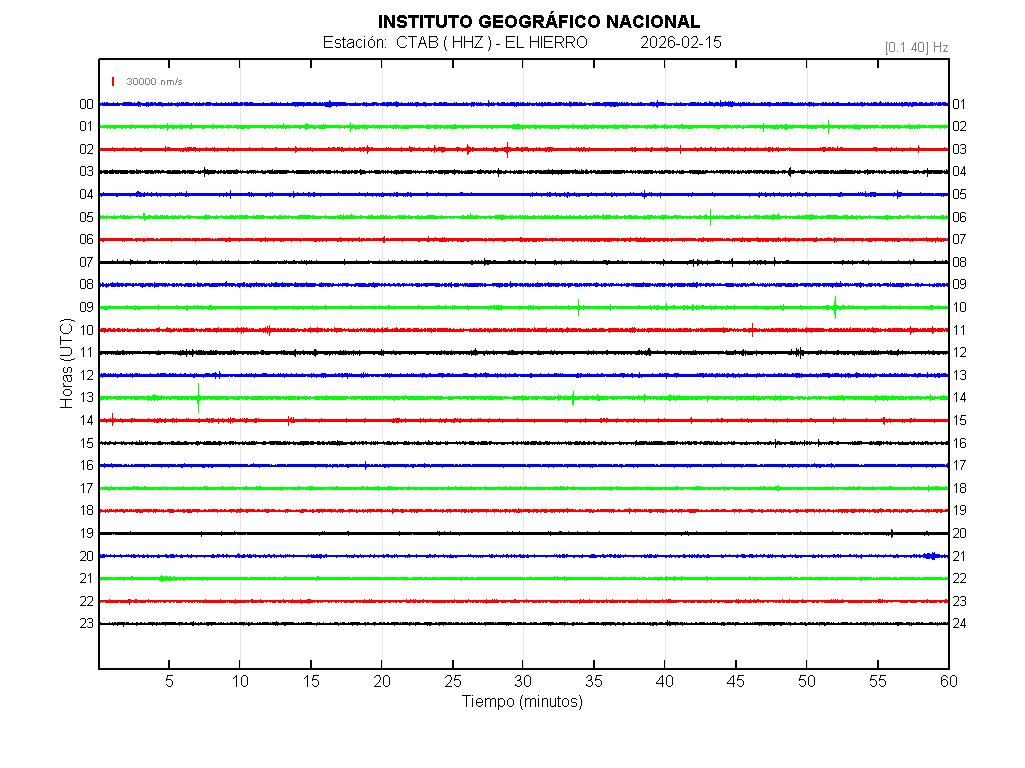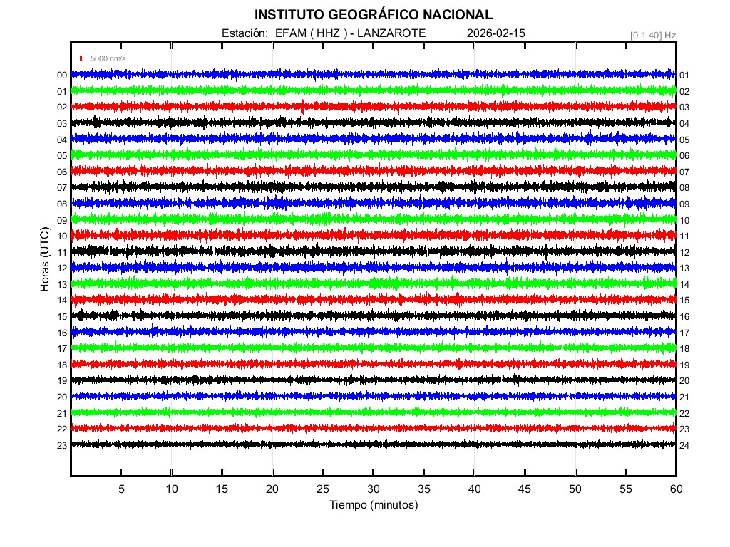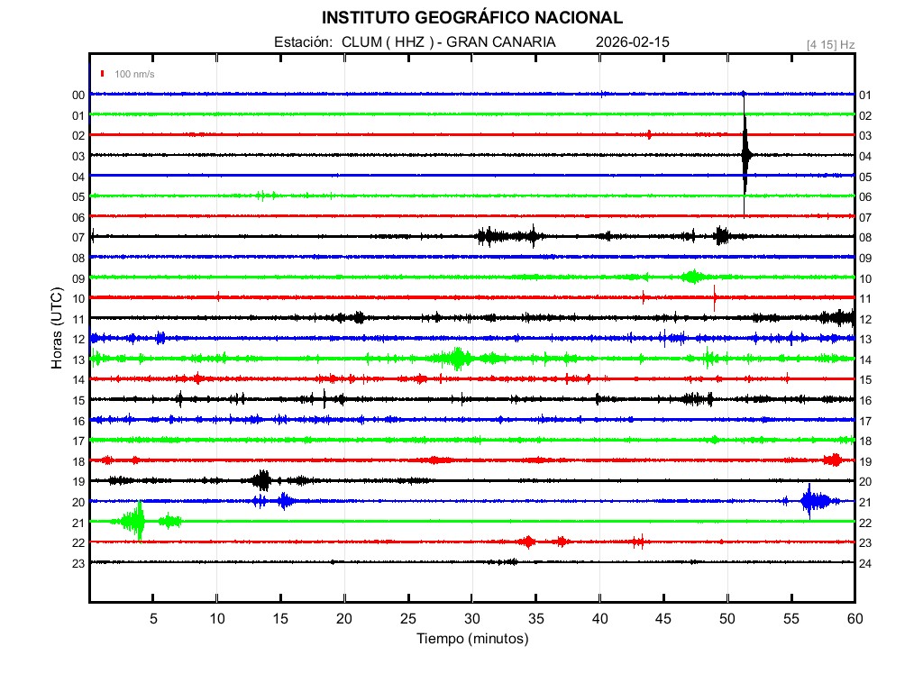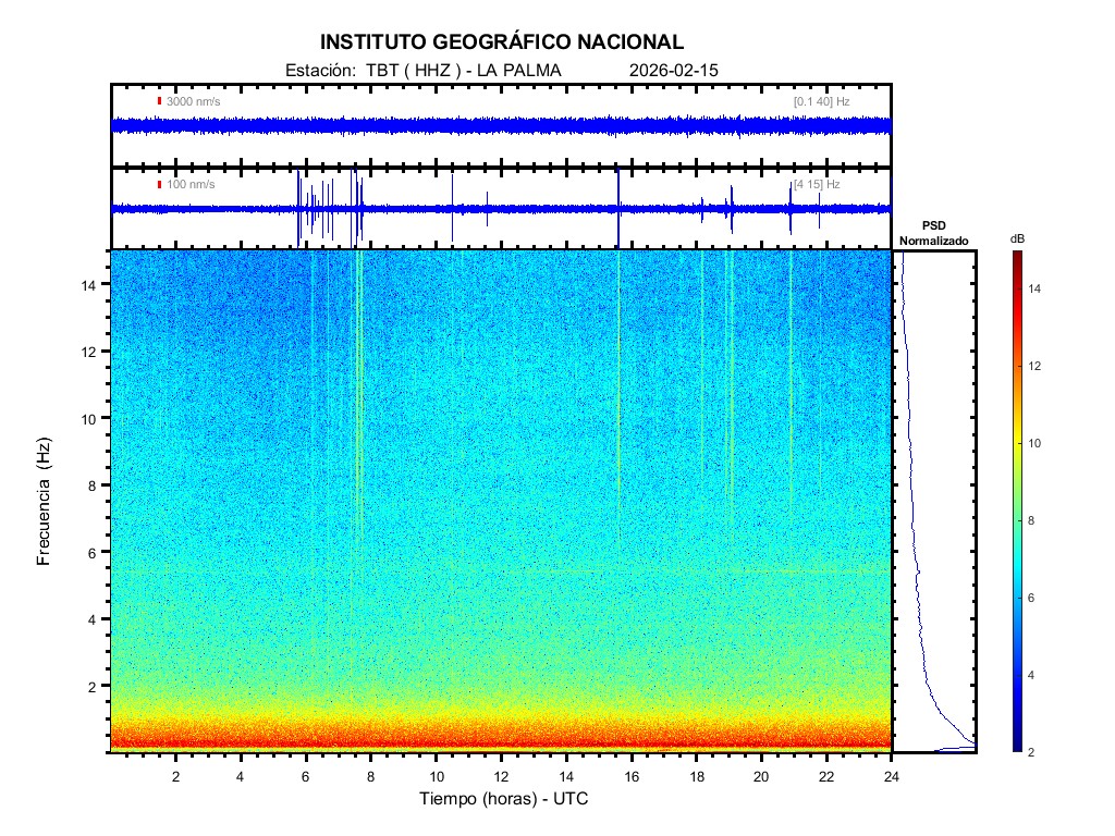 | 2026-02-15 | Forma de Onda (Filtro banda ancha) | Forma de Onda (Filtro corto periodo) | Espectrograma ([0 40] Hz) | Espectrograma ([0 15] Hz) | ||