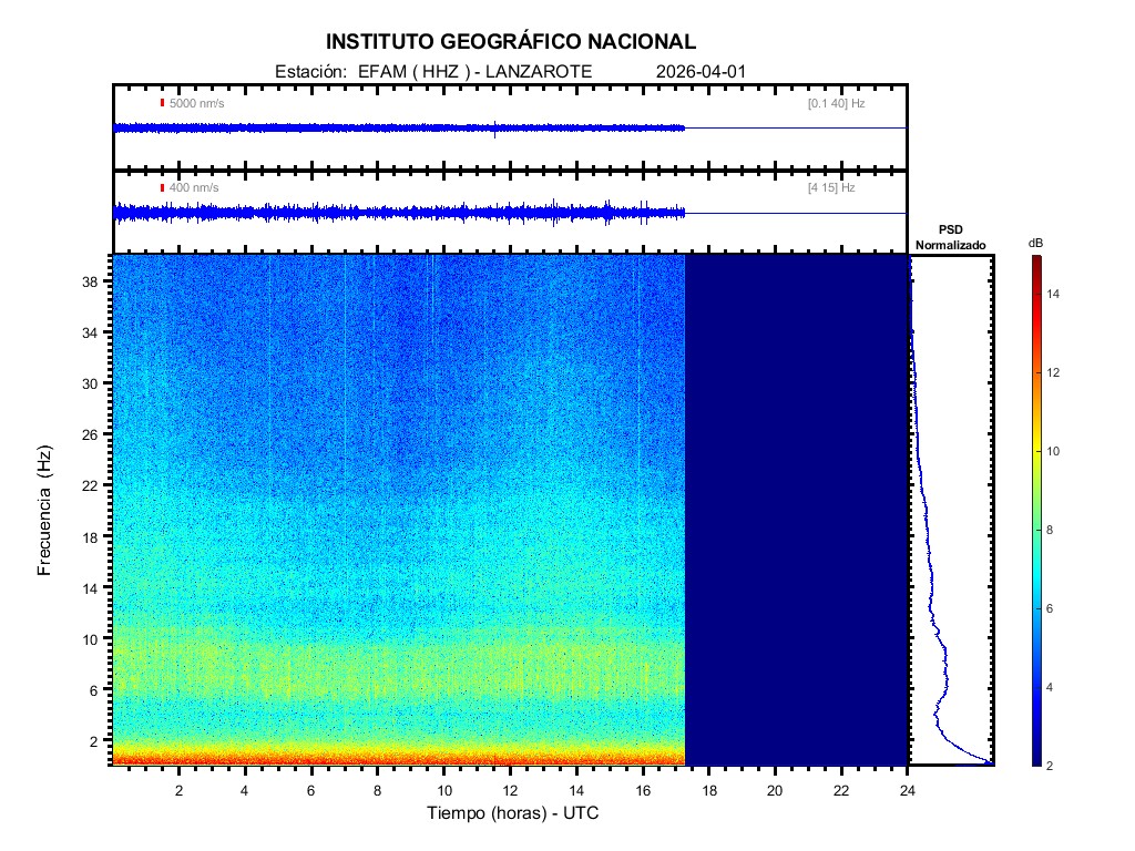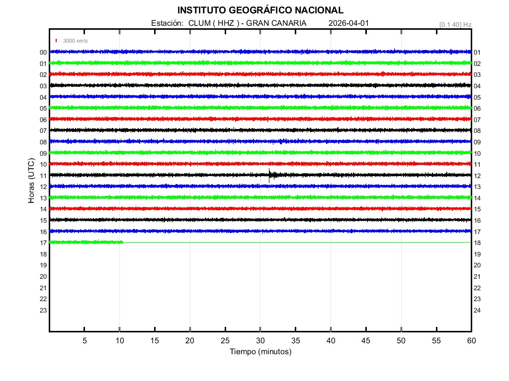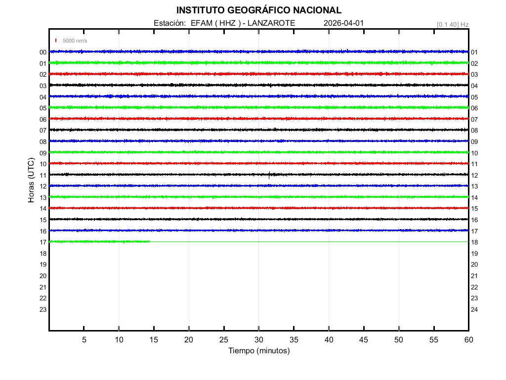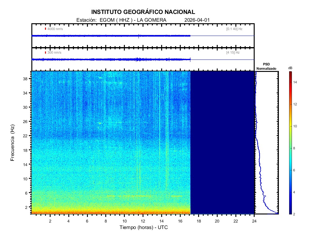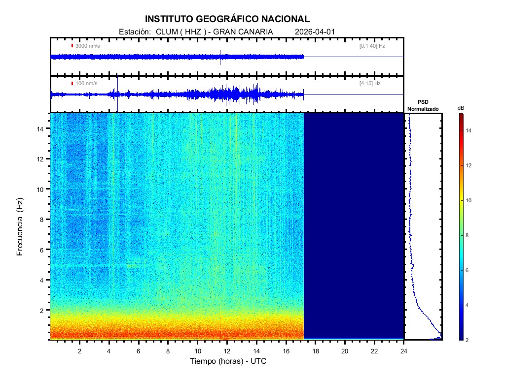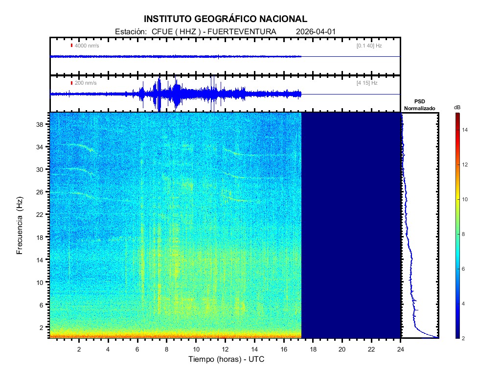 | 2026-04-01 | Forma de Onda (Filtro banda ancha) | Forma de Onda (Filtro corto periodo) | Espectrograma ([0 40] Hz) | Espectrograma ([0 15] Hz) | ||