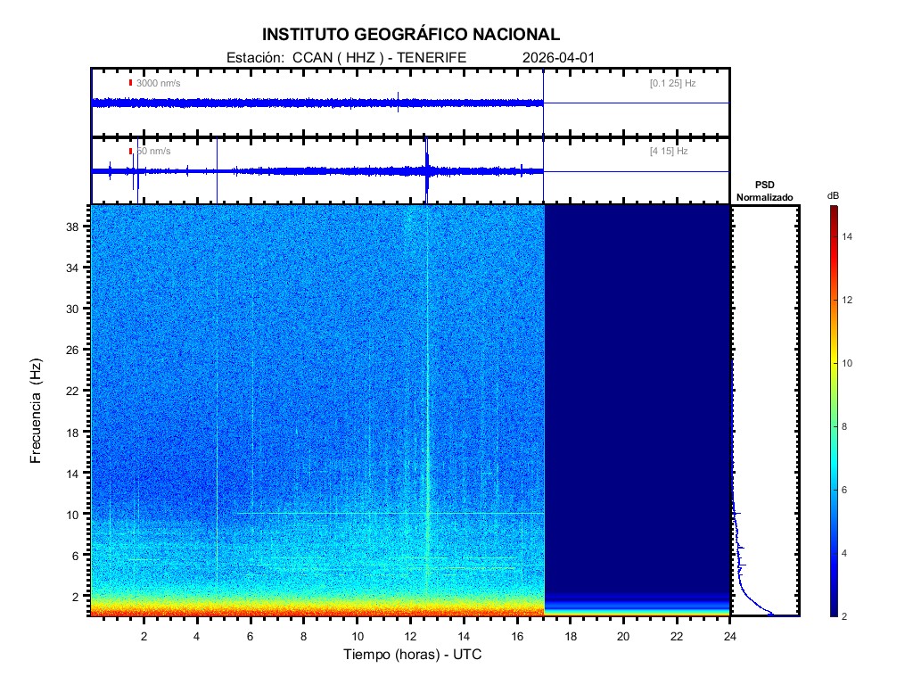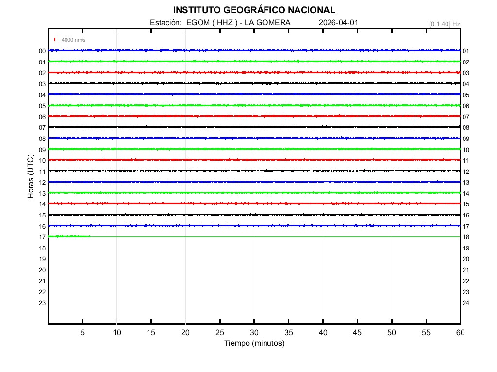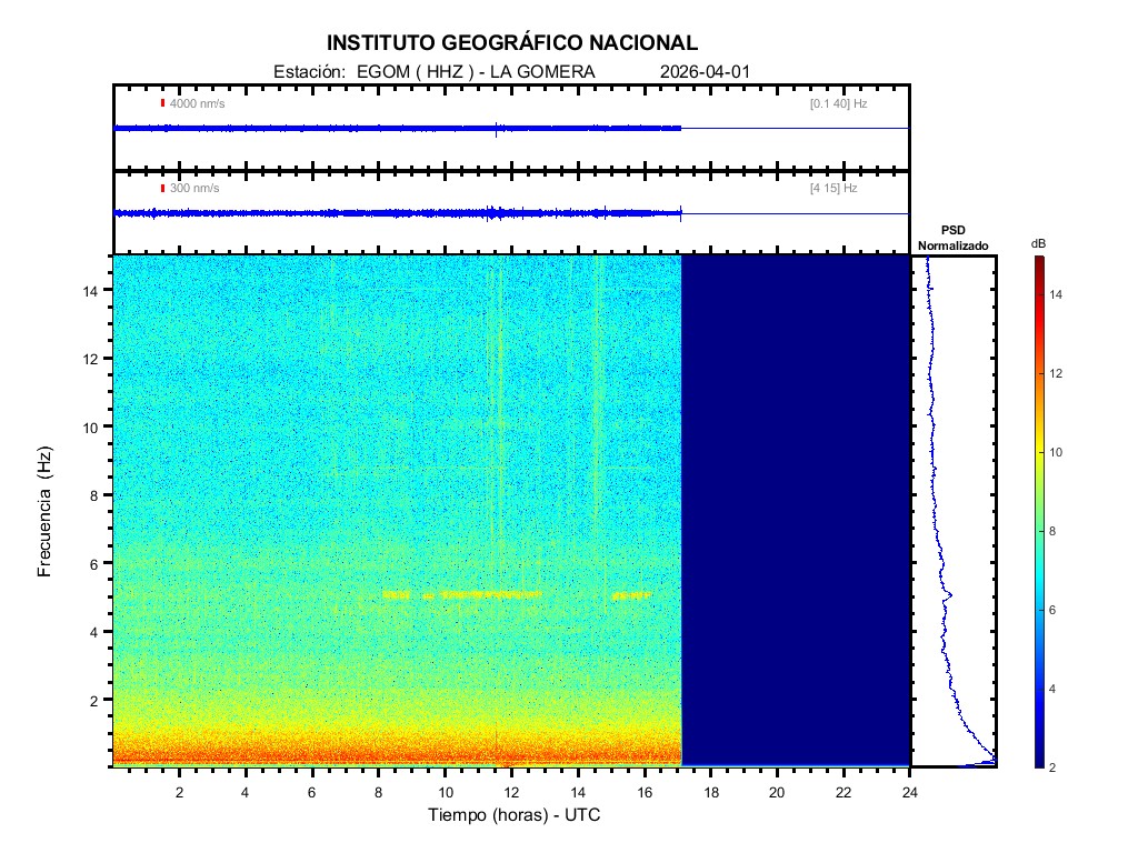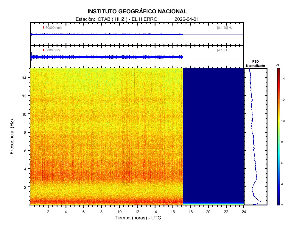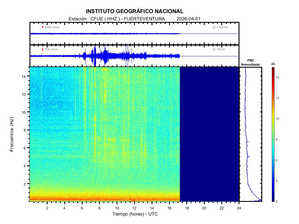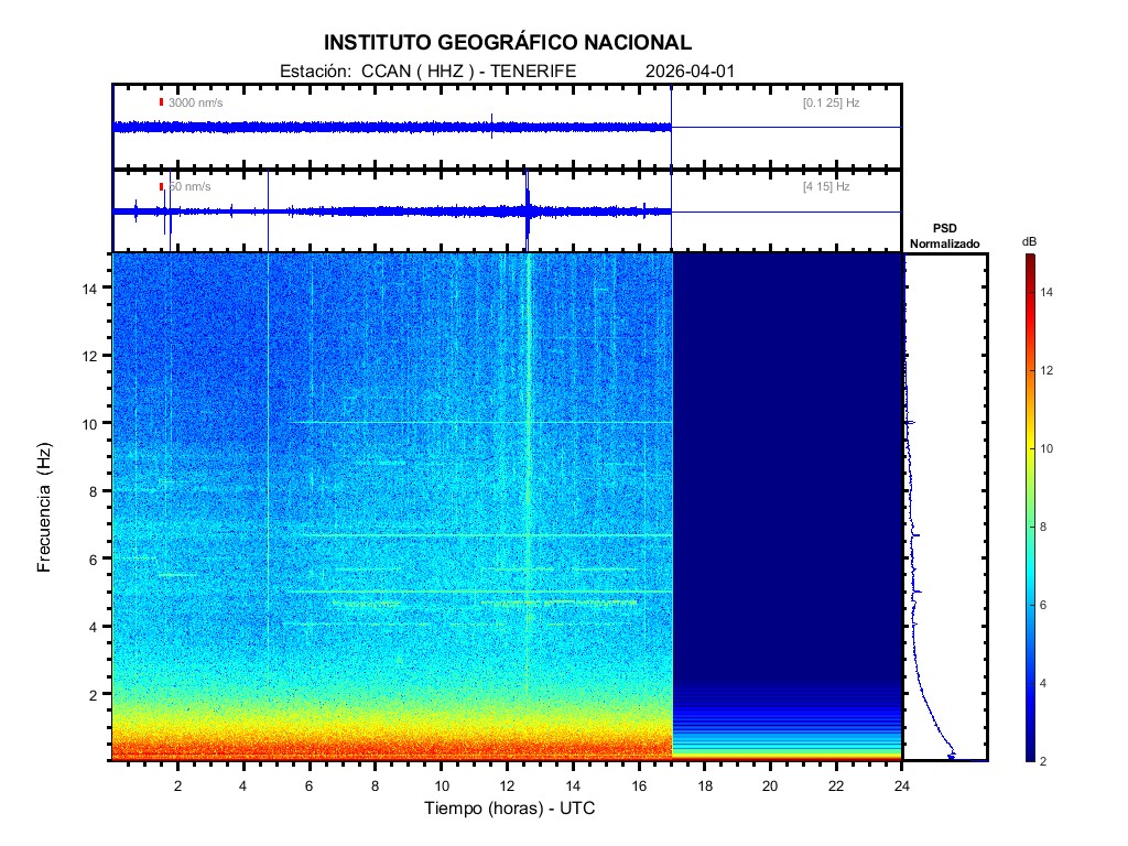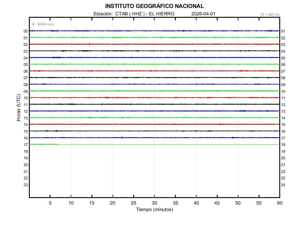 | 2026-04-01 | Forma de Onda (Filtro banda ancha) | Forma de Onda (Filtro corto periodo) | Espectrograma ([0 40] Hz) | Espectrograma ([0 15] Hz) | ||
