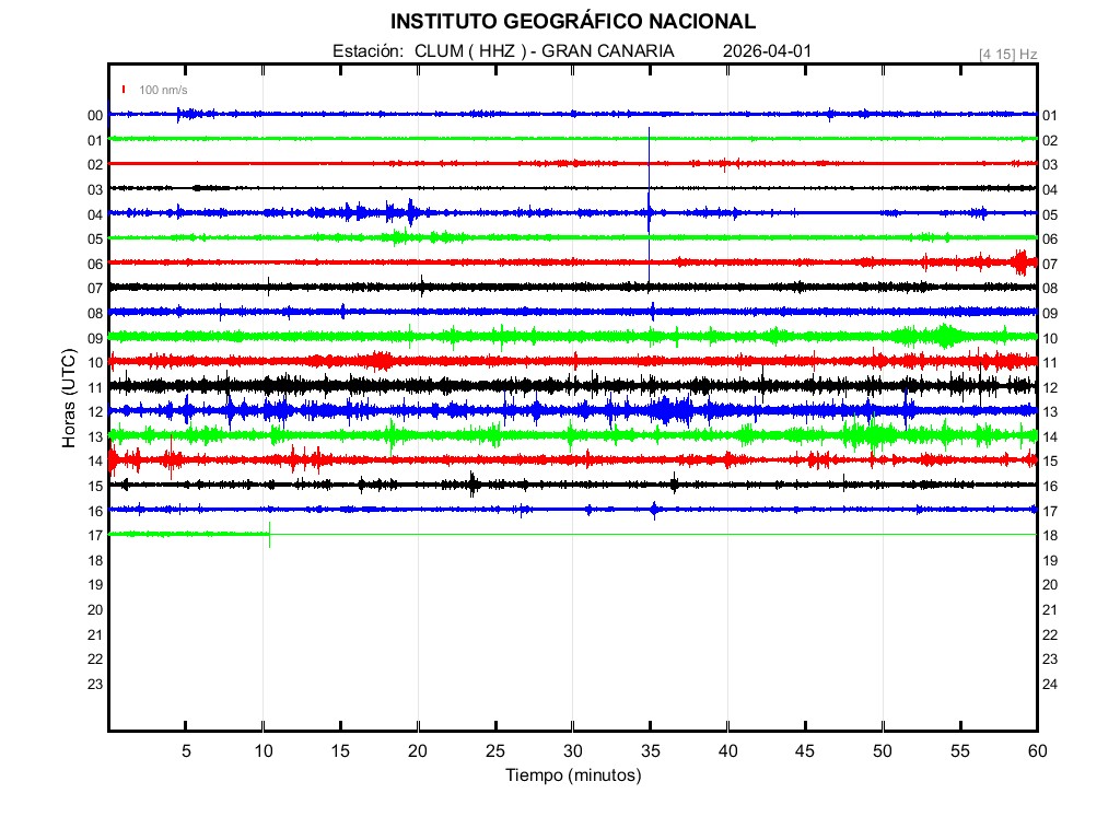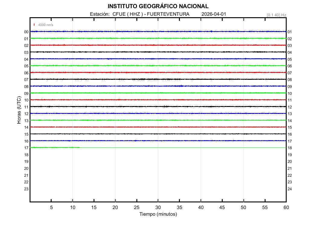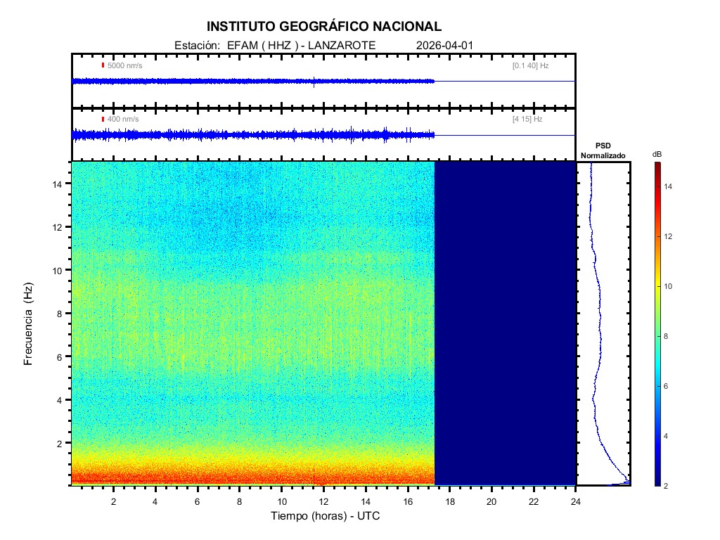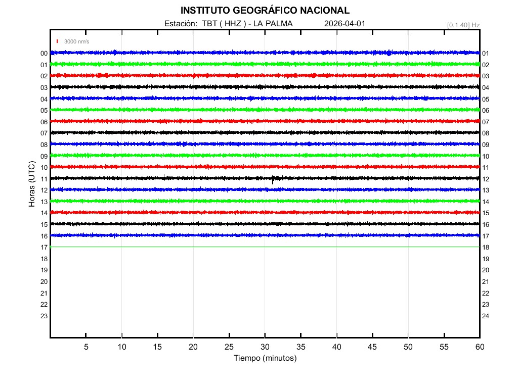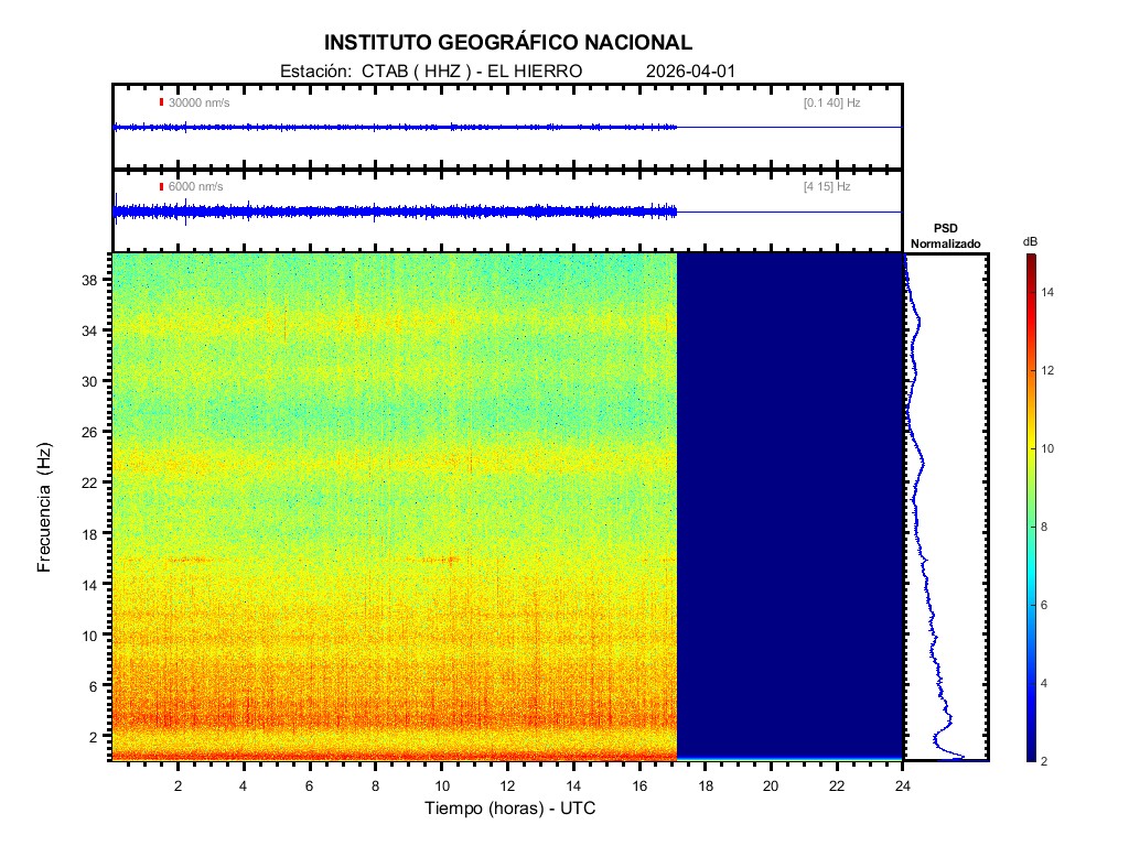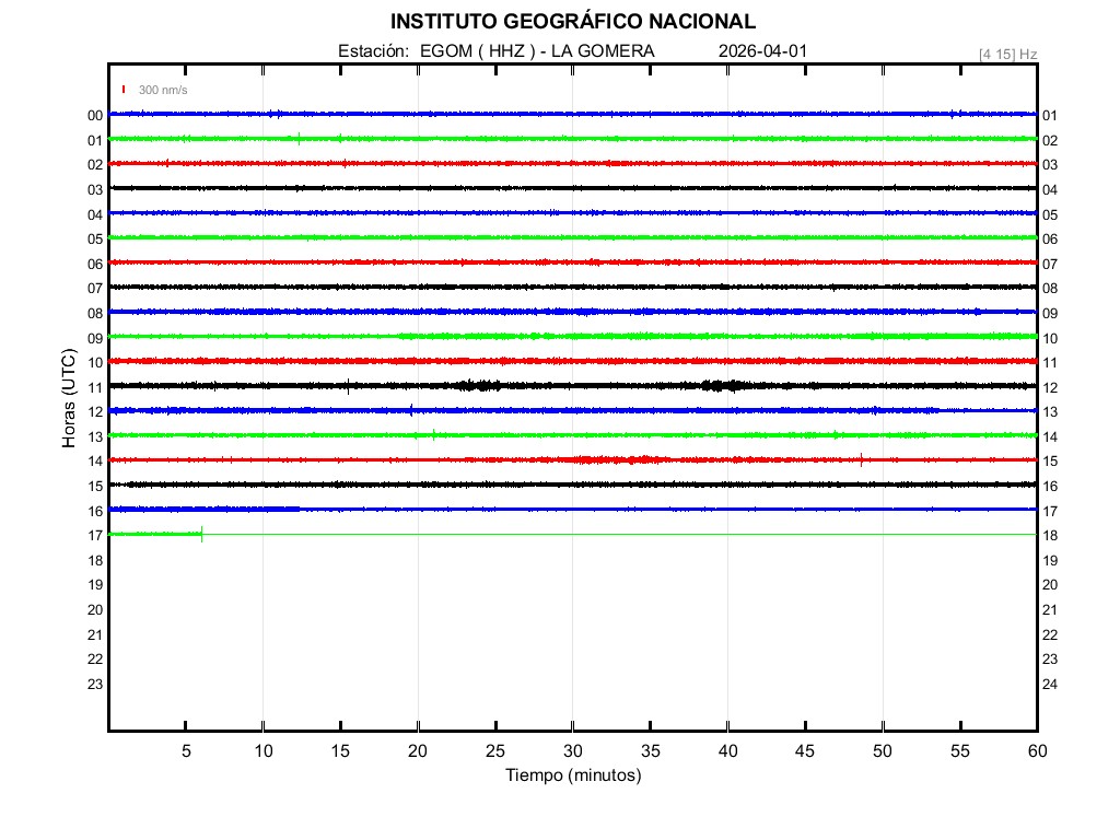 | 2026-04-01 | Forma de Onda (Filtro banda ancha) | Forma de Onda (Filtro corto periodo) | Espectrograma ([0 40] Hz) | Espectrograma ([0 15] Hz) | ||