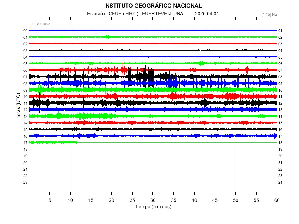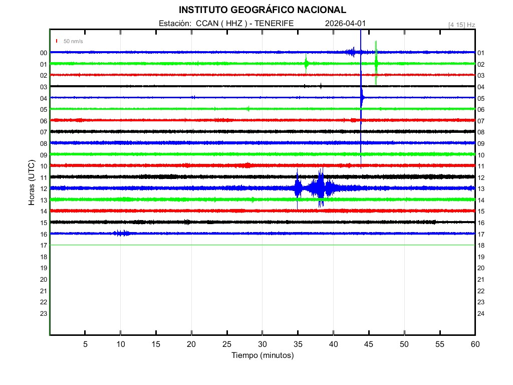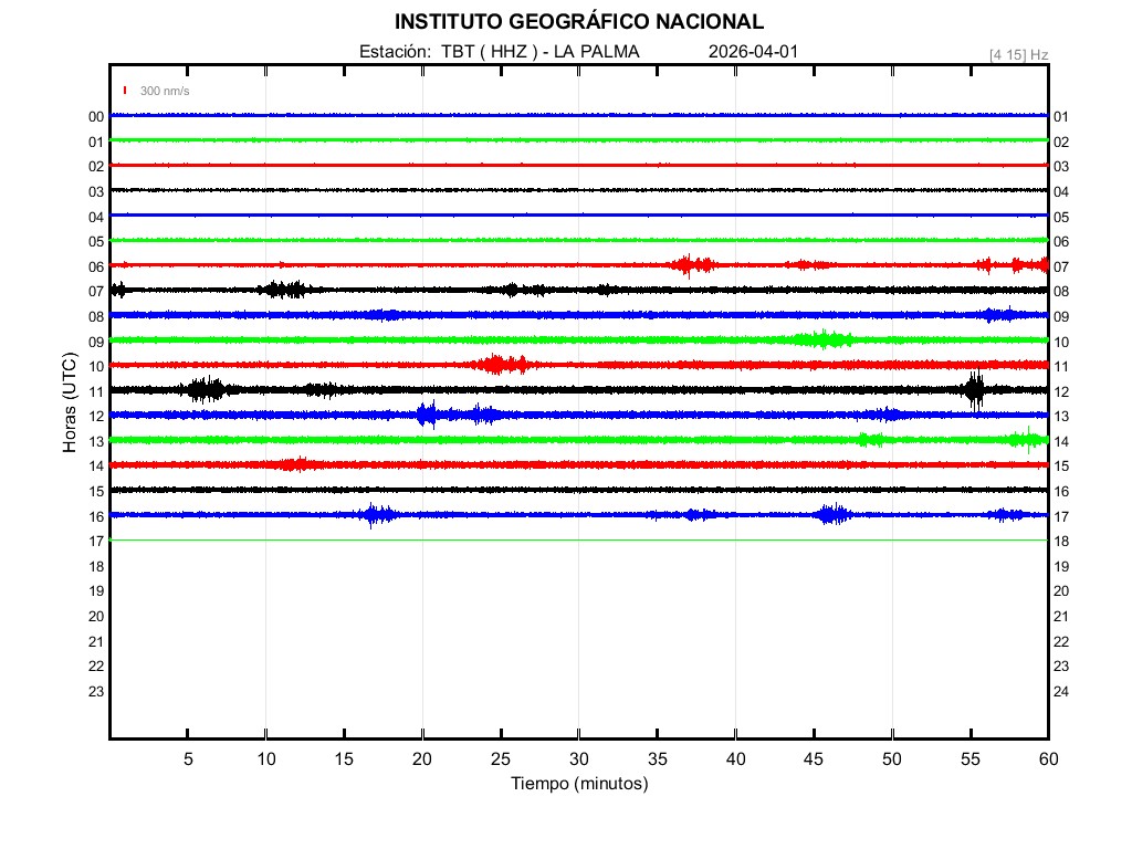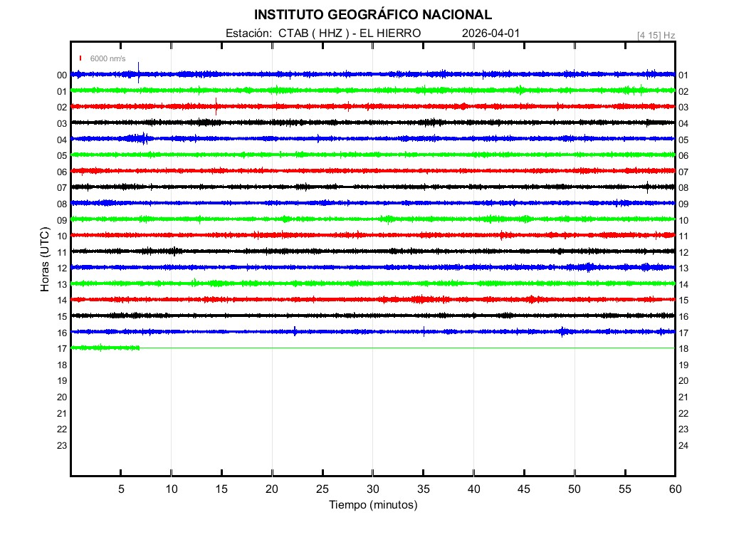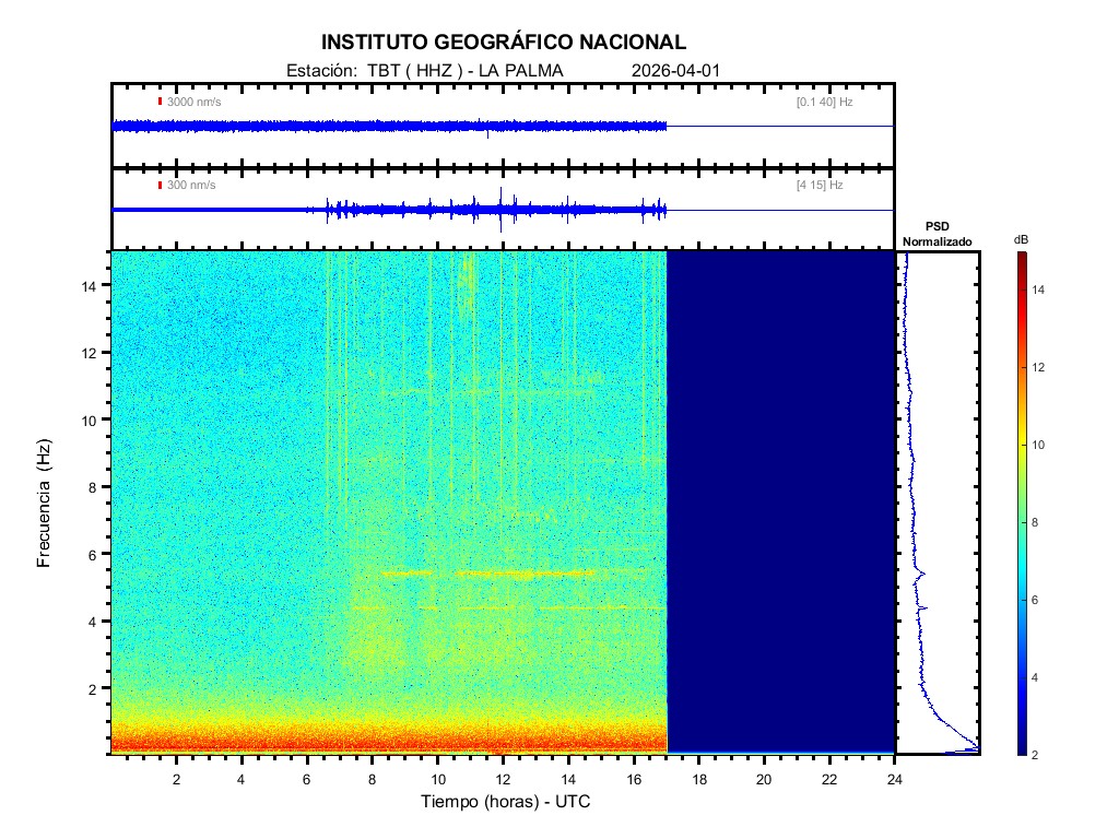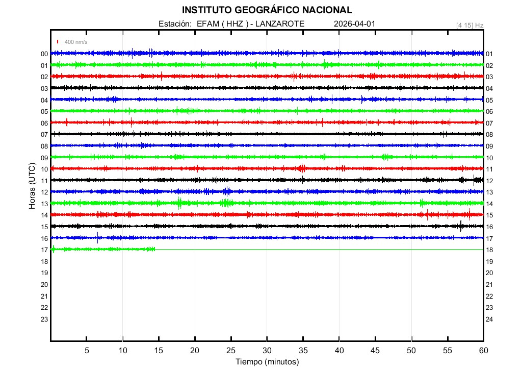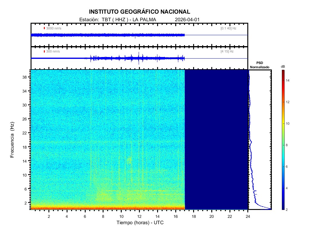 | 2026-04-01 | Forma de Onda (Filtro banda ancha) | Forma de Onda (Filtro corto periodo) | Espectrograma ([0 40] Hz) | Espectrograma ([0 15] Hz) | ||