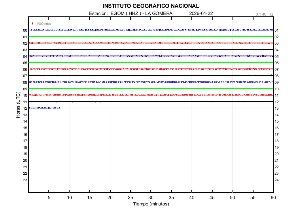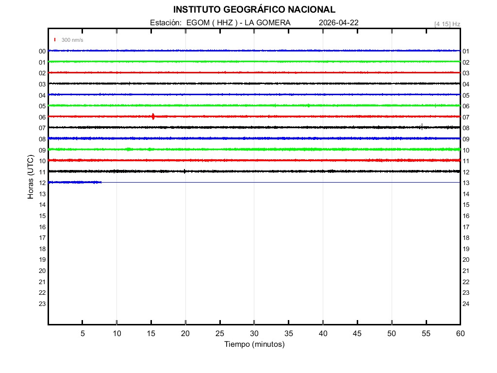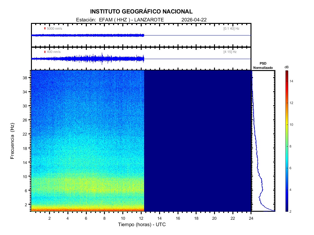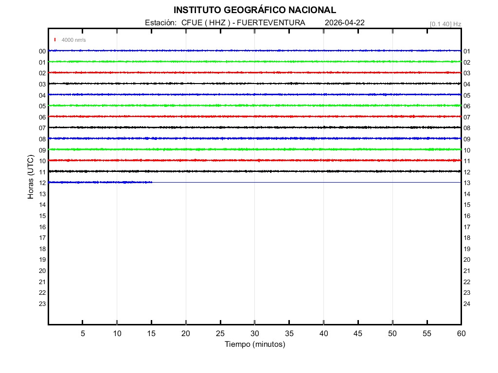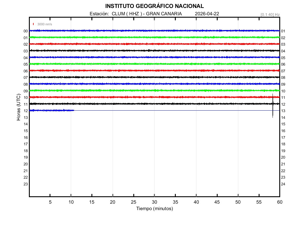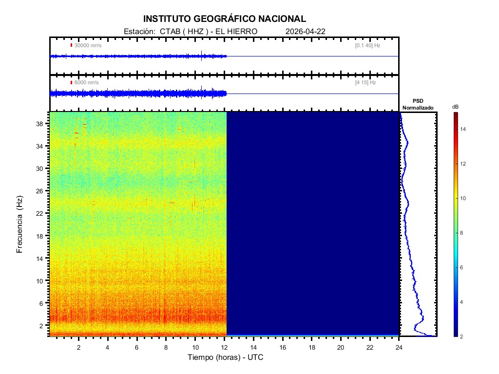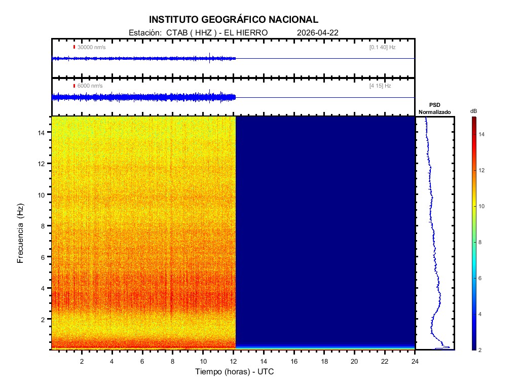 | 2026-04-22 | Forma de Onda (Filtro banda ancha) | Forma de Onda (Filtro corto periodo) | Espectrograma ([0 40] Hz) | Espectrograma ([0 15] Hz) | ||