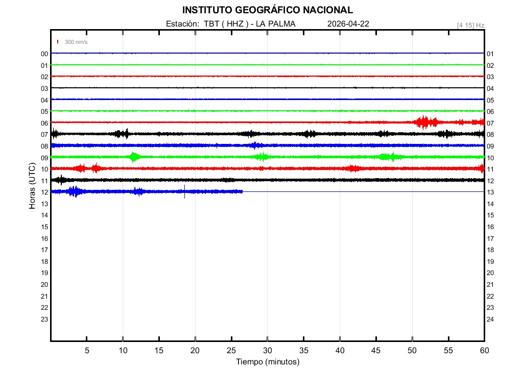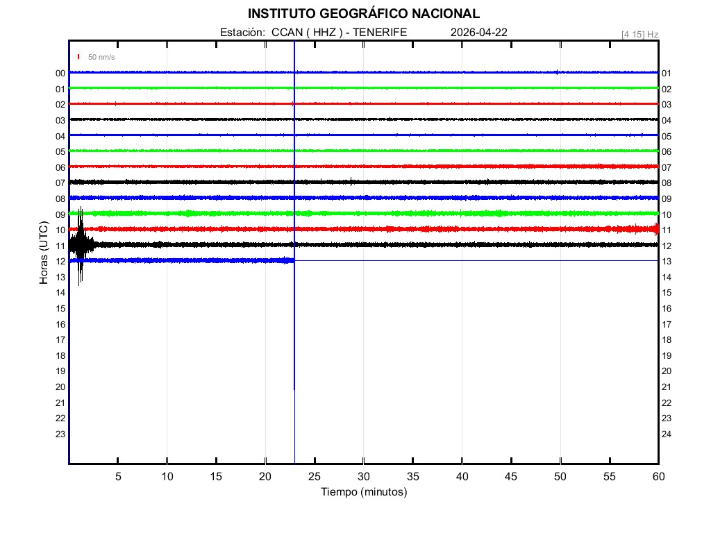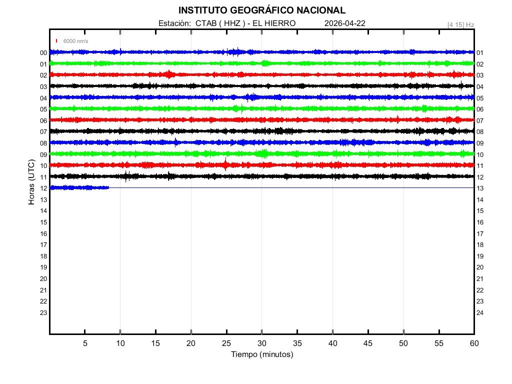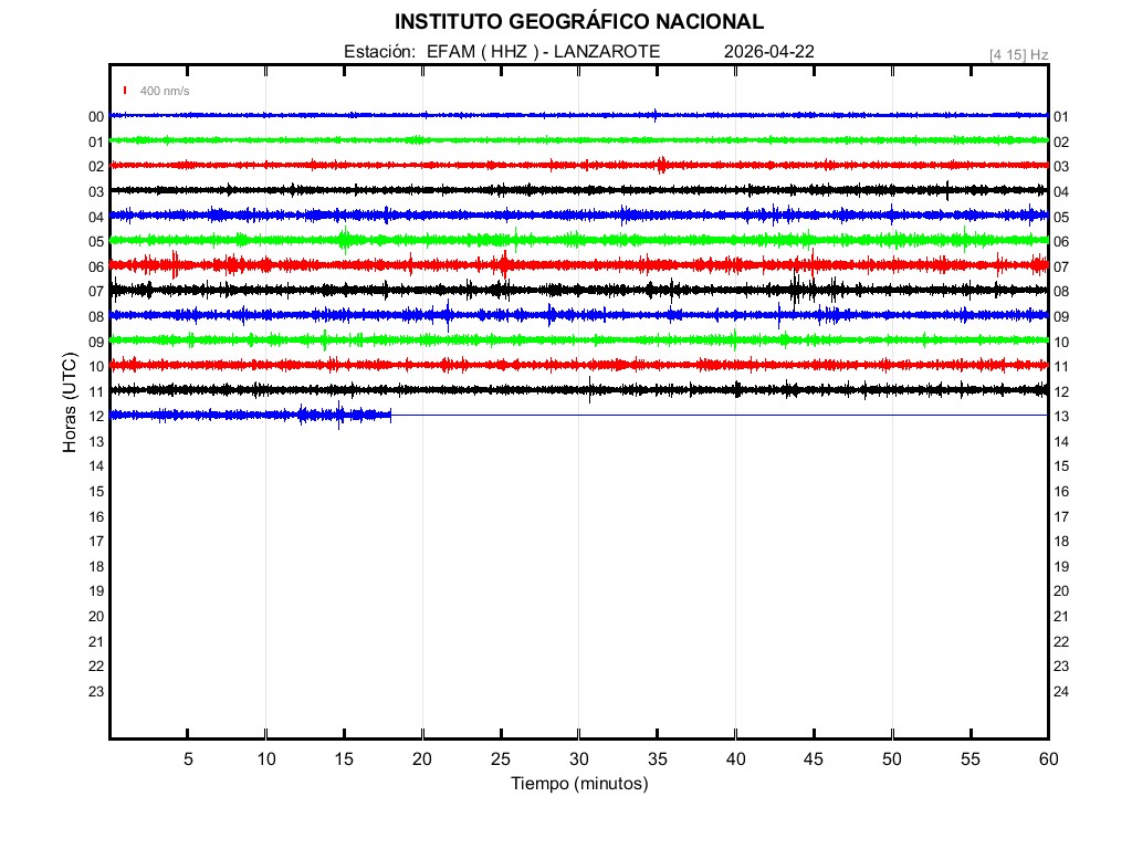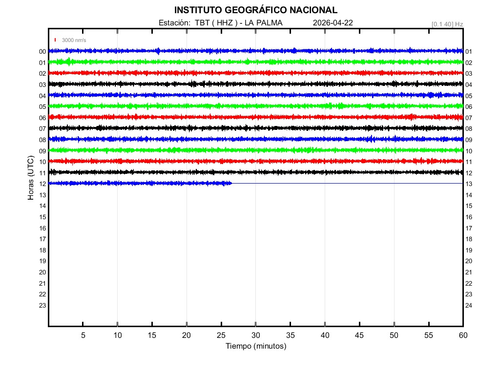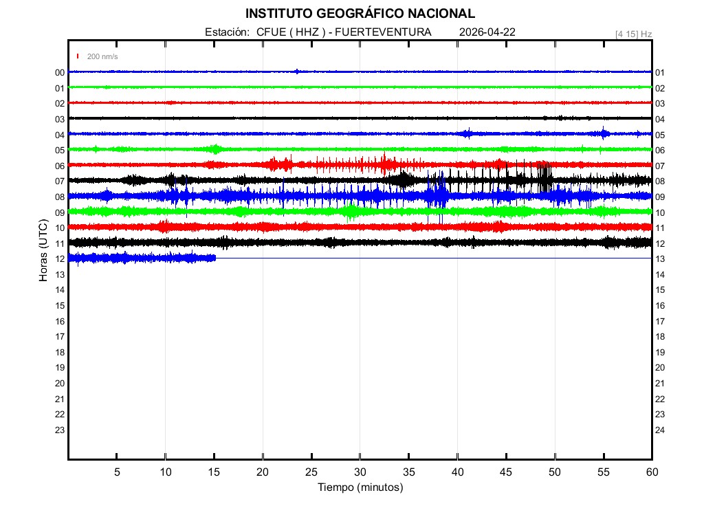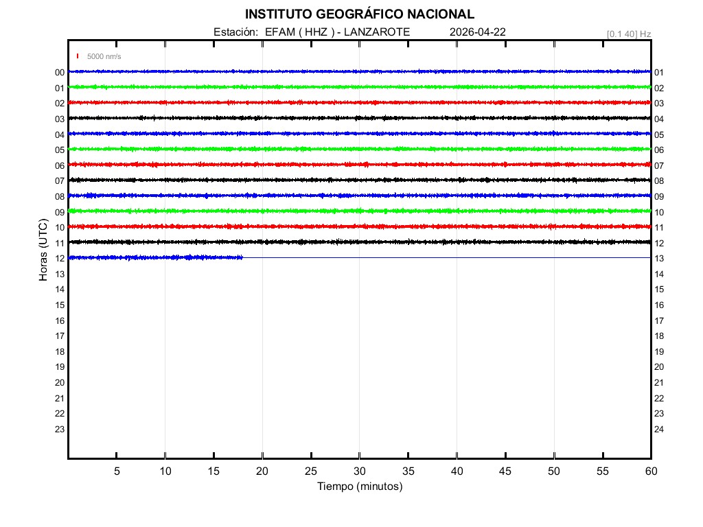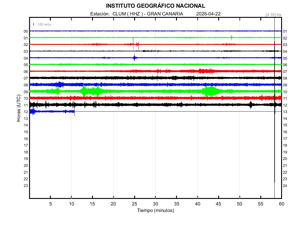 | 2026-04-22 | Forma de Onda (Filtro banda ancha) | Forma de Onda (Filtro corto periodo) | Espectrograma ([0 40] Hz) | Espectrograma ([0 15] Hz) | ||