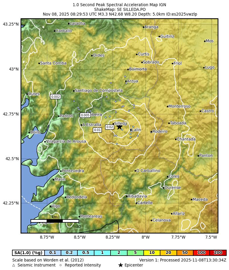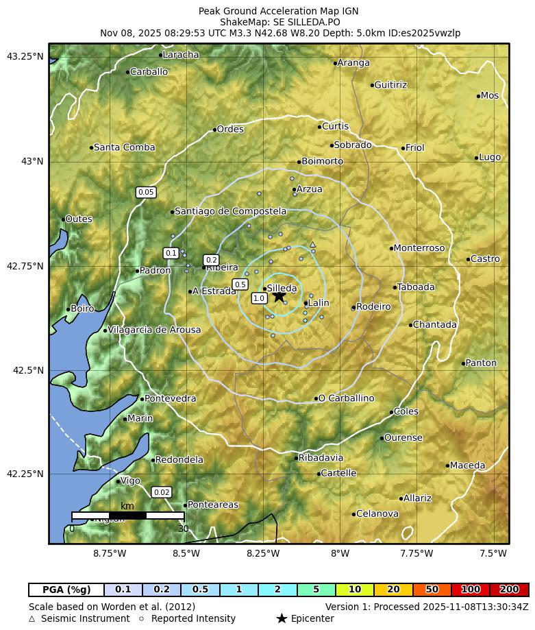 | es2025vwzlp | 08/11/2025 | 08:29:53 | 09:29:53 | 42.6803 | -8.1984 | 5.0 | 3.3 | mbLg | SE SILLEDA.PO |